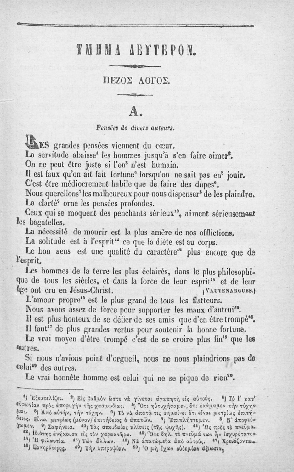 Τίτλος: Γαλλική εγκυκλοπαίδεια, ήτοι συλλογή τεμαχίων εκ των δοκιμωτέρων λογογράφων και ποιητών της Γαλλίας, προς χρήσιν των απανταχού Ελληνικών Σχολείων