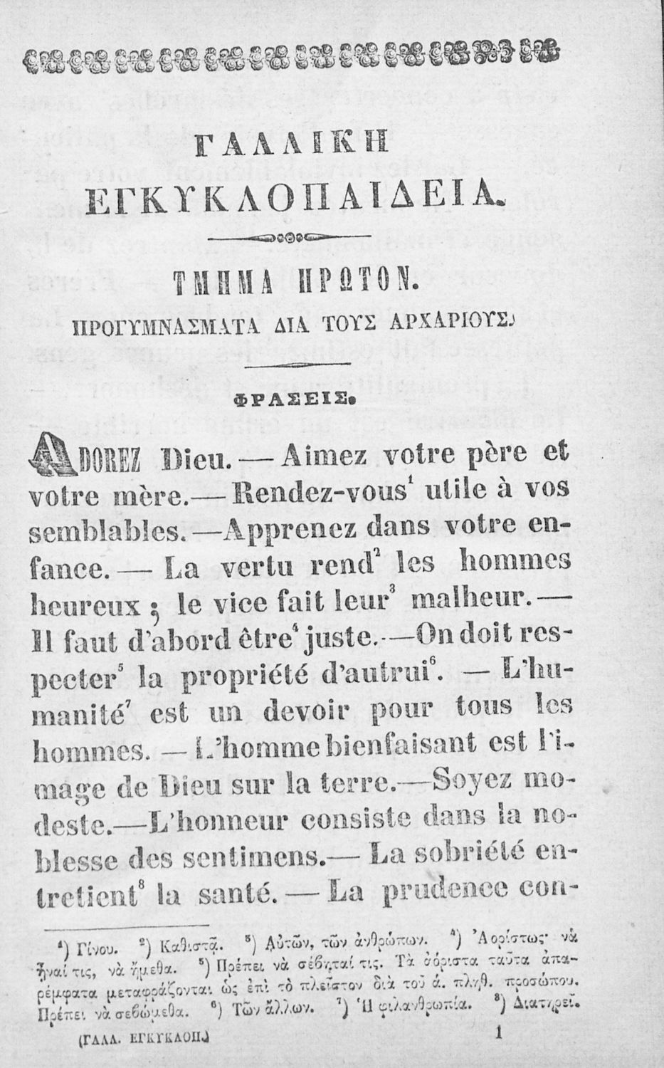 Σχολικό εγχειρίδιο Γαλλικών το οποίο μέσα από επιλεγμένα κείμενα Γάλλων λογογράφων και ποιητών προοριζόταν για τη διδασκαλία του μαθήματος της γαλλικής γλώσσας στα Ελληνικά σχολεία.