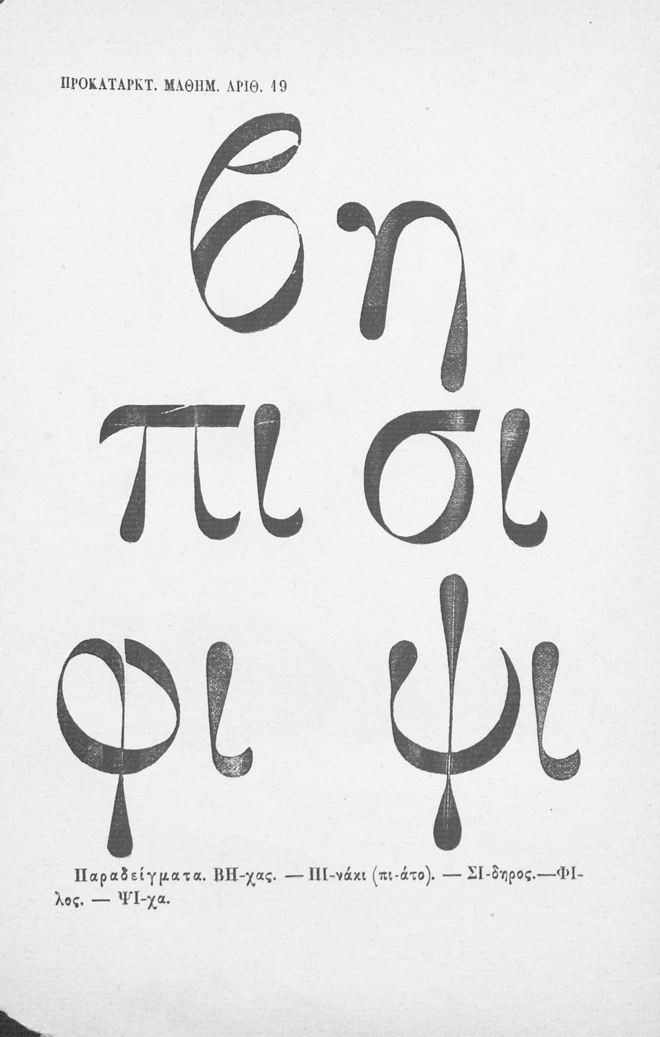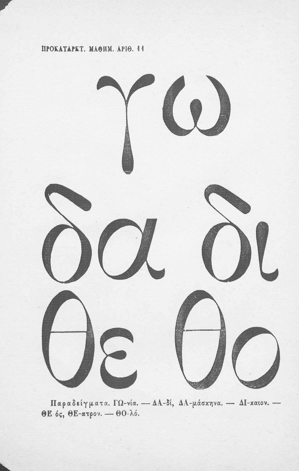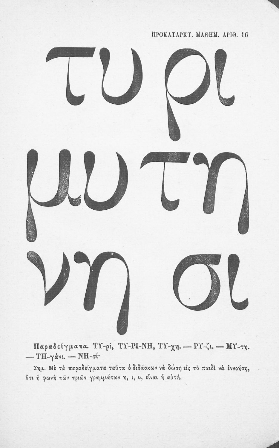 Αναγνωστικό Α΄ Δημοτικού που περιέχει γράμματα, συλλαβές, λέξεις, προτάσεις και κείμενα εμπνευσμένα από την οικογενειακή και κοινωνική ζωή του τόπου. Φέρει το σύμβολο της δικτατορίας.