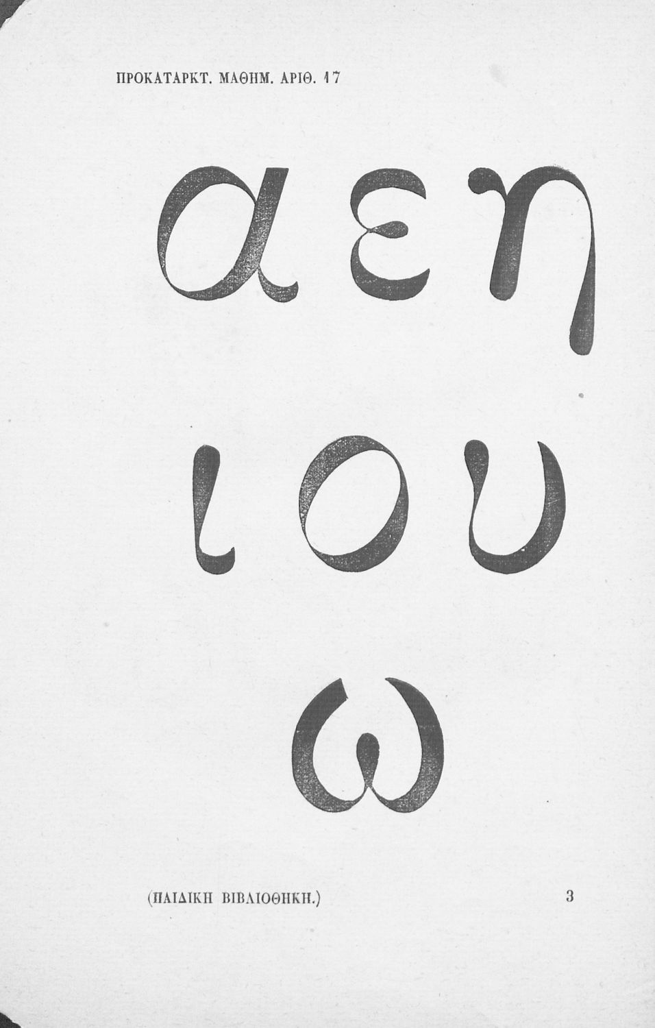 Τίτλος: Παιδική βιβλιοθήκη, ήτοι συλλογή διηγημάτων, ιστορικών ανεκδότων, βιογραφιών, παροιμιών, αινιγμάτων, παραμυθιών, τραγουδιών κλπ. τεύχος Α΄ Γράμματα