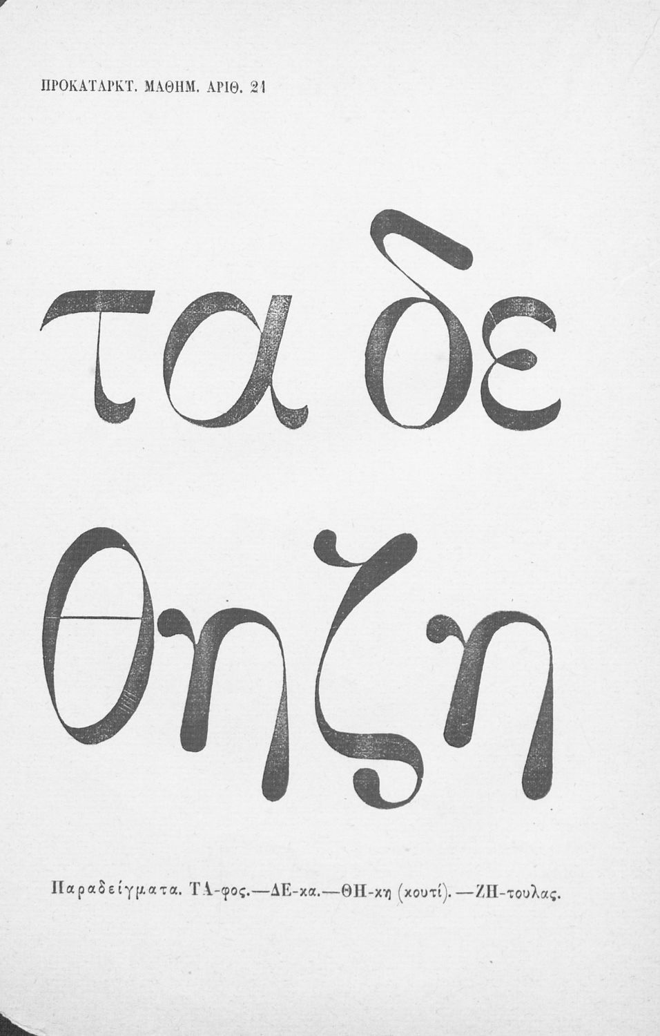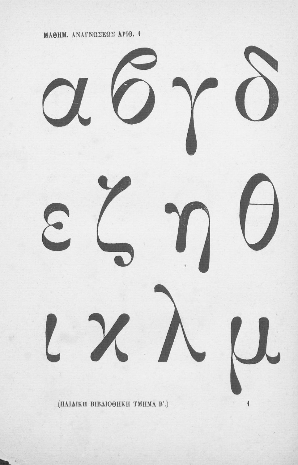 Αναγνωστικό Α΄ Δημοτικού που περιέχει γράμματα, συλλαβές, λέξεις, προτάσεις και κείμενα εμπνευσμένα από την οικογενειακή και κοινωνική ζωή του τόπου. Φέρει το σύμβολο της δικτατορίας.
