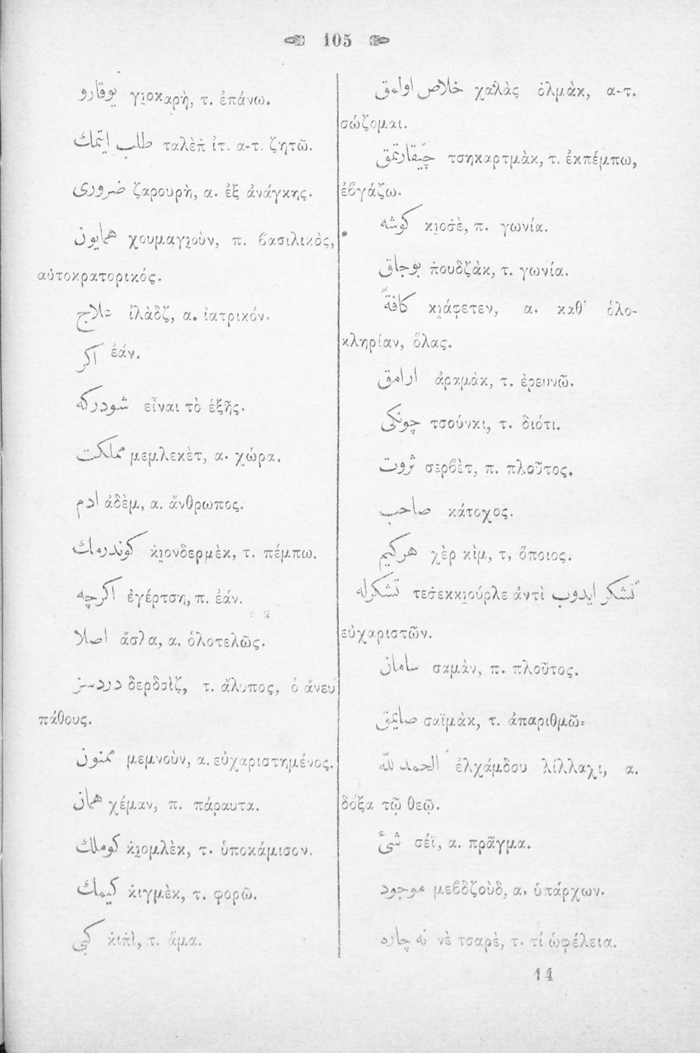 Σχολικό εγχειρίδιο που περιλαμβάνει κείμενα Οθωμανών συγγραφέων εμπνευσμένα από την οικογενειακή και κοινωνική ζωή και την ιστορία, λεξιλογική ανάλυση, και τους βασικότερους κανόνες γραμματικής της τουρκοαραβοπερσικής γλώσσας.