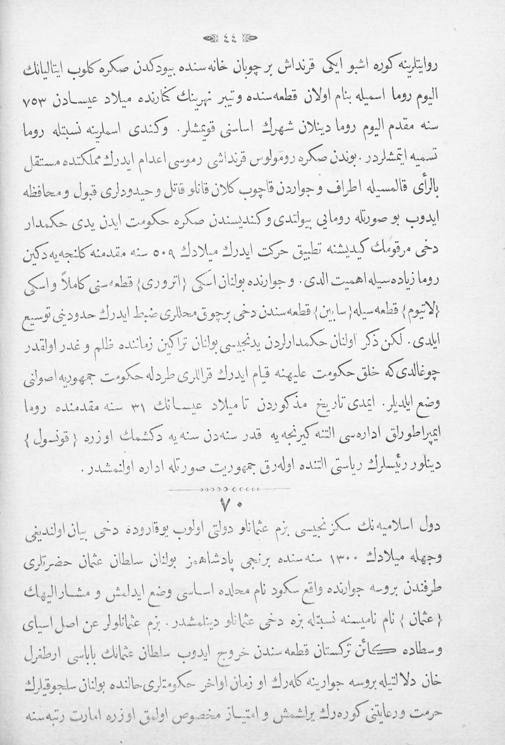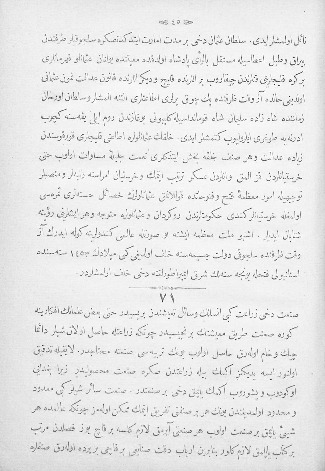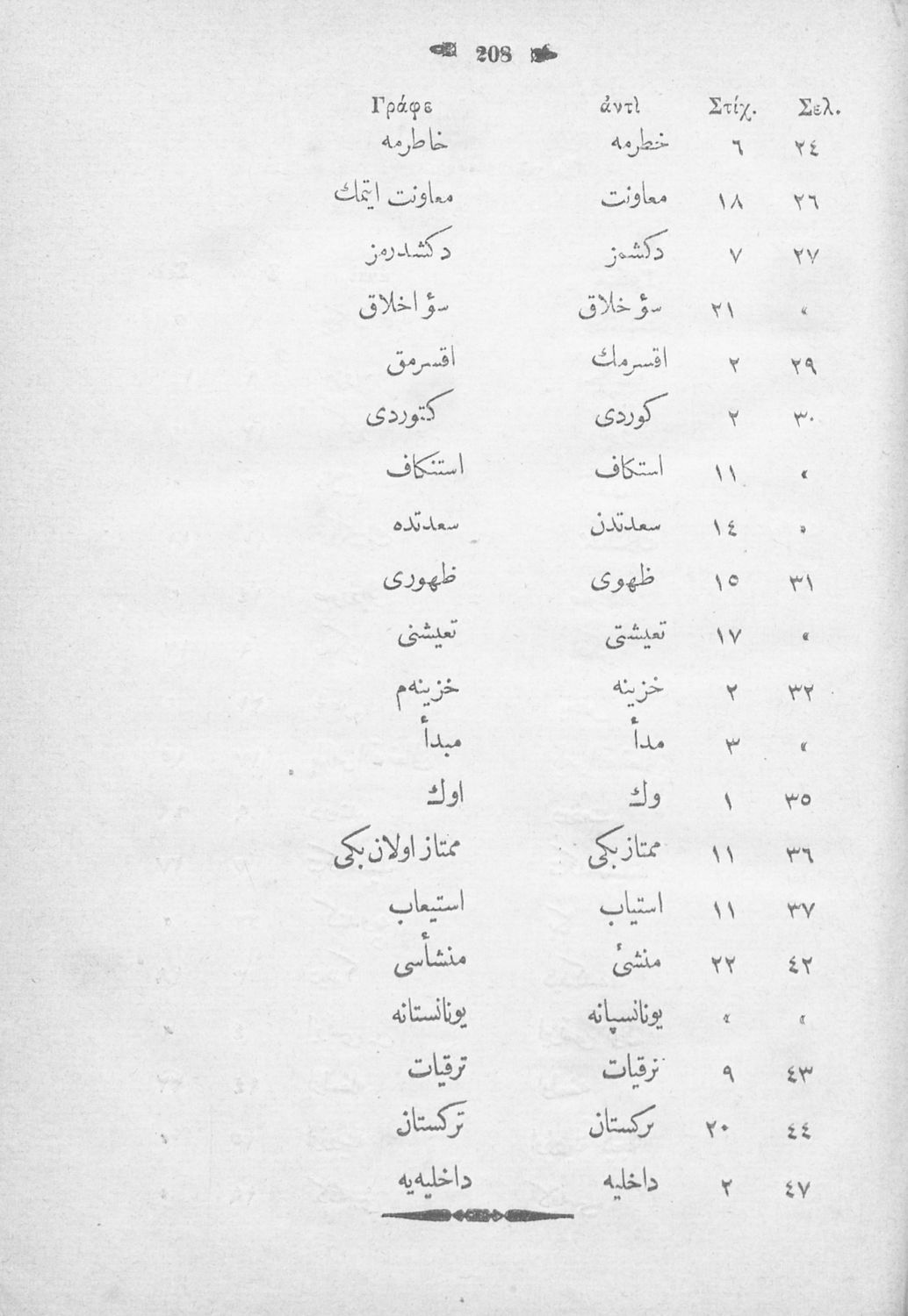 Σχολικό εγχειρίδιο που περιλαμβάνει κείμενα Οθωμανών συγγραφέων εμπνευσμένα από την οικογενειακή και κοινωνική ζωή και την ιστορία, λεξιλογική ανάλυση, και τους βασικότερους κανόνες γραμματικής της τουρκοαραβοπερσικής γλώσσας.