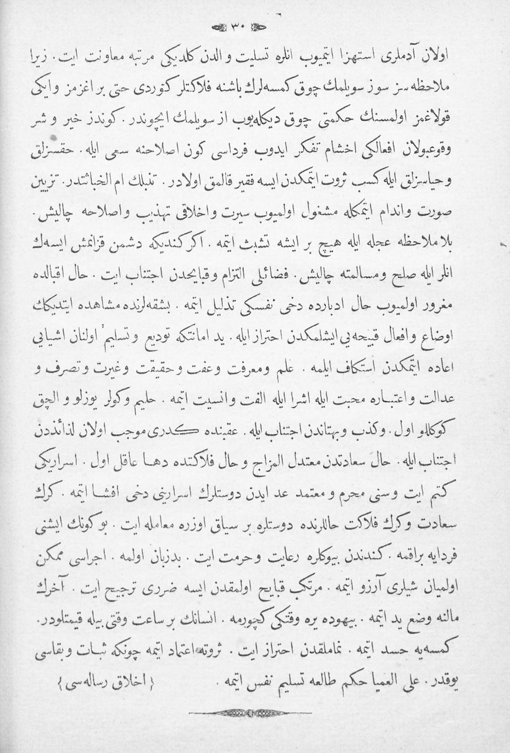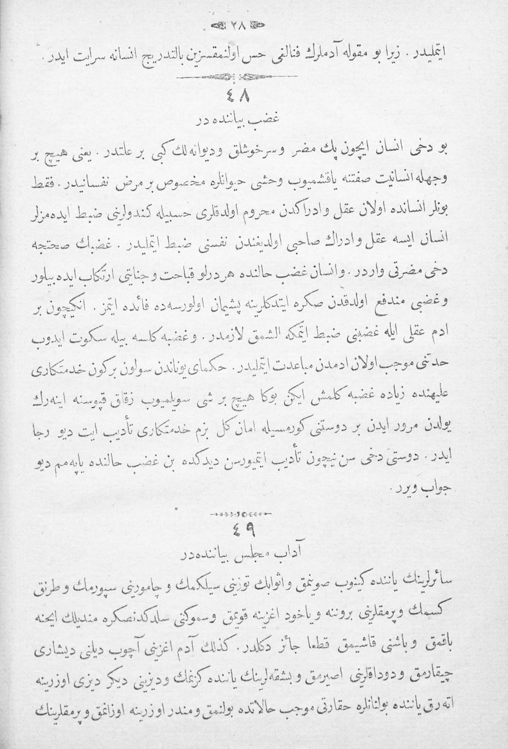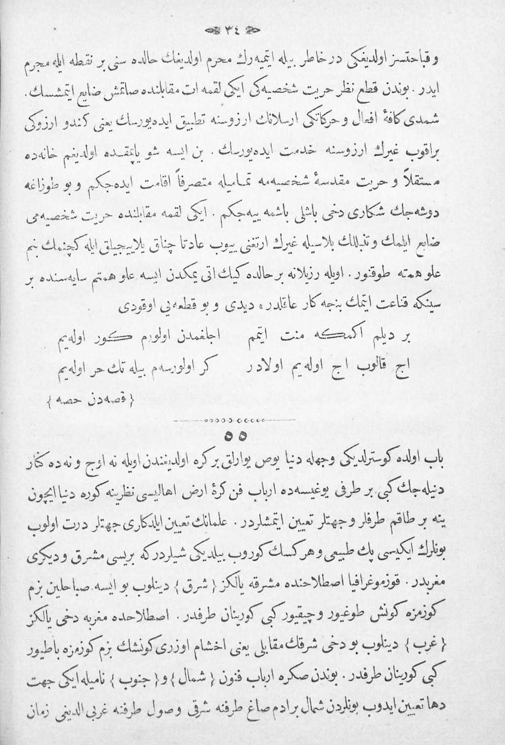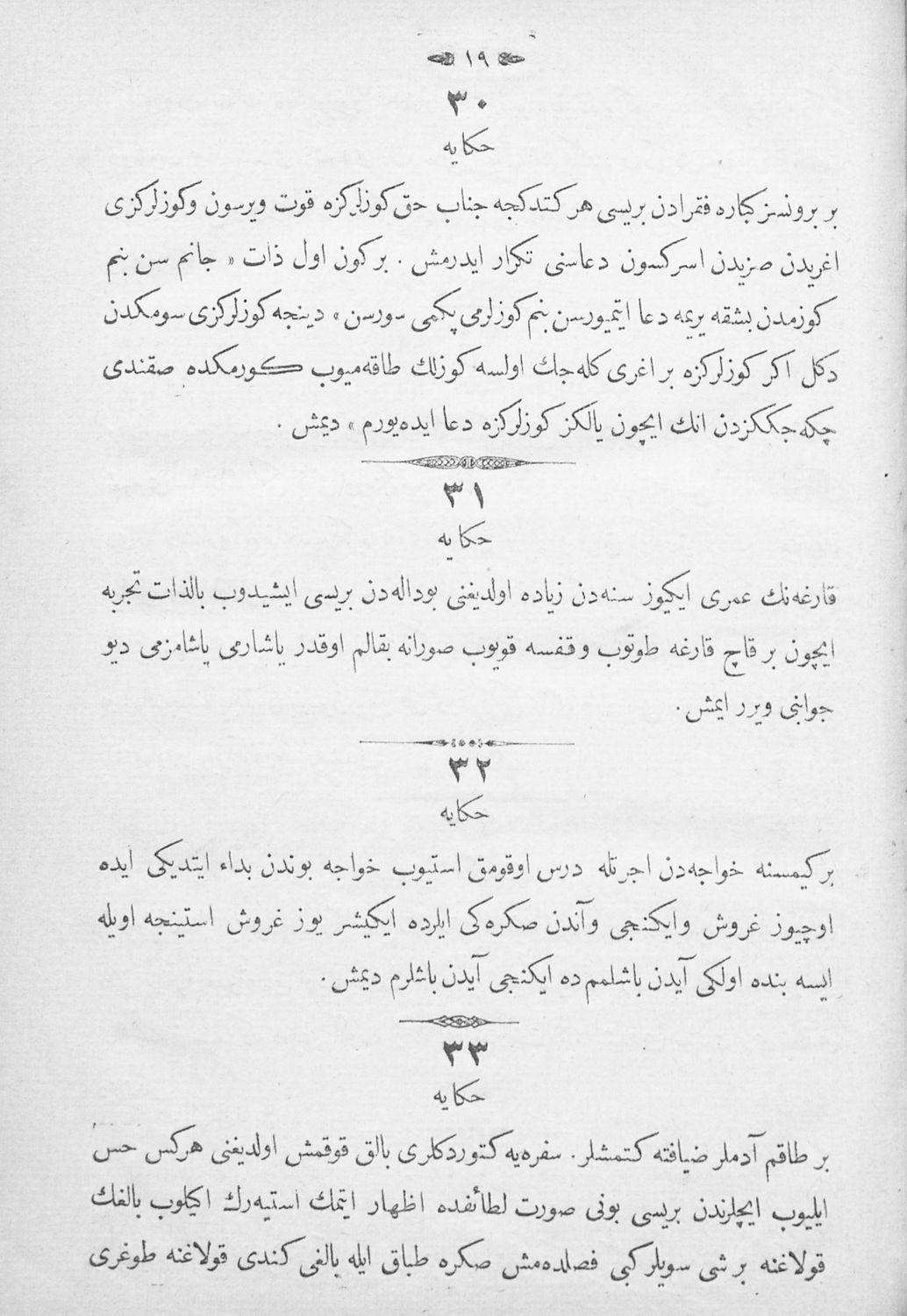 Σχολικό εγχειρίδιο που περιλαμβάνει κείμενα Οθωμανών συγγραφέων εμπνευσμένα από την οικογενειακή και κοινωνική ζωή και την ιστορία, λεξιλογική ανάλυση, και τους βασικότερους κανόνες γραμματικής της τουρκοαραβοπερσικής γλώσσας.