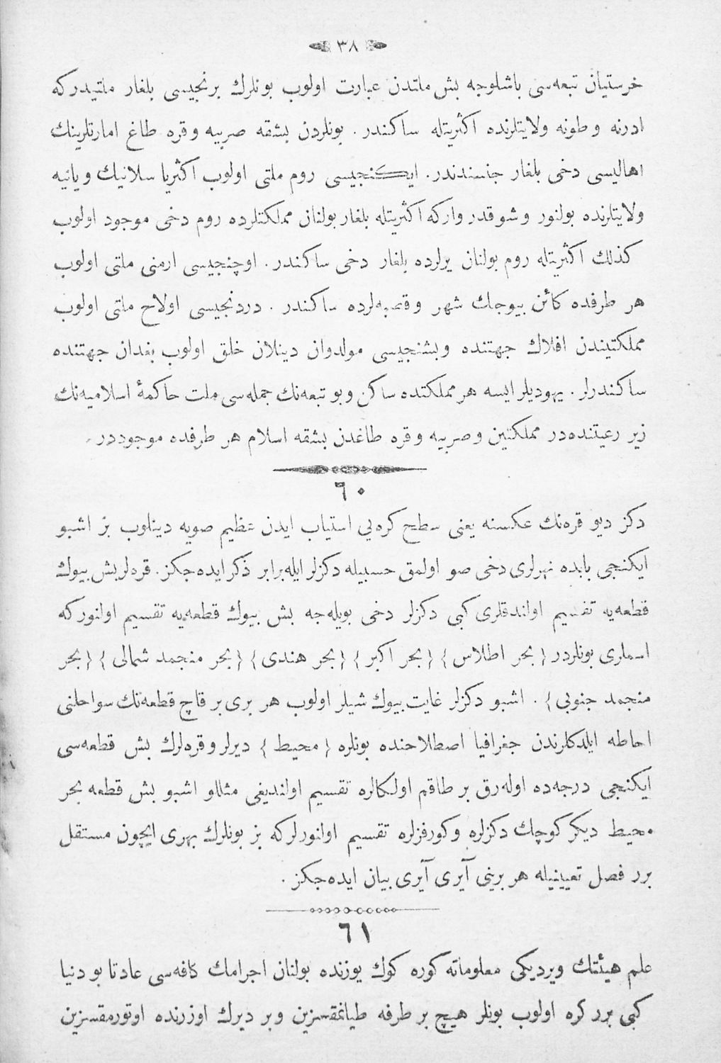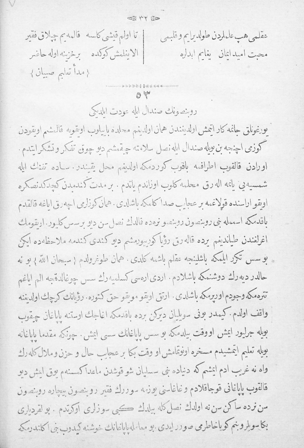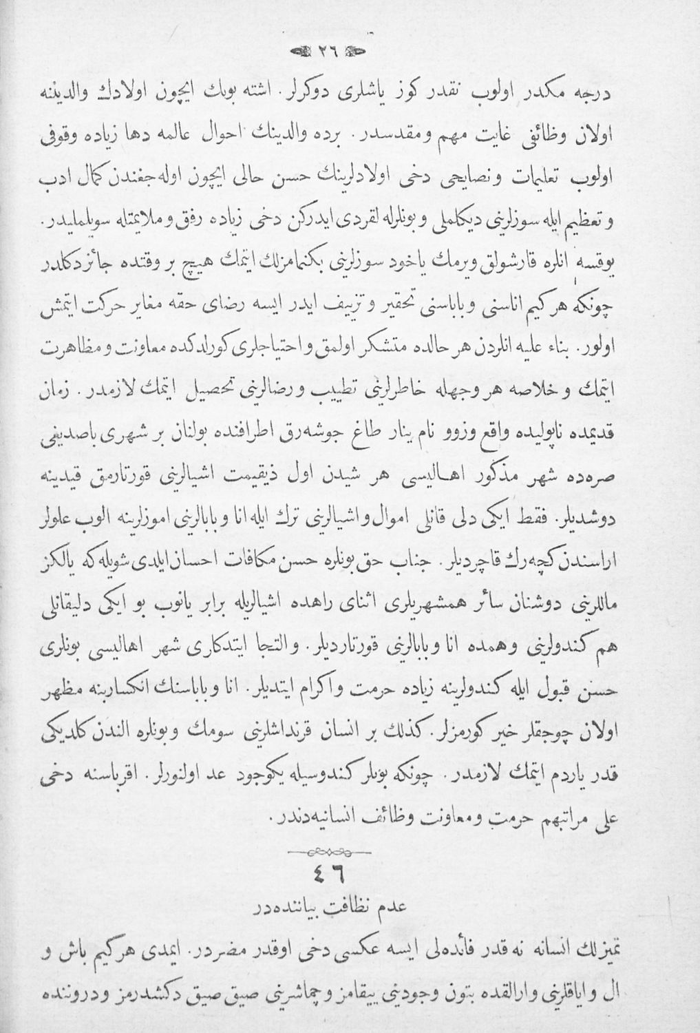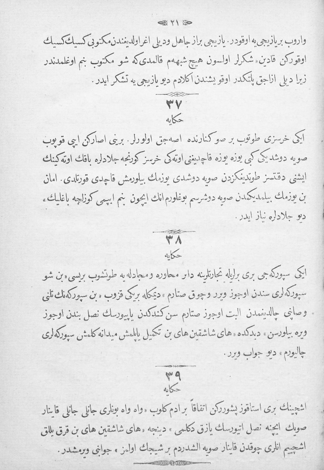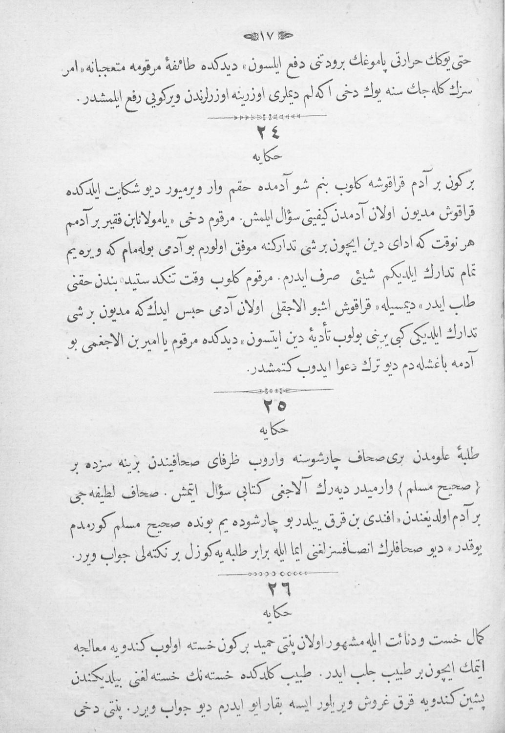 Σχολικό εγχειρίδιο που περιλαμβάνει κείμενα Οθωμανών συγγραφέων εμπνευσμένα από την οικογενειακή και κοινωνική ζωή και την ιστορία, λεξιλογική ανάλυση, και τους βασικότερους κανόνες γραμματικής της τουρκοαραβοπερσικής γλώσσας.