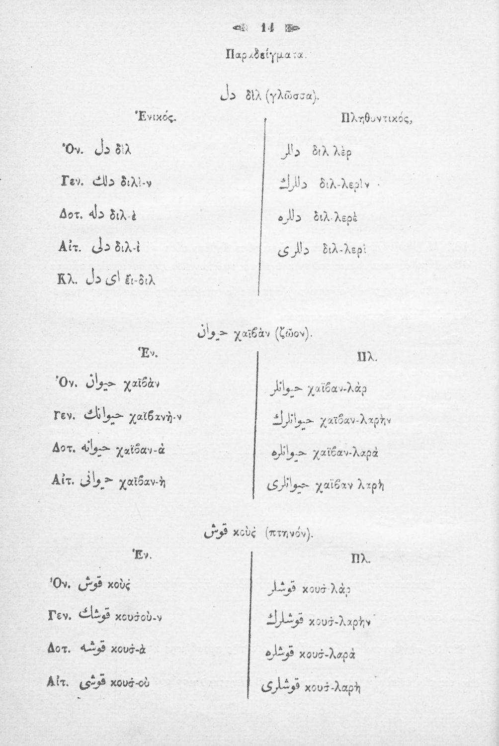 LDR 01281 2200181 4500 035 ## _a02-02875 040 ## _aΕλληνικό Λογοτεχνικό και Ιστορικό Αρχείο 041 ## _ael 100 ## _aΚλεάνθης Χαραλαμπίδης (επιμ.) 110 ## _a1873.36 245 0# _aΑνθολογία Οθωμανική περιέχουσα συλλογήν εκλεκτών τεμαχίων διαφόρων Οθωμανών συγγραφέων, λεξιλόγιον και γραμματικήν, Τεύχος πρώτον 260 ## _aΚωνσταντινούπολη _bΟχανές Μουχεντισιάν _c1873 300 ## _a264 520 ## _aΣχολικό εγχειρίδιο που περιλαμβάνει κείμενα Οθωμανών συγγραφέων εμπνευσμένα από την οικογενειακή και κοινωνική ζωή και την ιστορία, λεξιλογική ανάλυση, και τους βασικότερους κανόνες γραμματικής της τουρκοαραβοπερσικής γλώσσας. 522 ## _aΈξω ελληνισμός 546 ## _aΤουρκικά 563 ## _aΣκληρό Εξώφυλλο 650 #4 _aΓραμματική _aΕπίθετο _aΛεξιλόγιο _aΜετοχή