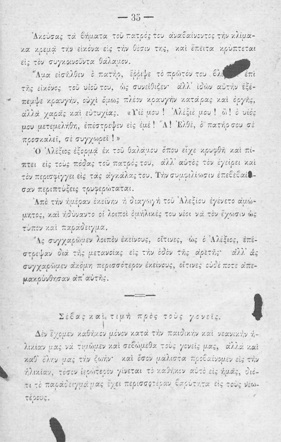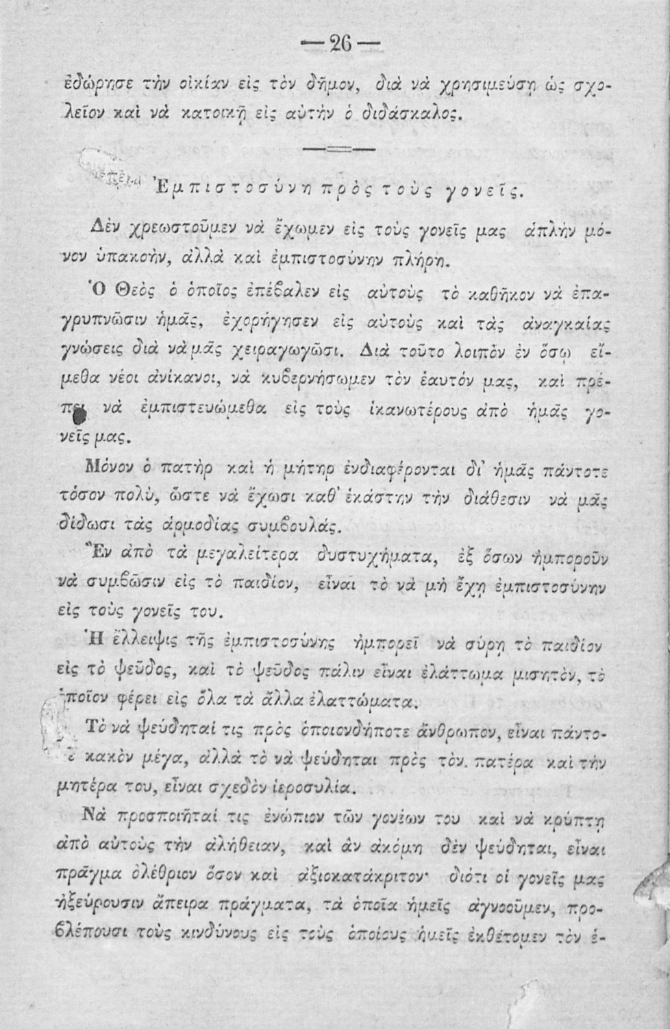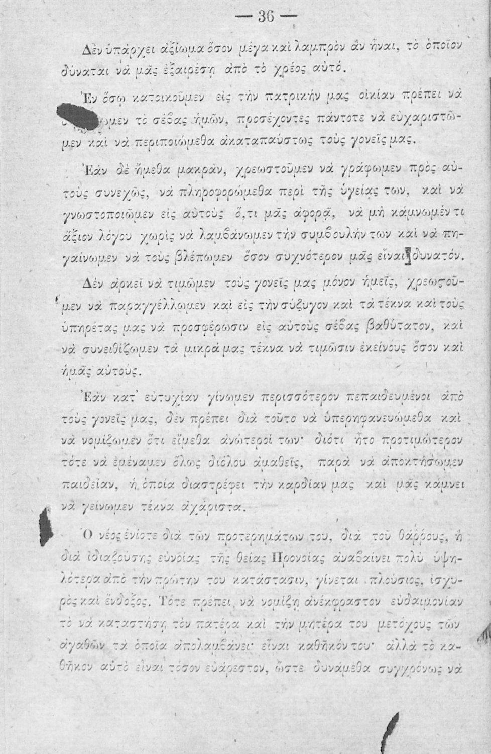 Αναγνωστικό Δημοτικού που περιλαμβάνει κείμενα με νουθεσίες και προοριζόταν για τη διδασκαλία των καθηκόντων των παιδιών απέναντι στους γονείς τους.
