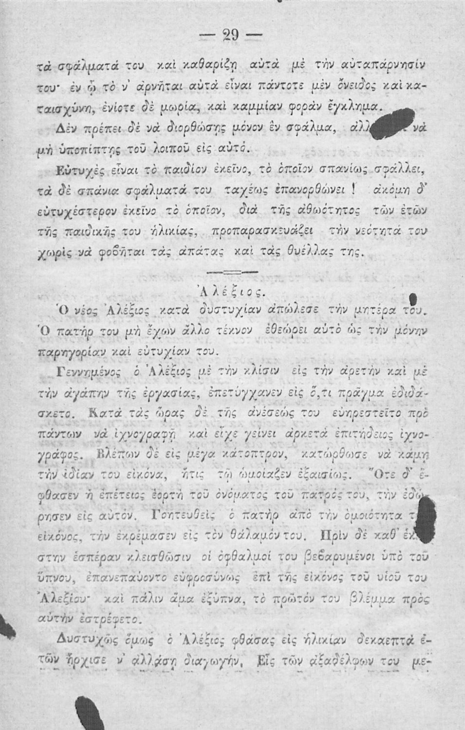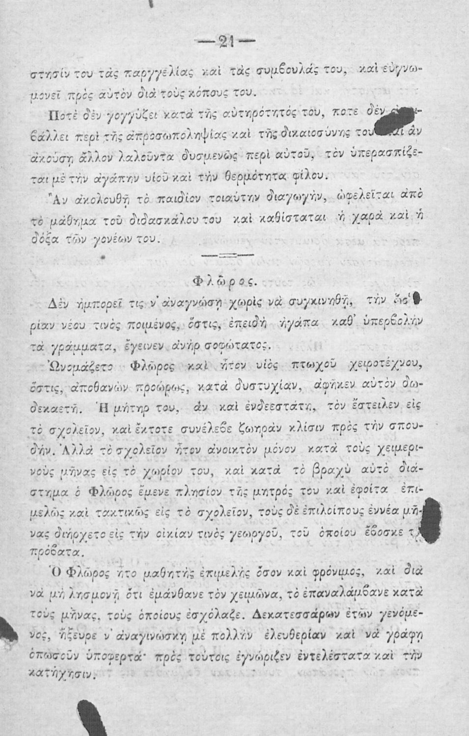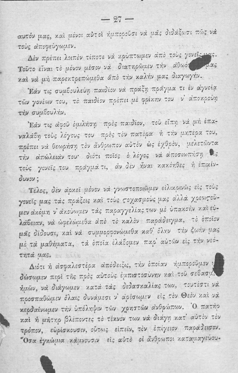 Αναγνωστικό Δημοτικού που περιλαμβάνει κείμενα με νουθεσίες και προοριζόταν για τη διδασκαλία των καθηκόντων των παιδιών απέναντι στους γονείς τους.