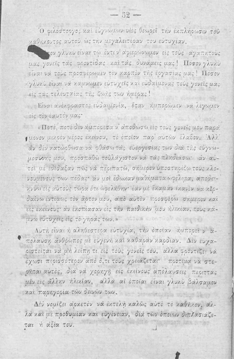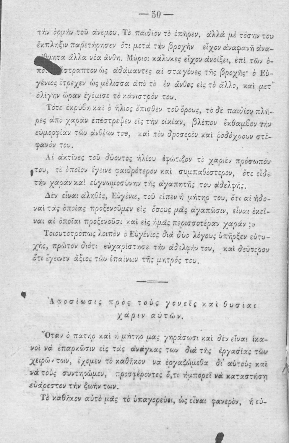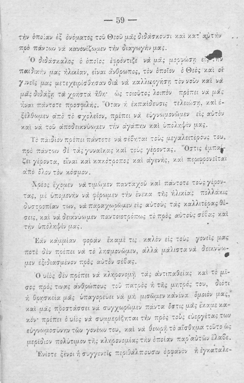 Αναγνωστικό Δημοτικού που περιλαμβάνει κείμενα με νουθεσίες και προοριζόταν για τη διδασκαλία των καθηκόντων των παιδιών απέναντι στους γονείς τους.