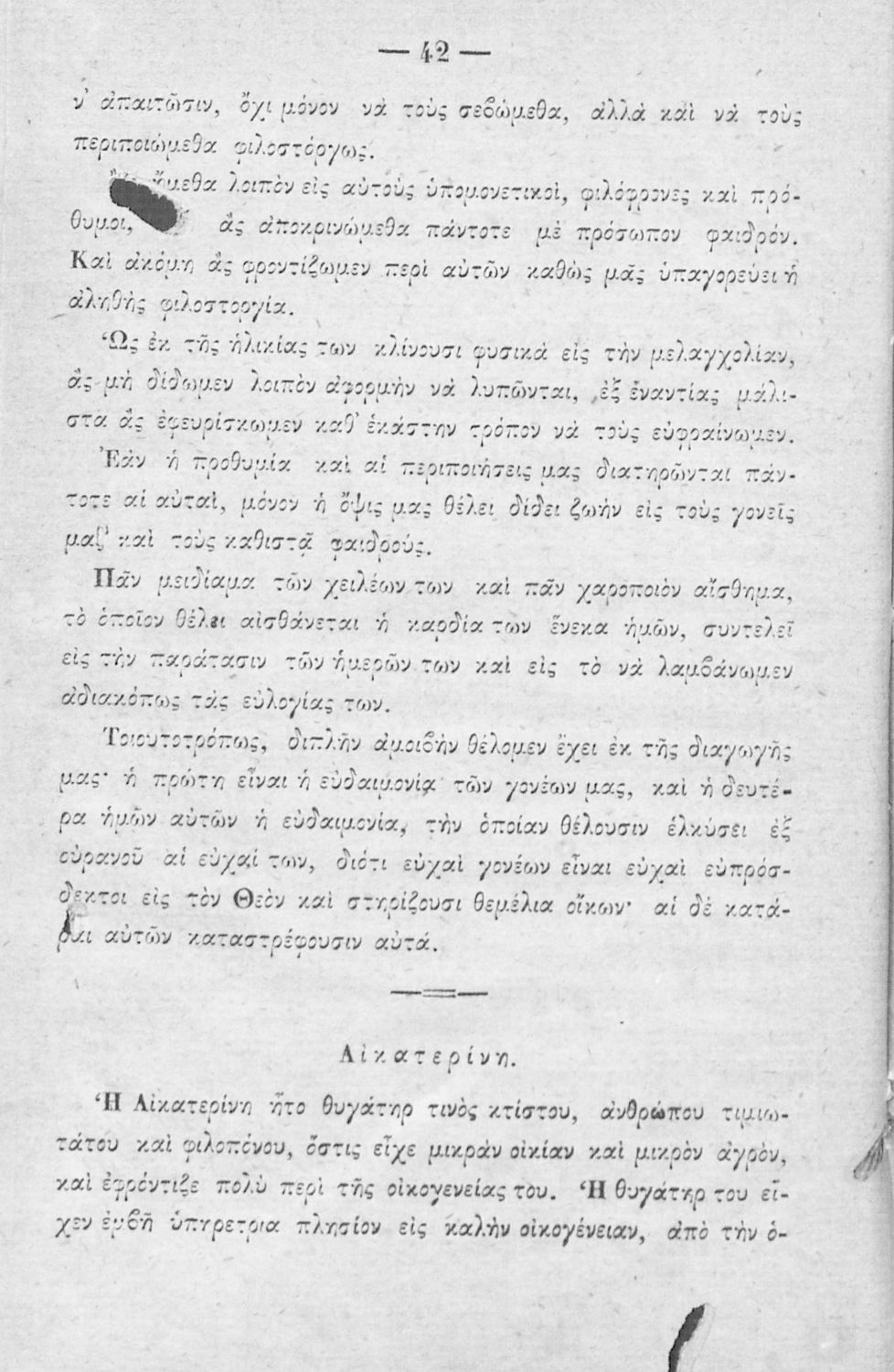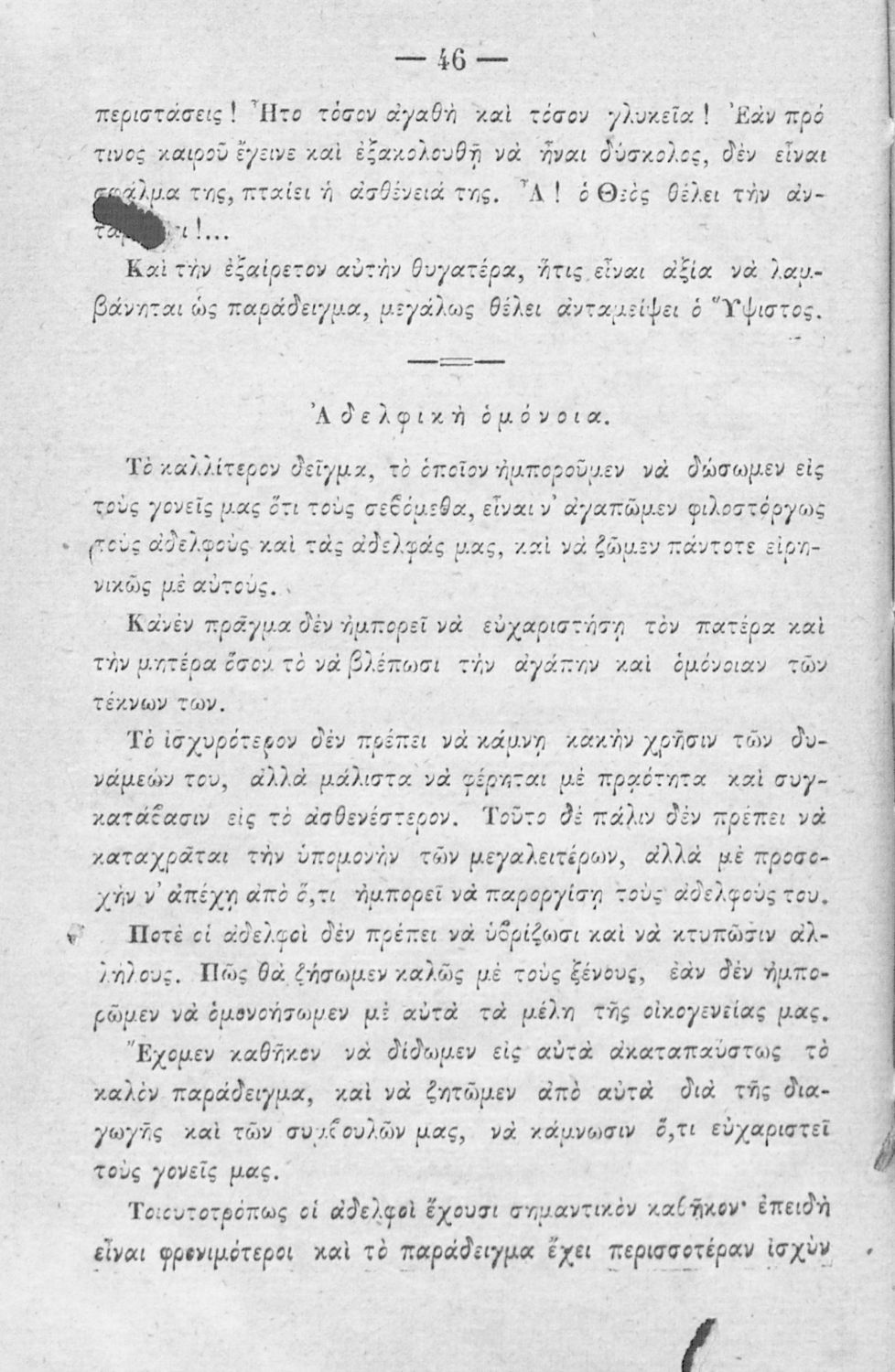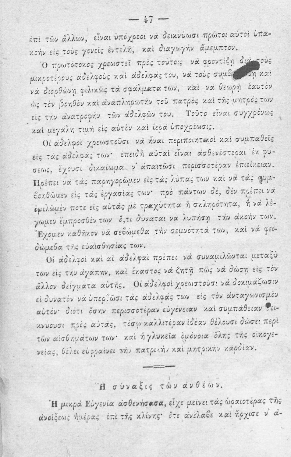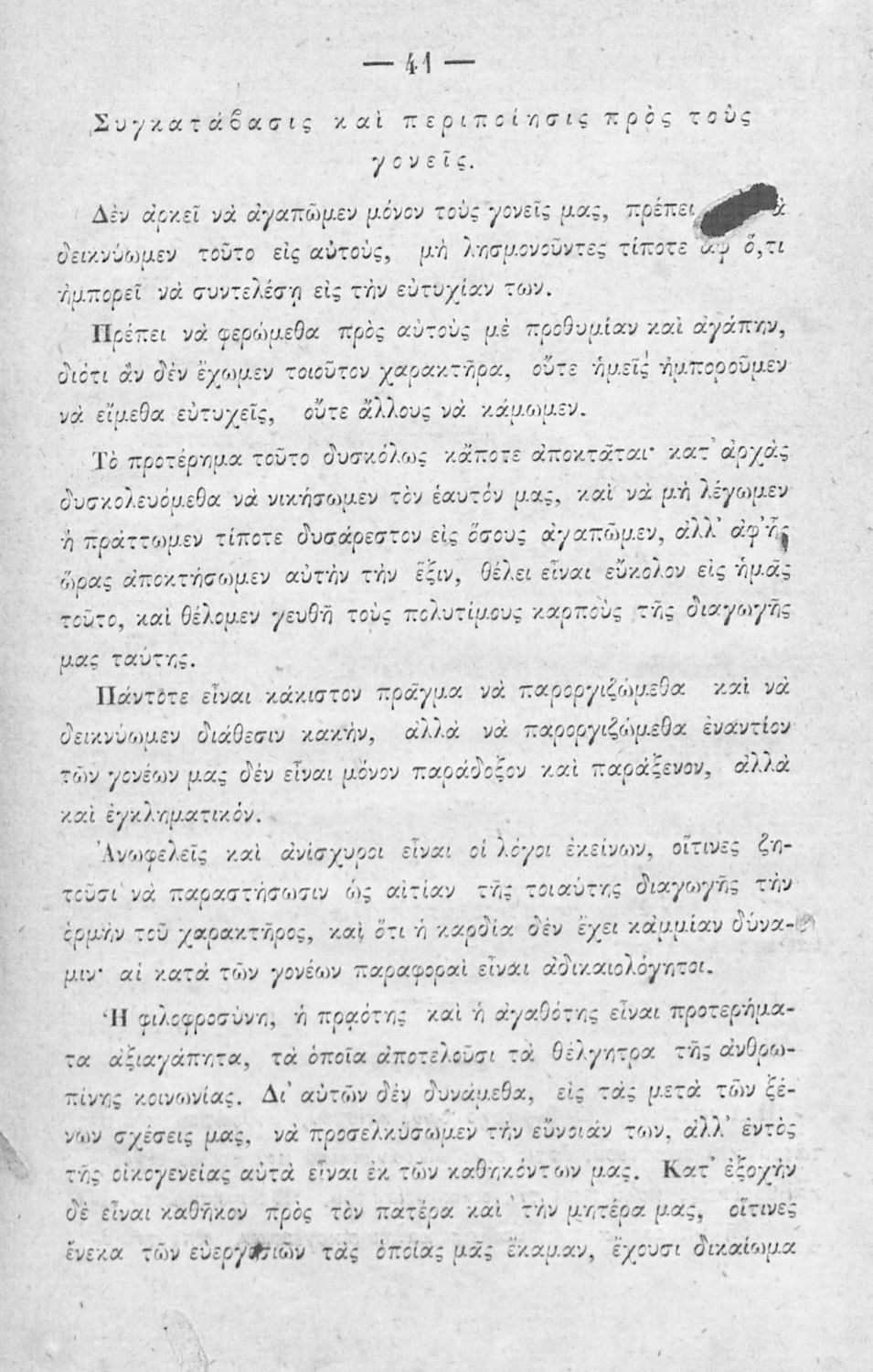 Αναγνωστικό Δημοτικού που περιλαμβάνει κείμενα με νουθεσίες και προοριζόταν για τη διδασκαλία των καθηκόντων των παιδιών απέναντι στους γονείς τους.