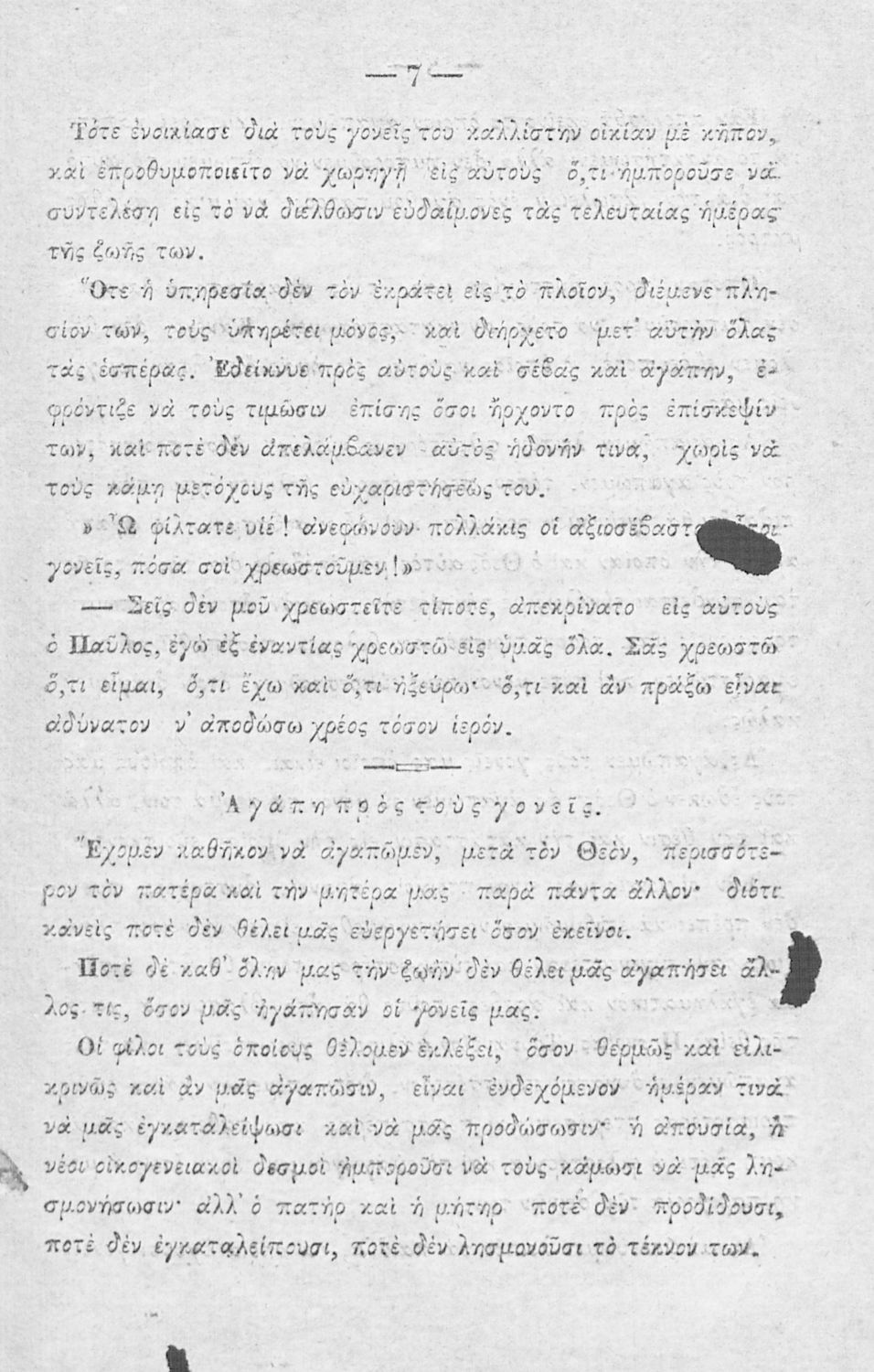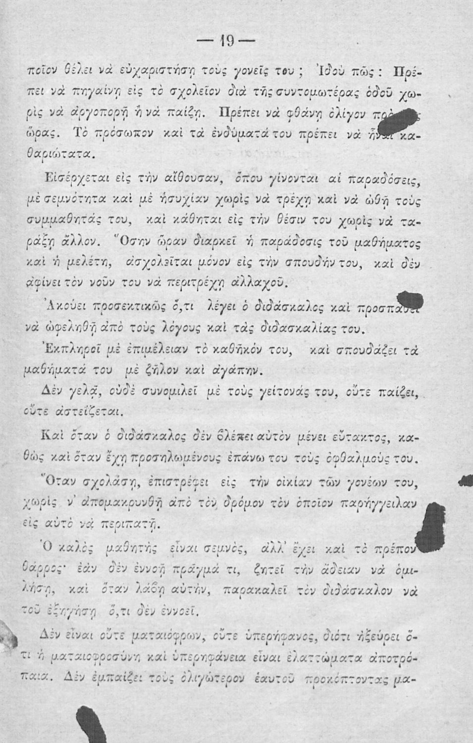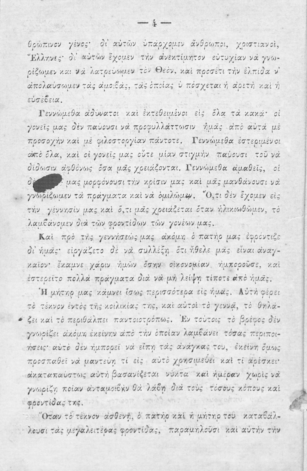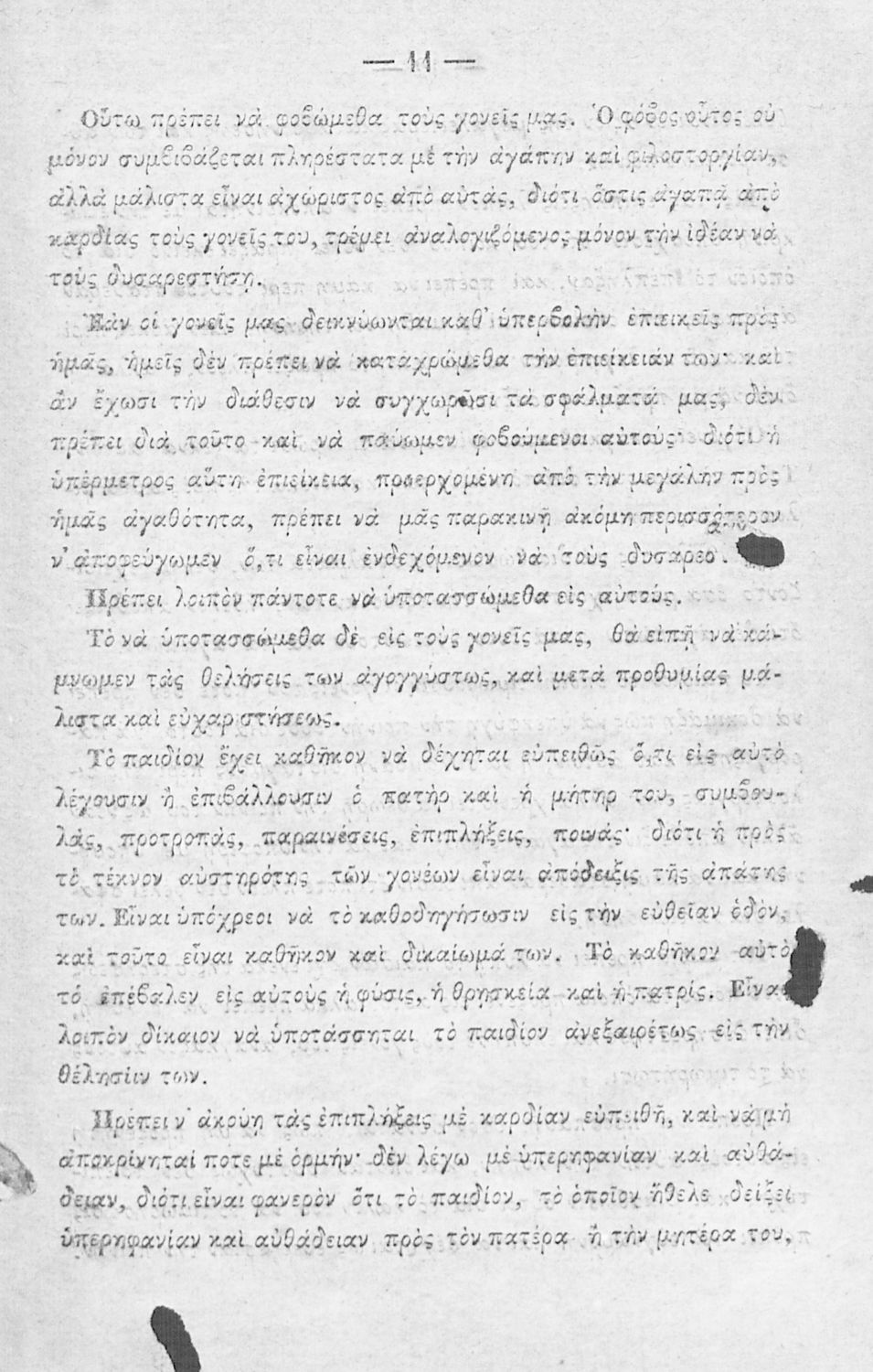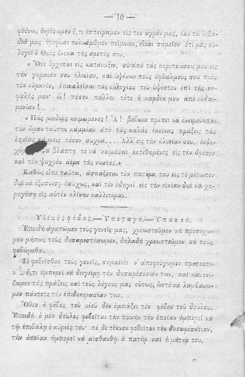 Αναγνωστικό Δημοτικού που περιλαμβάνει κείμενα με νουθεσίες και προοριζόταν για τη διδασκαλία των καθηκόντων των παιδιών απέναντι στους γονείς τους.