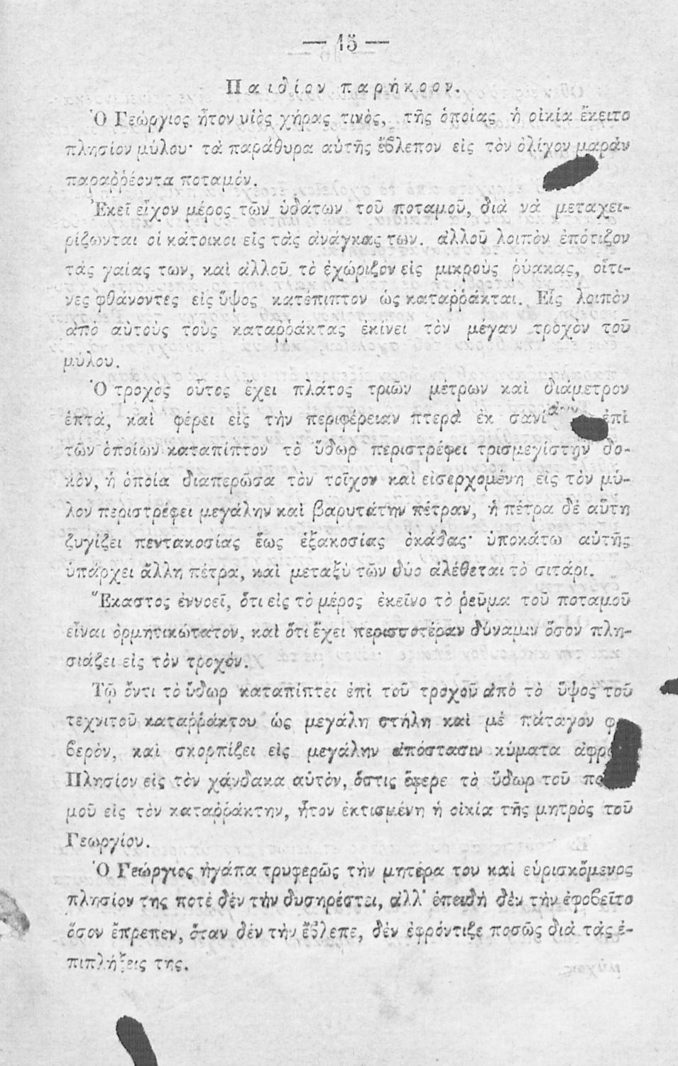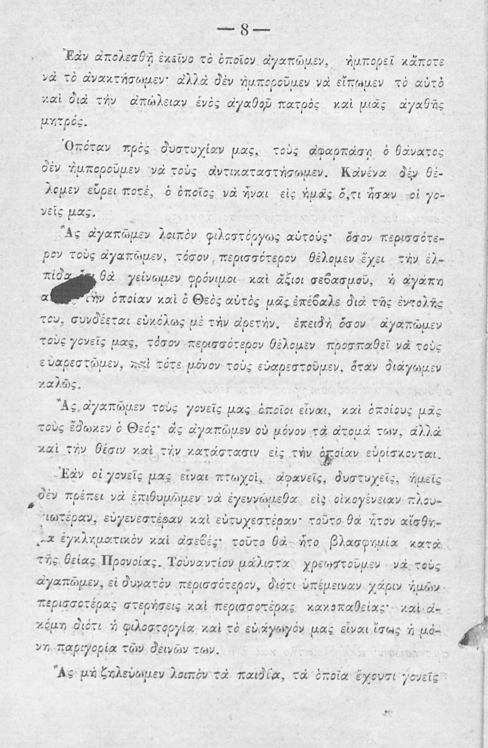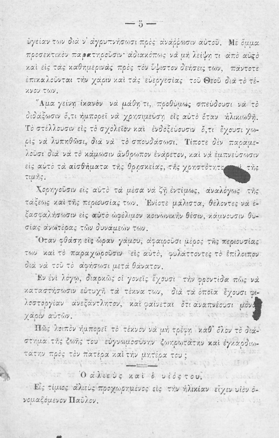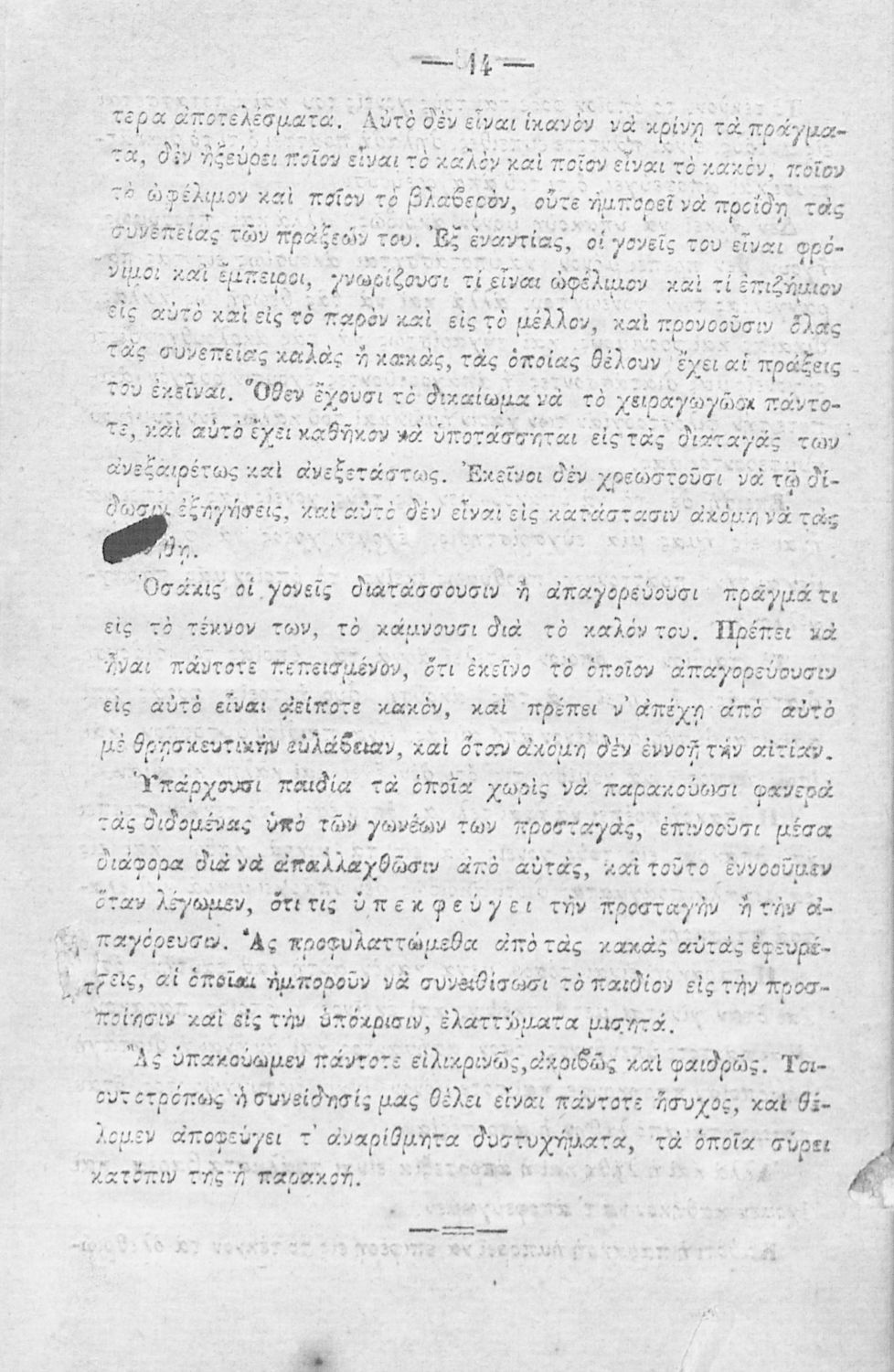 Αναγνωστικό Δημοτικού που περιλαμβάνει κείμενα με νουθεσίες και προοριζόταν για τη διδασκαλία των καθηκόντων των παιδιών απέναντι στους γονείς τους.