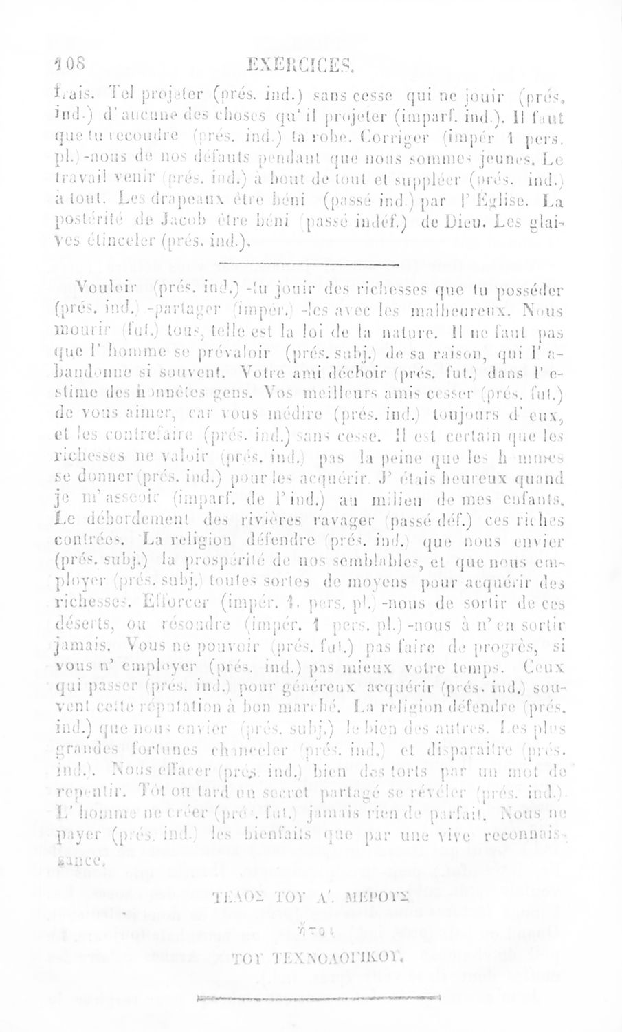Σχολικό εγχειρίδιο Αρχαίων Ελληνικών για τα Ελληνικά Σχολεία, Παρθεναγωγεία και Γυμνάσια που περιέχει τους κανόνες γραμματικής και είναι χωρισμένο σε φθογγολογικό, τυπολογικό και ετυμολογικό μέρος.