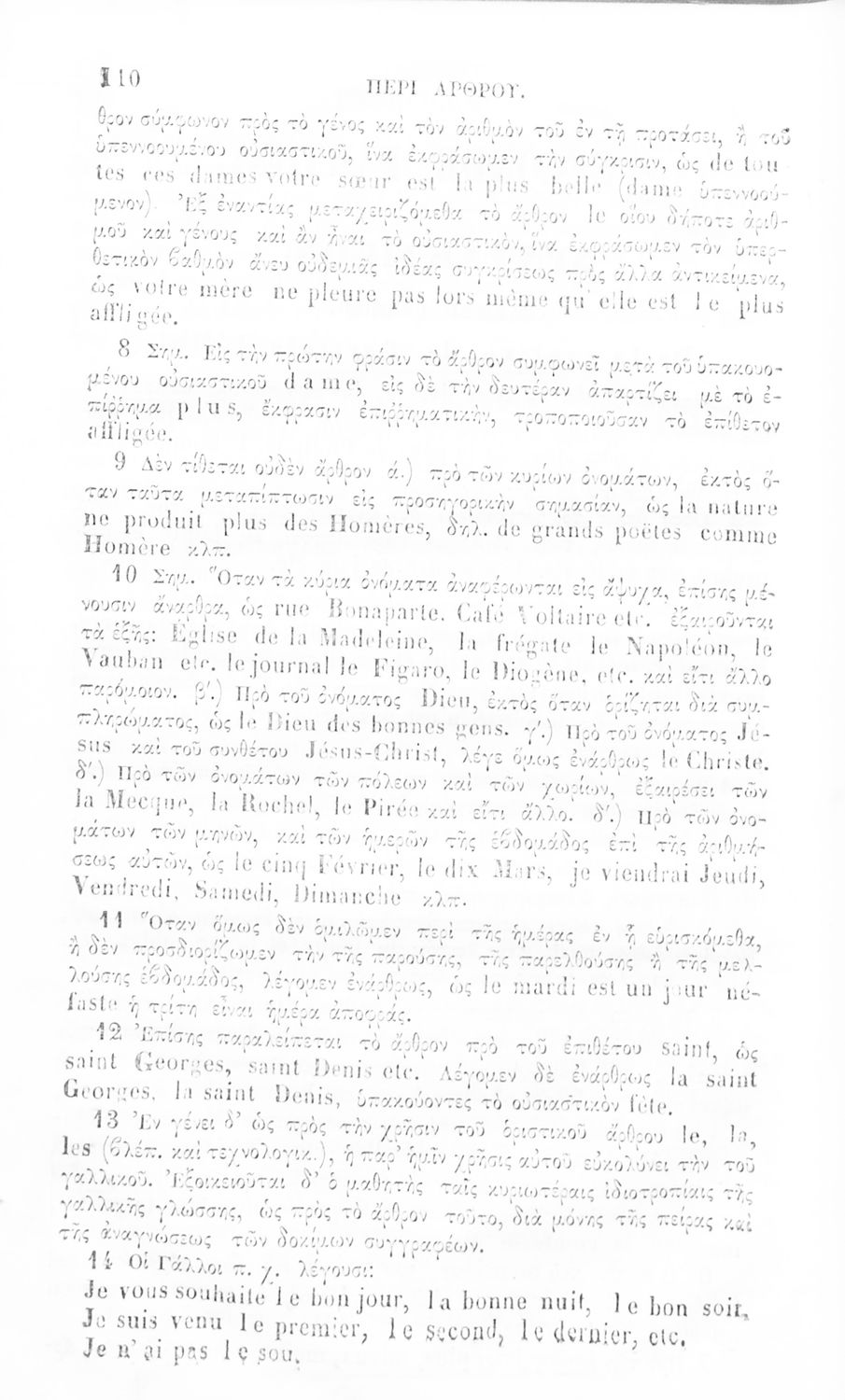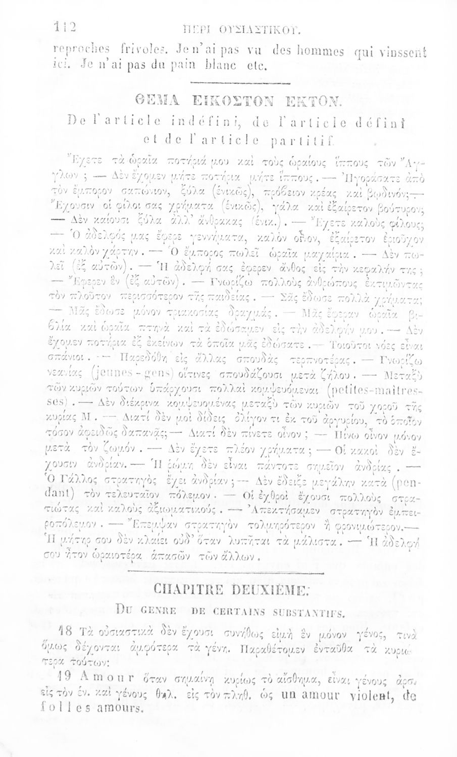 Γραμματική της Γαλλικής γλώσσας για τα Ελληνικά Σχολεία και Παρθεναγωγεία που αναλύει τα μέρη του λόγου και περιέχει παραδείγματα και ασκήσεις.