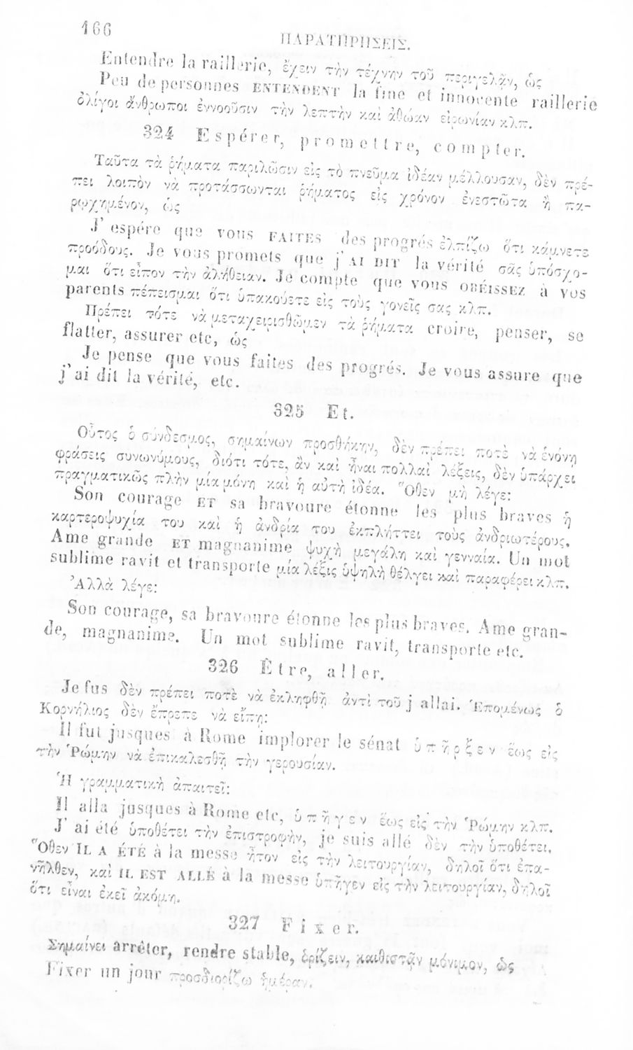 Γραμματική της Γαλλικής γλώσσας για τα Ελληνικά Σχολεία και Παρθεναγωγεία που αναλύει τα μέρη του λόγου και περιέχει παραδείγματα και ασκήσεις.