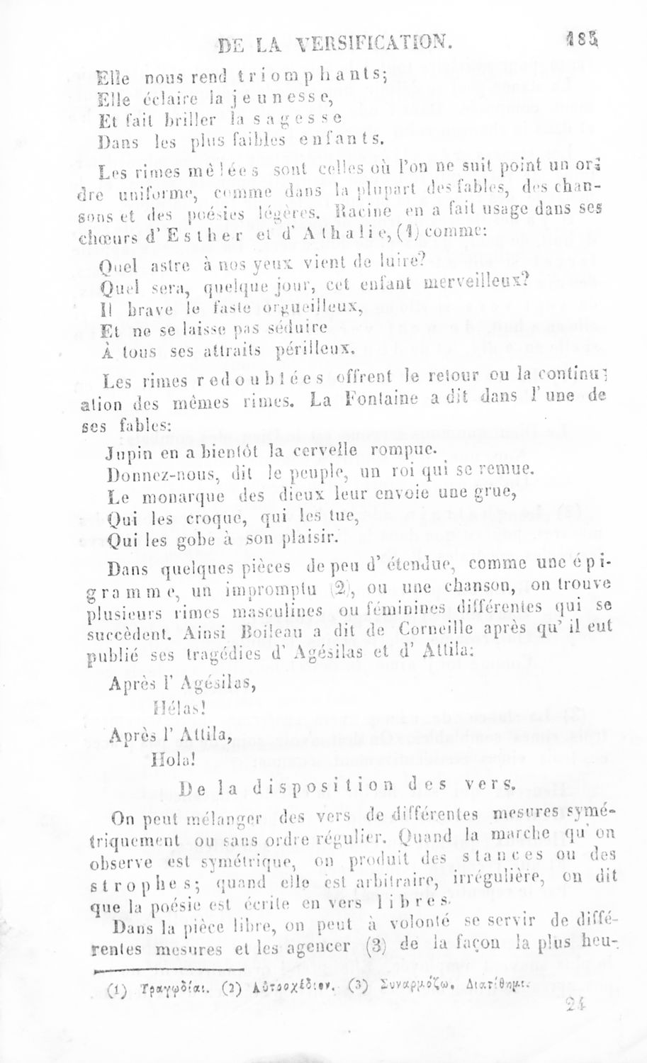 Σχολικό εγχειρίδιο Γαλλικών για τα Ελληνικά Σχολεία και τα Γυμνάσια που είναι χωρισμένο στο ετυμολογικό και γραμματικό μέρος, στο συντακτικό μέρος και στο στιχουργικό μέρος. Περιέχει και ελληνογαλλικό λεξικό ...