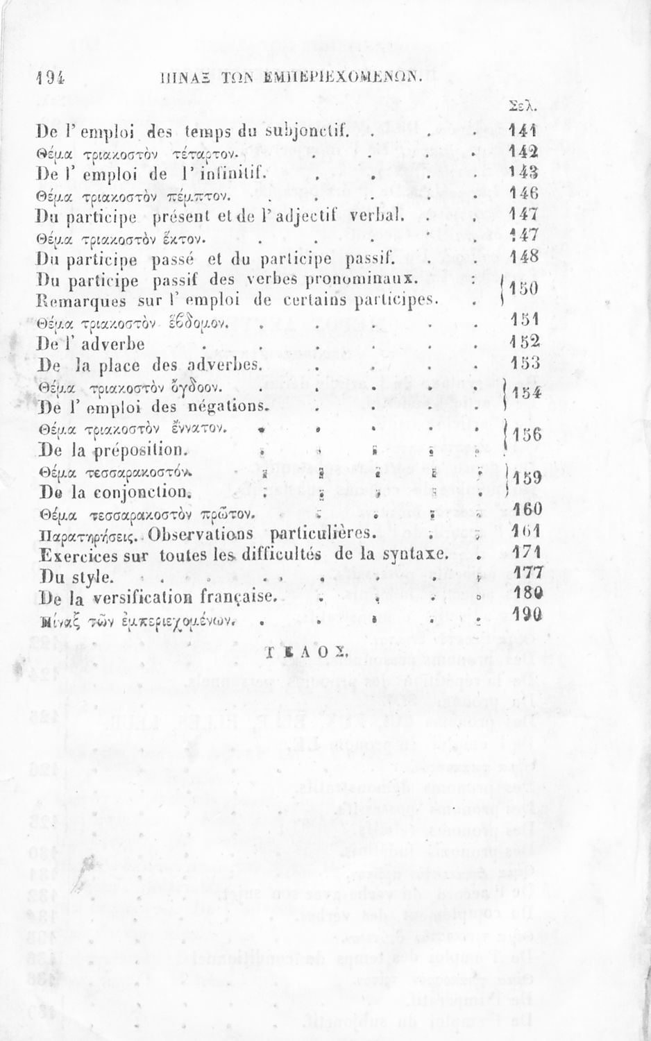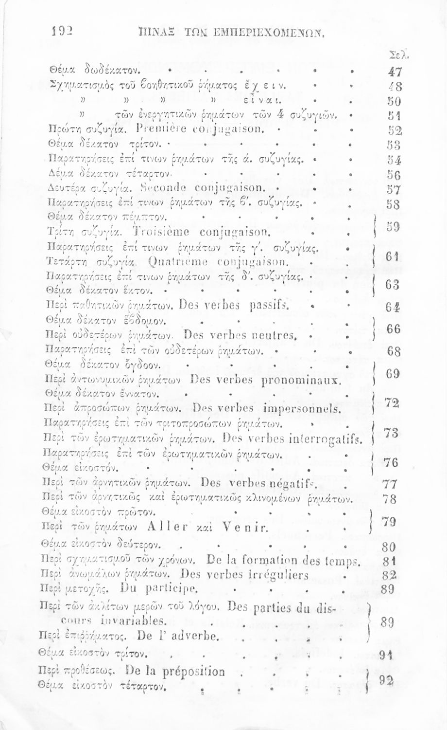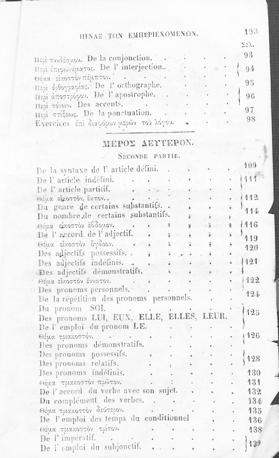 Γραμματική της Γαλλικής γλώσσας για τα Ελληνικά Σχολεία και Παρθεναγωγεία που αναλύει τα μέρη του λόγου και περιέχει παραδείγματα και ασκήσεις.
