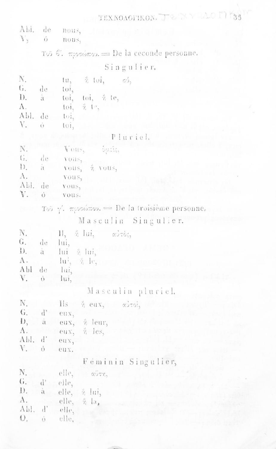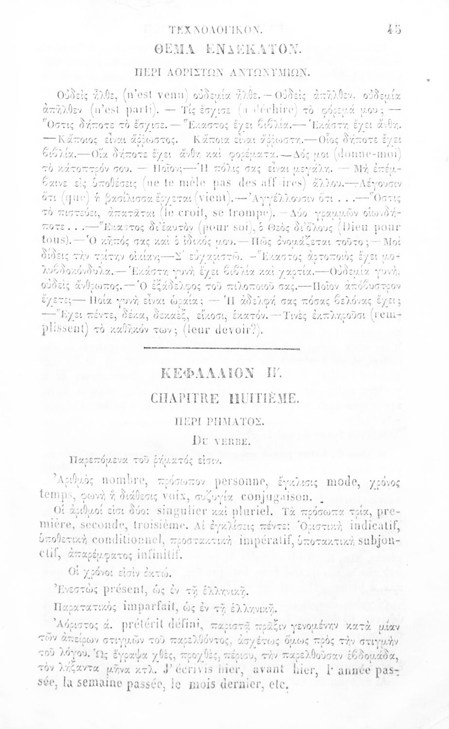 Σχολικό εγχειρίδιο Αρχαίων Ελληνικών για τα Ελληνικά Σχολεία, Παρθεναγωγεία και Γυμνάσια που περιέχει τους κανόνες γραμματικής και είναι χωρισμένο σε φθογγολογικό, τυπολογικό και ετυμολογικό μέρος.