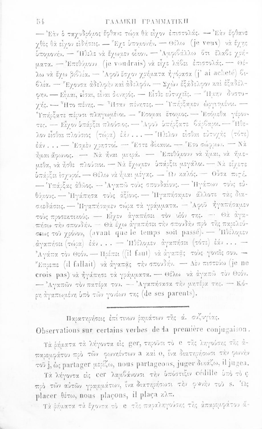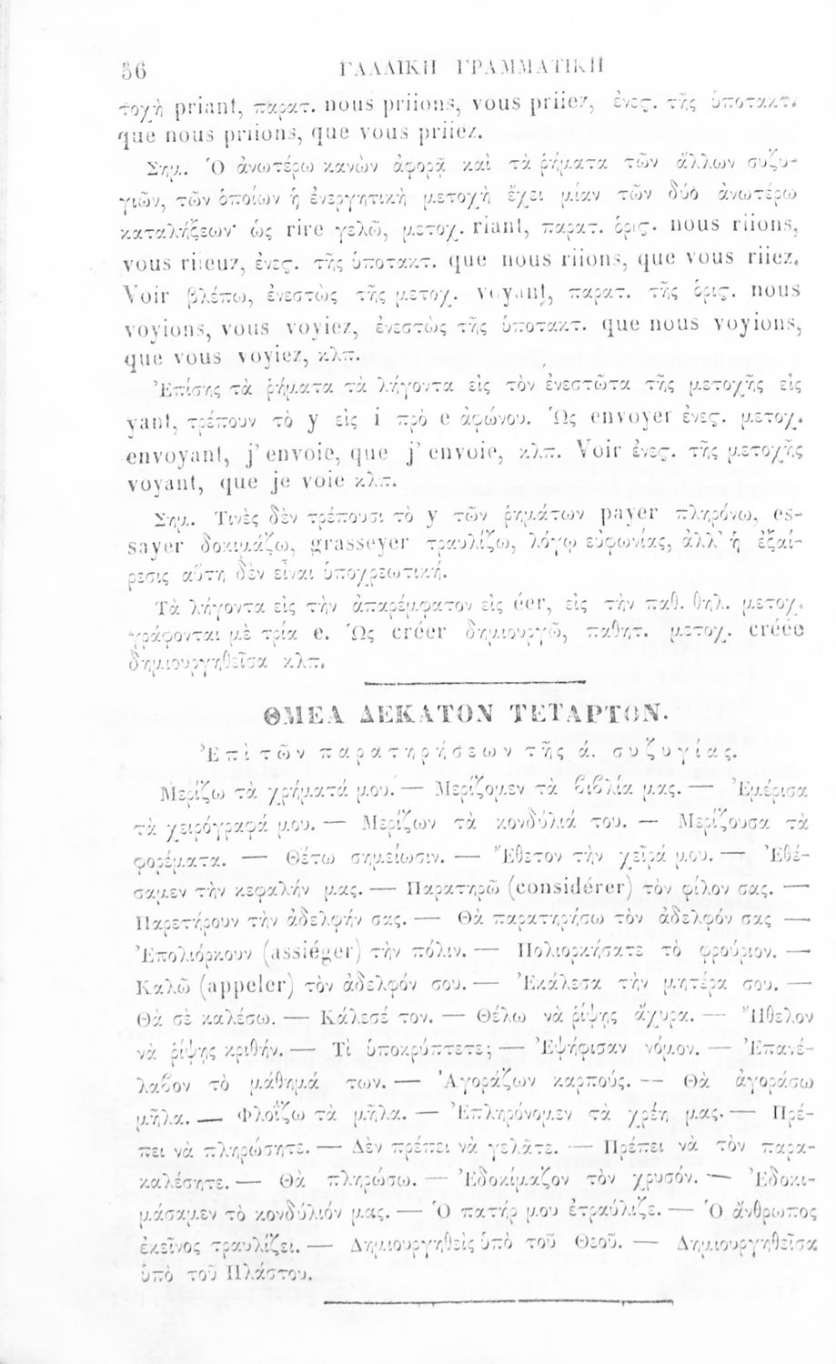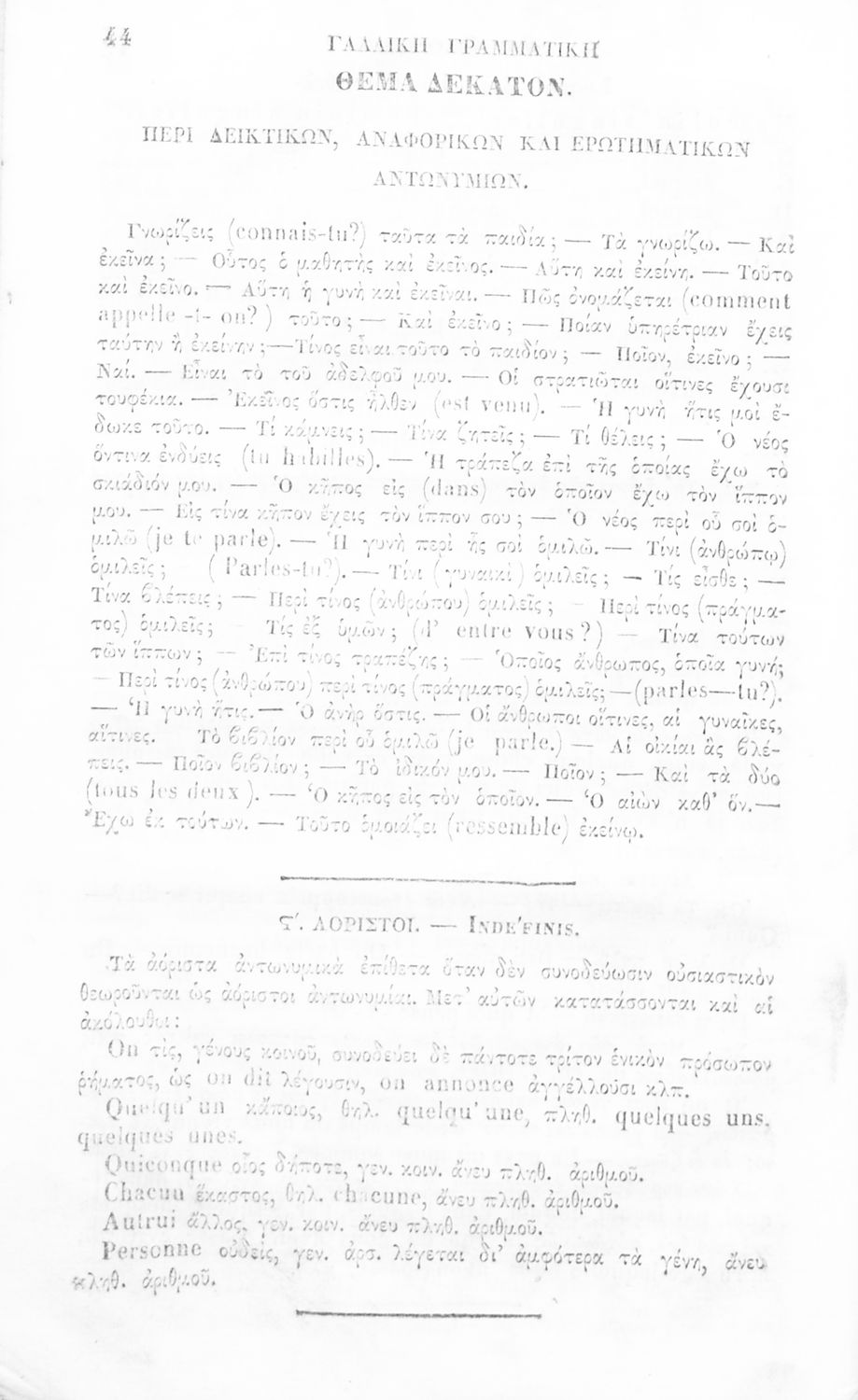 Γραμματική της Γαλλικής γλώσσας για τα Ελληνικά Σχολεία και Παρθεναγωγεία που αναλύει τα μέρη του λόγου και περιέχει παραδείγματα και ασκήσεις.