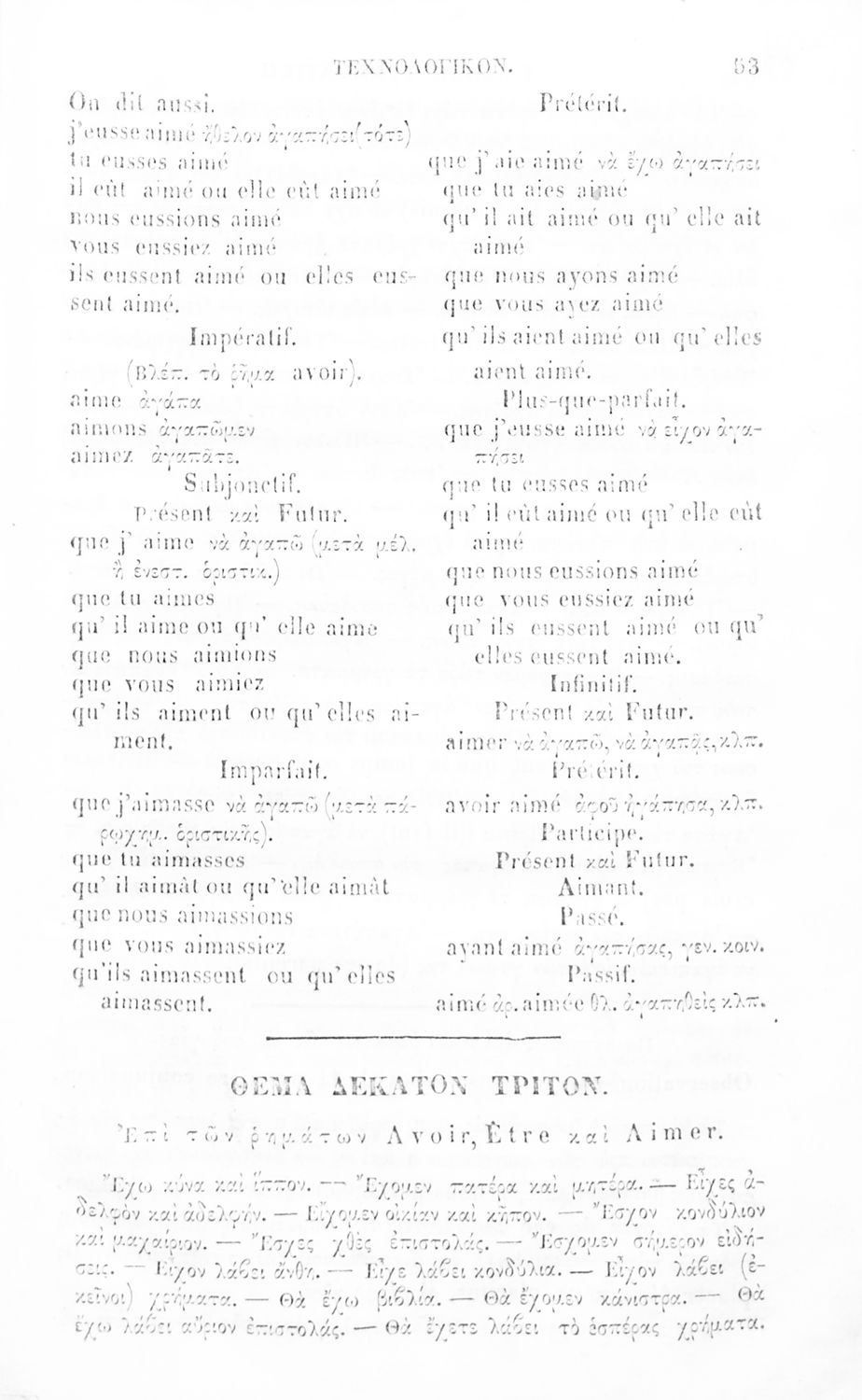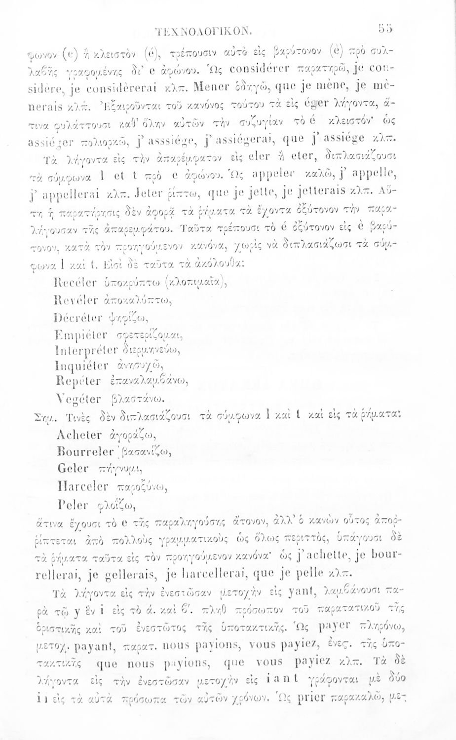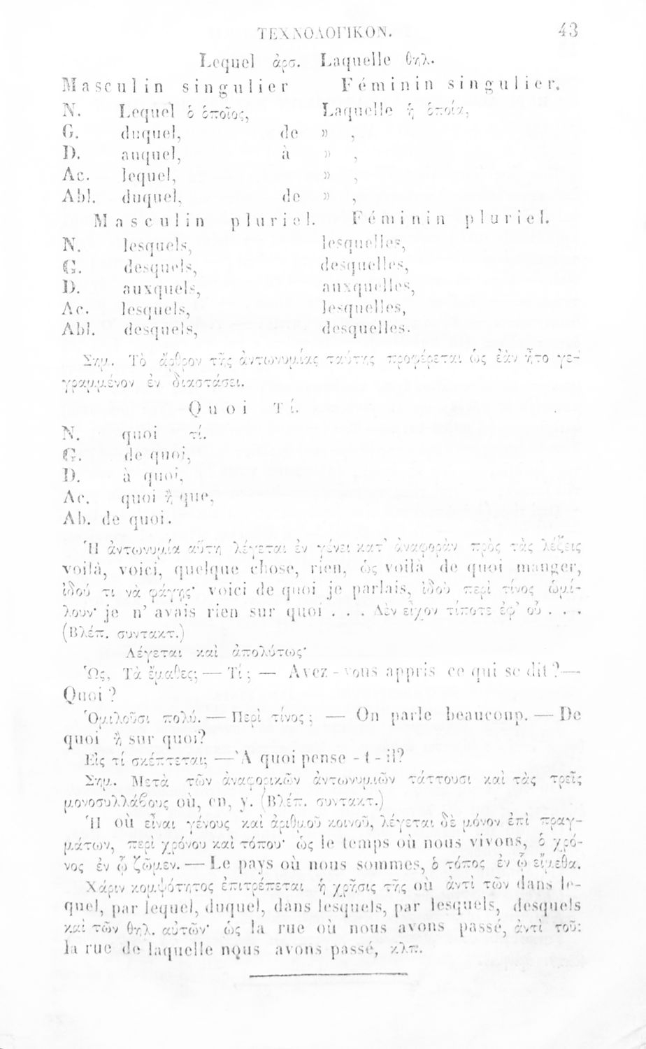 Γραμματική της Γαλλικής γλώσσας για τα Ελληνικά Σχολεία και Παρθεναγωγεία που αναλύει τα μέρη του λόγου και περιέχει παραδείγματα και ασκήσεις.