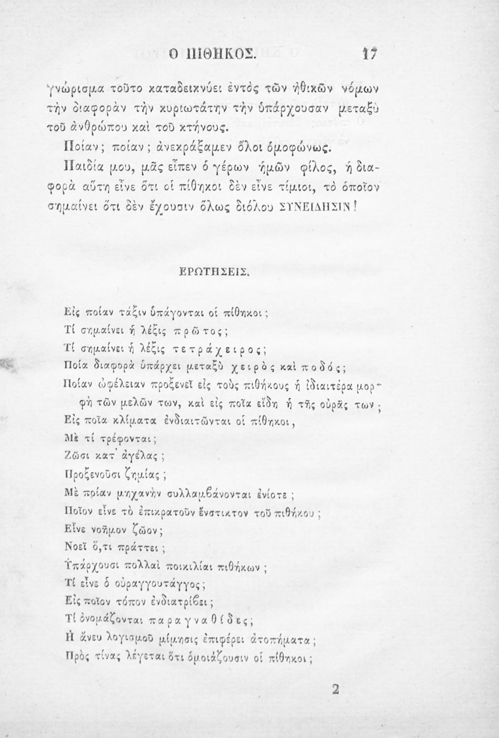 Σχολικό εγχειρίδιο Φυσικής Ιστορίας για τα Ελληνικά Σχολεία και Παρθεναγωγεία που περιλαμβάνει στοιχεία ζωολογίας και της φυτολογίας και διακρίνει τα ζώα και τα φυτά ανάλογα με την συνομοταξία στην οποία ...