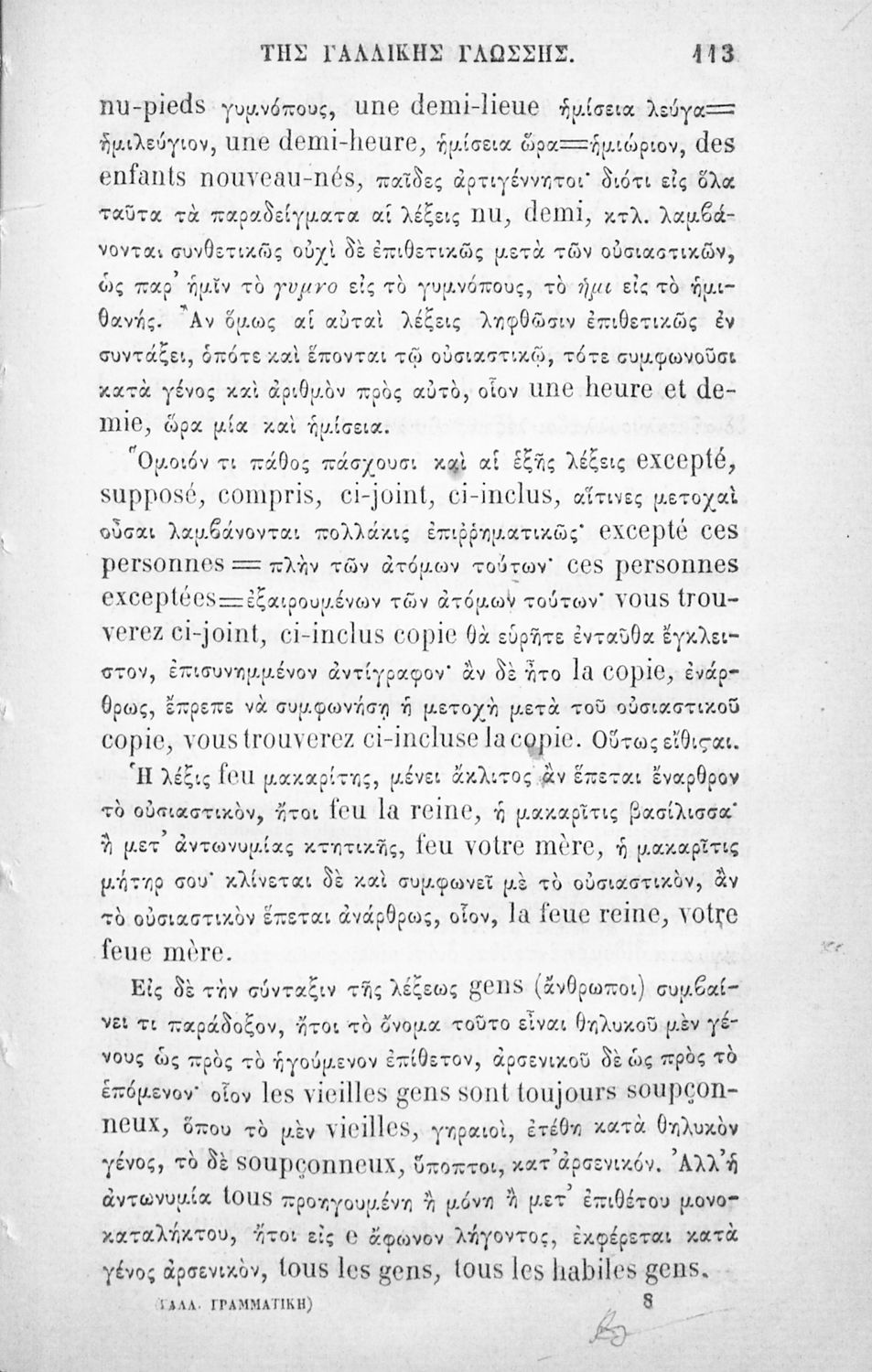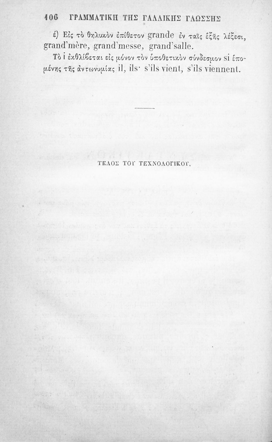 Κωδικός αναγνώρισης: 02-02894 Τίτλος: Γραμματική της γαλλικής γλώσσης, συνταχθείσα προς χρήσιν των Γυμνασίων και σχολείων της Ελλάδος Συγγραφέας: Ιωάννης Δ. Καρασούτσας Μέγεθος και υπόστρωμα: Σχολικό εγχειρίδιο, μαλακό εξώφυλλο, 184 σελίδες. |