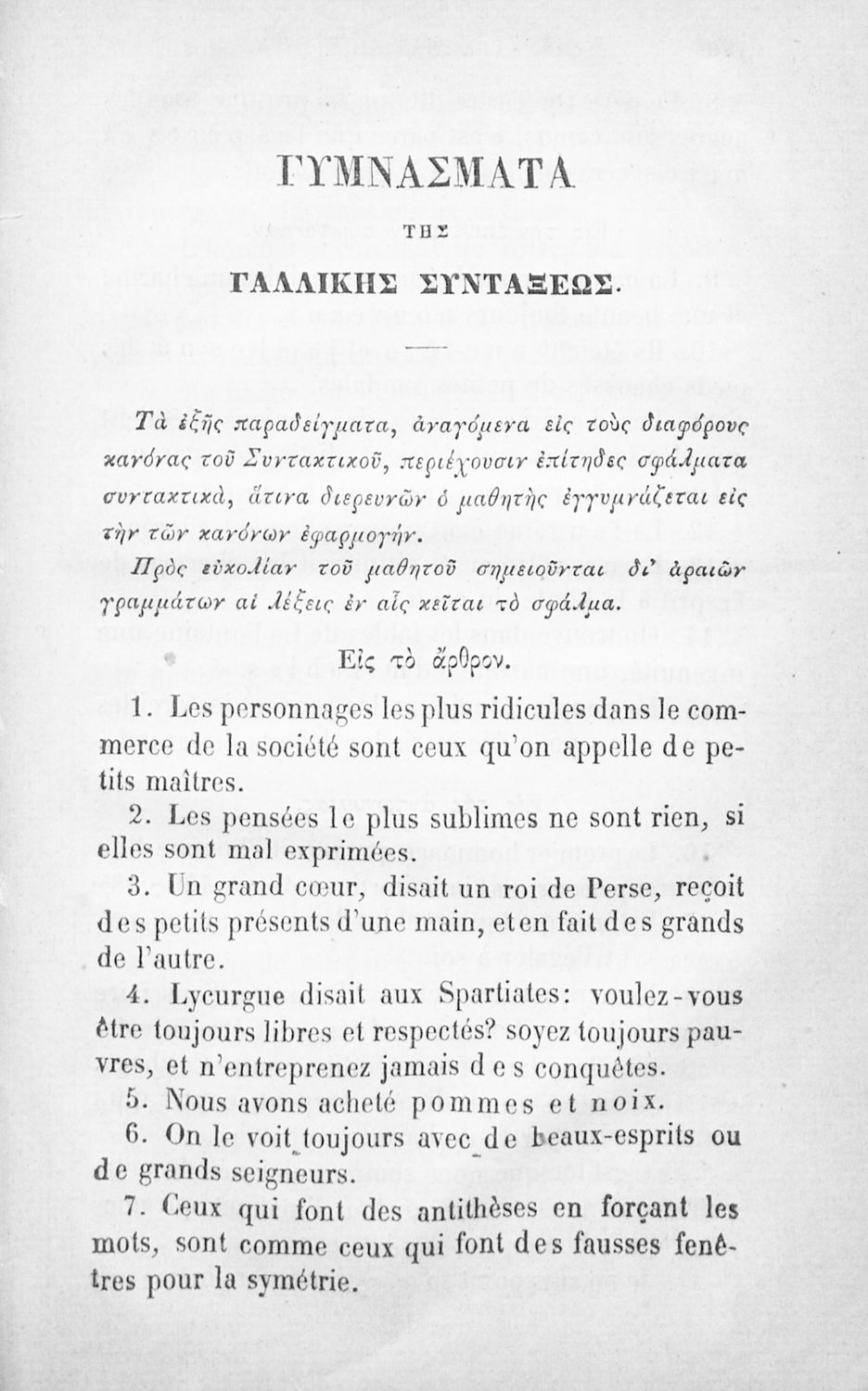Τίτλος: Γραμματική της γαλλικής γλώσσης, συνταχθείσα προς χρήσιν των Γυμνασίων και σχολείων της Ελλάδος
