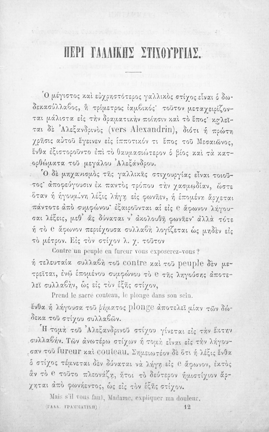 Γραμματική της γαλλικής γλώσσης, συνταχθείσα προς χρήσιν των Γυμνασίων και σχολείων της Ελλάδος