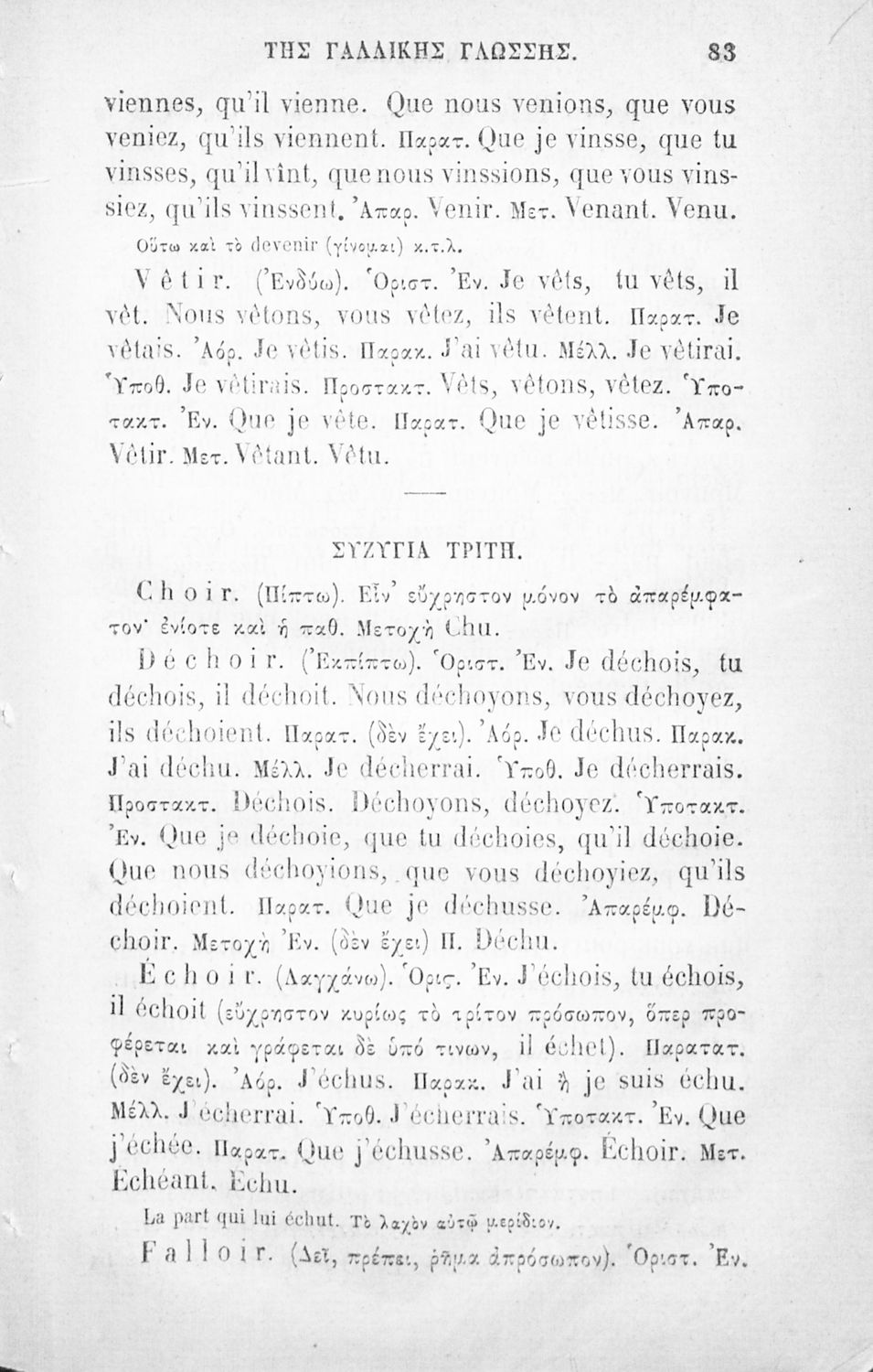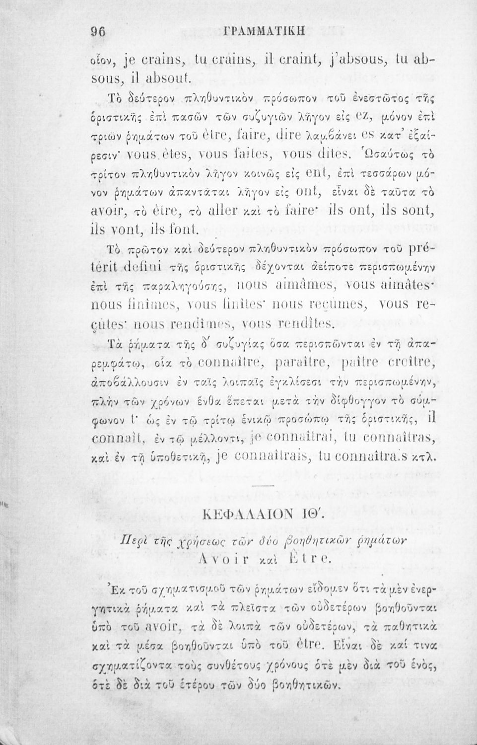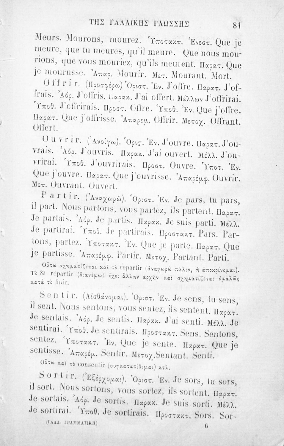 Κωδικός αναγνώρισης: 02-02894 Τίτλος: Γραμματική της γαλλικής γλώσσης, συνταχθείσα προς χρήσιν των Γυμνασίων και σχολείων της Ελλάδος Συγγραφέας: Ιωάννης Δ. Καρασούτσας Μέγεθος και υπόστρωμα: Σχολικό εγχειρίδιο, μαλακό εξώφυλλο, 184 σελίδες. |