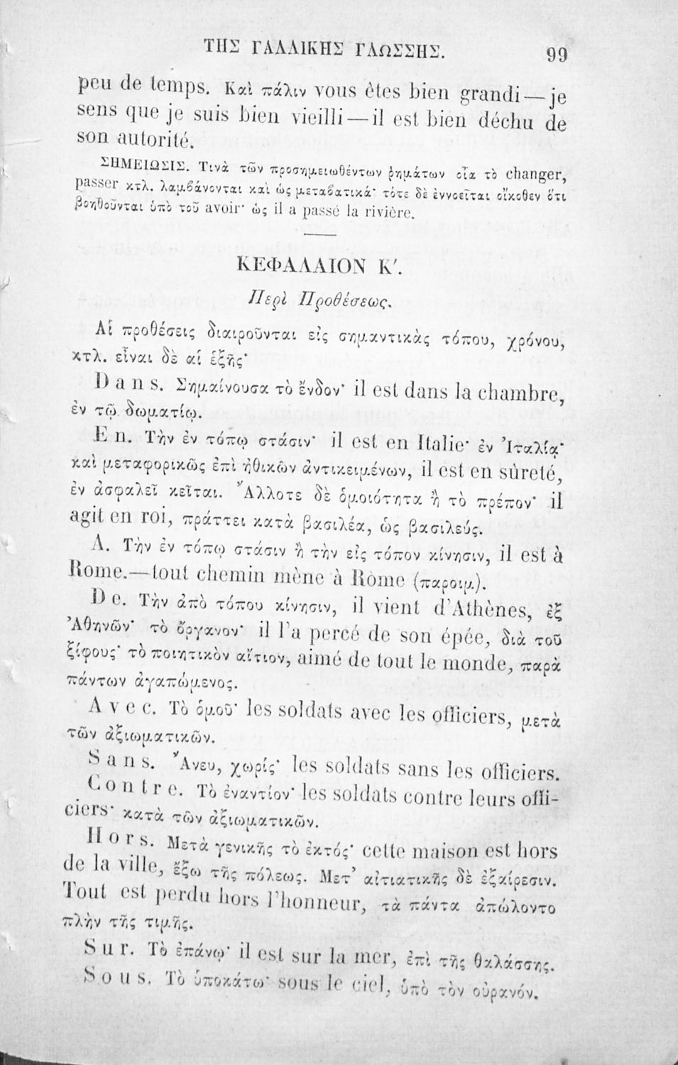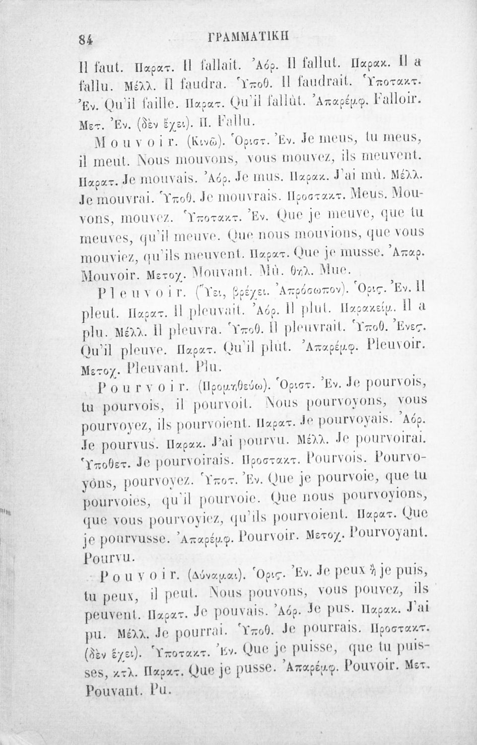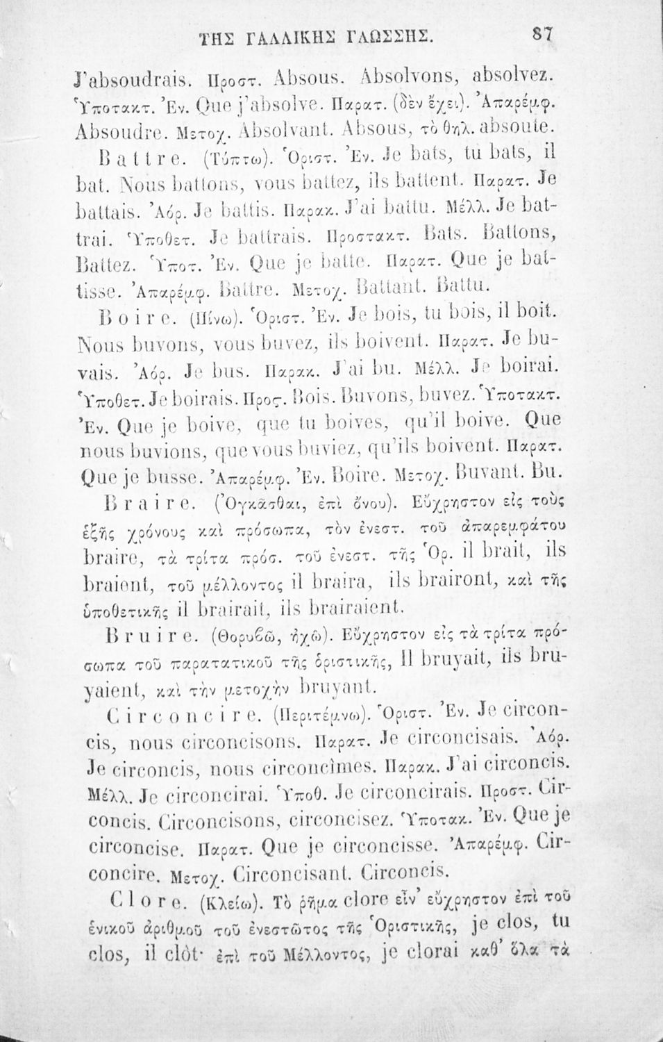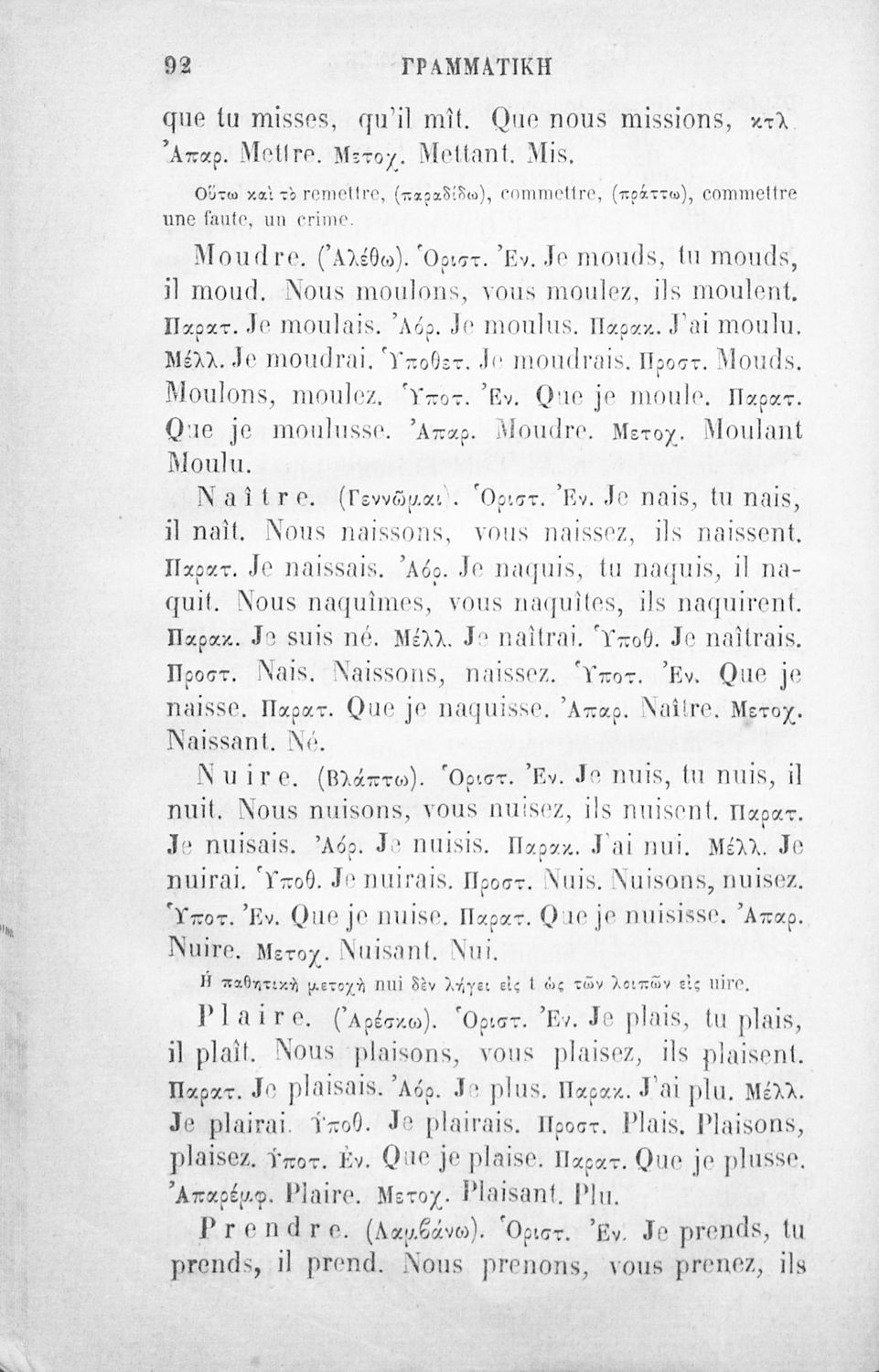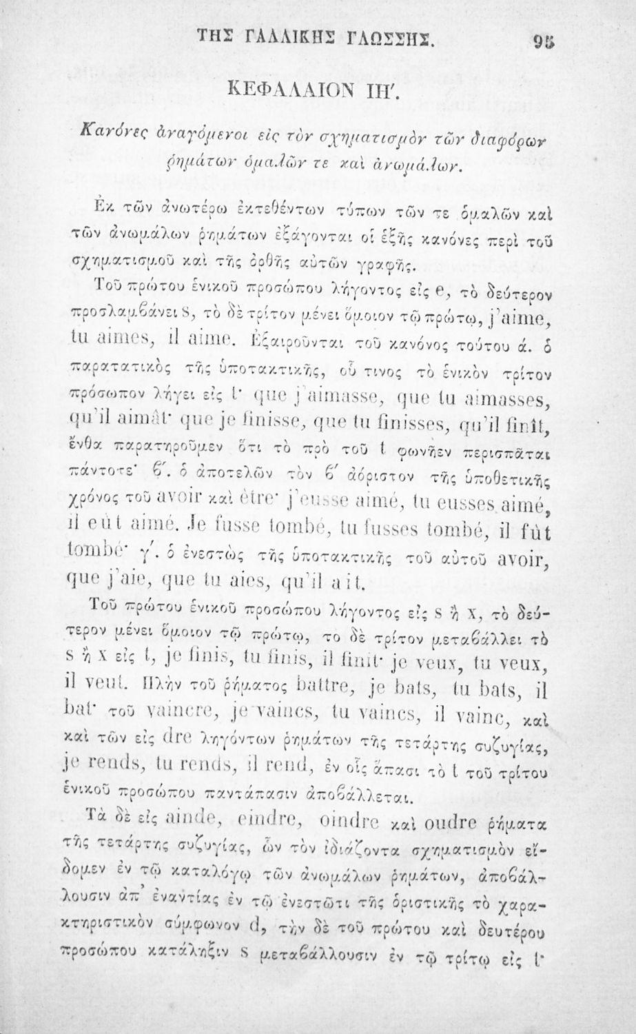 Βαθμίδα εκπαίδευσης: Δευτεροβάθμια Τάξη: Γυμνάσιο Μάθημα: Γαλλικά Γλώσσα: Καθαρεύουσα Παρουσίαση περιεχομένου: Σχολικό εγχειρίδιο Γαλλικών Γυμνασίου που περιέχει τους κανόνες γραμματικής και συντακτικού. |