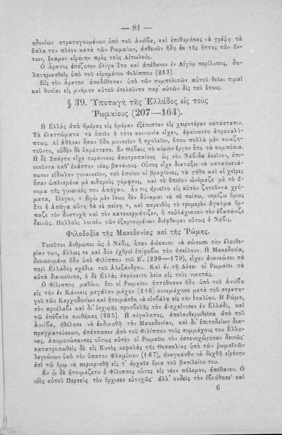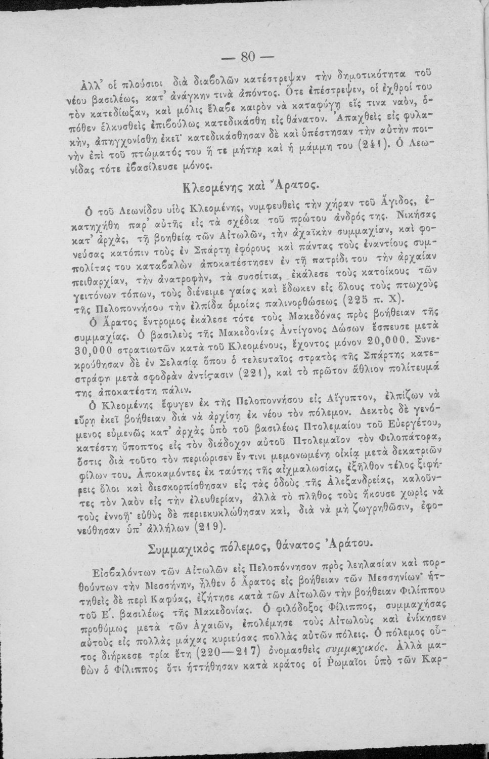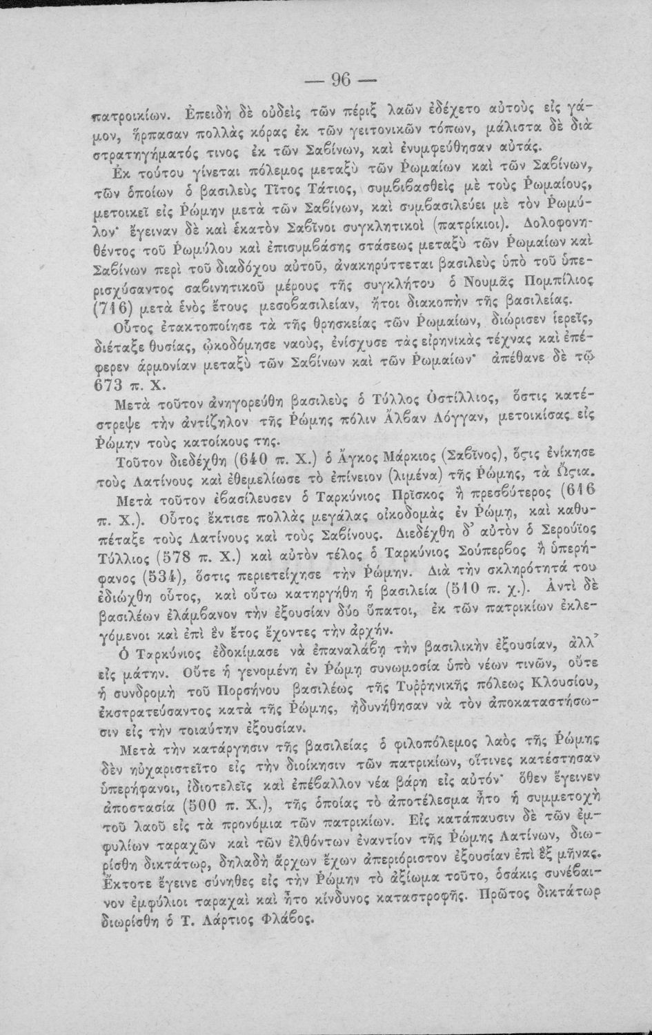 Βαθμίδα εκπαίδευσης: Δευτεροβάθμια Τάξη: Ελληνικό Σχολείο Μάθημα: Ιστορία Γλώσσα: Καθαρεύουσα Παρουσίαση περιεχομένου: Σχολικό εγχειρίδιο Ιστορίας για τα Ελληνικά Σχολεία που περιλαμβάνει συνοπτικά την ελληνική και την ευρωπαϊκή ιστορία. Αναφέρεται στους Περσικούς Πολέμους, τον Πελοποννησιακό, την άνοδο των Μακεδόνων βασιλιάδων και τις ελληνικές αποικίες. Συνεχίζει με την άνοδο της Ρώμης και την αυτοκρατορία. Αναφέρεται στα ευρωπαϊκά ιστορικά γεγονότα την αναγέννηση, τη θρησκευτική μεταρρύθμιση, τη Γαλλική Επανάσταση και τους Ναπολεόντειους Πολέμους. |