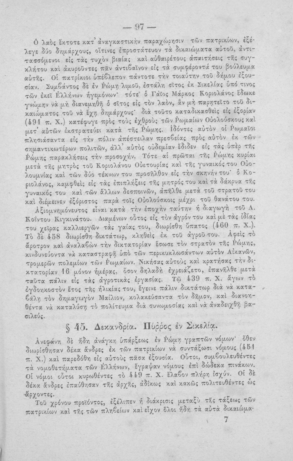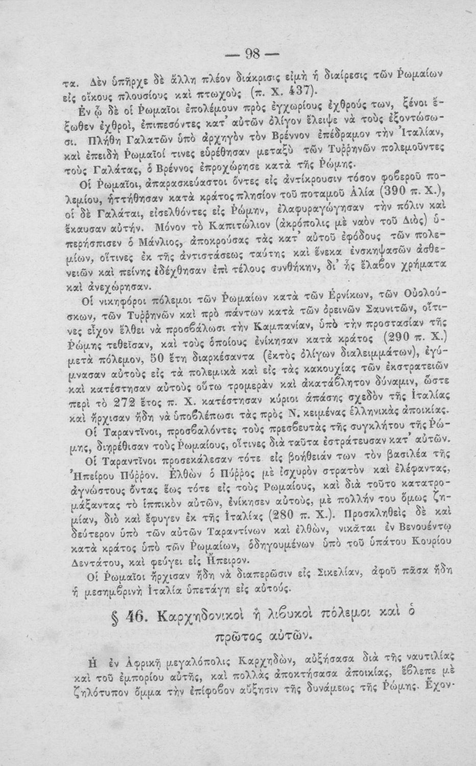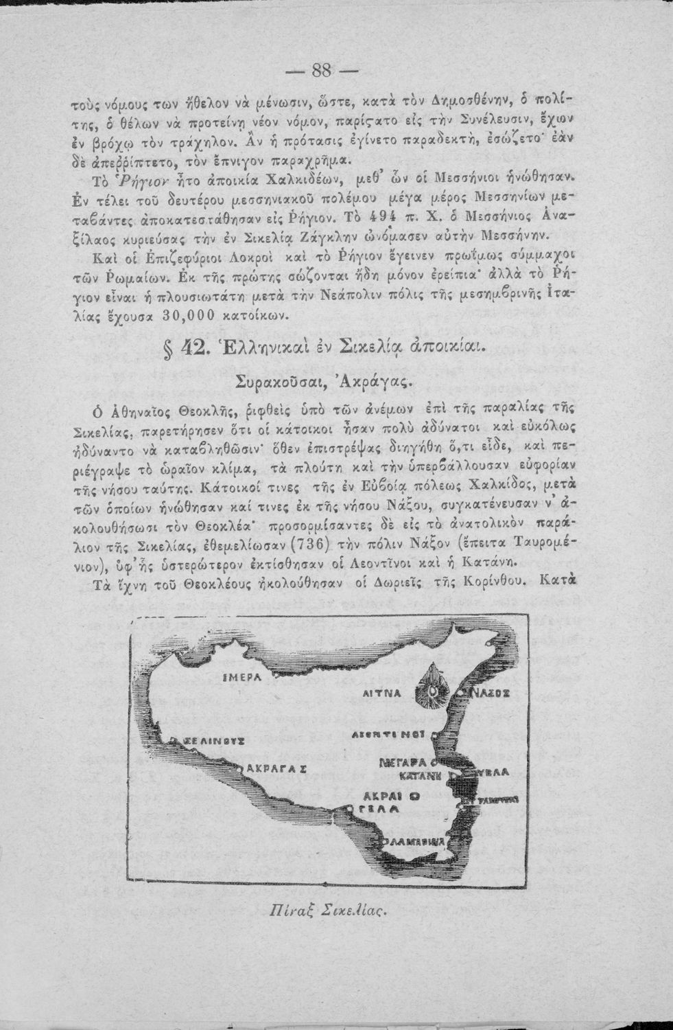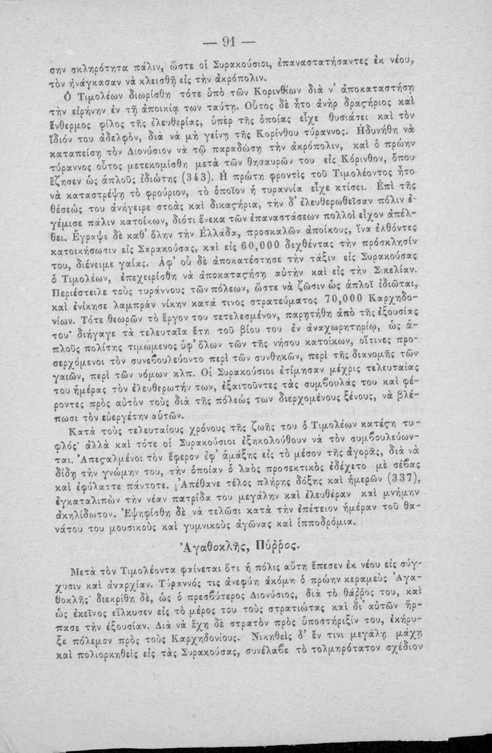 Βαθμίδα εκπαίδευσης: Δευτεροβάθμια Τάξη: Ελληνικό Σχολείο Μάθημα: Ιστορία Γλώσσα: Καθαρεύουσα Παρουσίαση περιεχομένου: Σχολικό εγχειρίδιο Ιστορίας για τα Ελληνικά Σχολεία που περιλαμβάνει συνοπτικά την ελληνική και την ευρωπαϊκή ιστορία. Αναφέρεται στους Περσικούς Πολέμους, τον Πελοποννησιακό, την άνοδο των Μακεδόνων βασιλιάδων και τις ελληνικές αποικίες. Συνεχίζει με την άνοδο της Ρώμης και την αυτοκρατορία. Αναφέρεται στα ευρωπαϊκά ιστορικά γεγονότα την αναγέννηση, τη θρησκευτική μεταρρύθμιση, τη Γαλλική Επανάσταση και τους Ναπολεόντειους Πολέμους. |