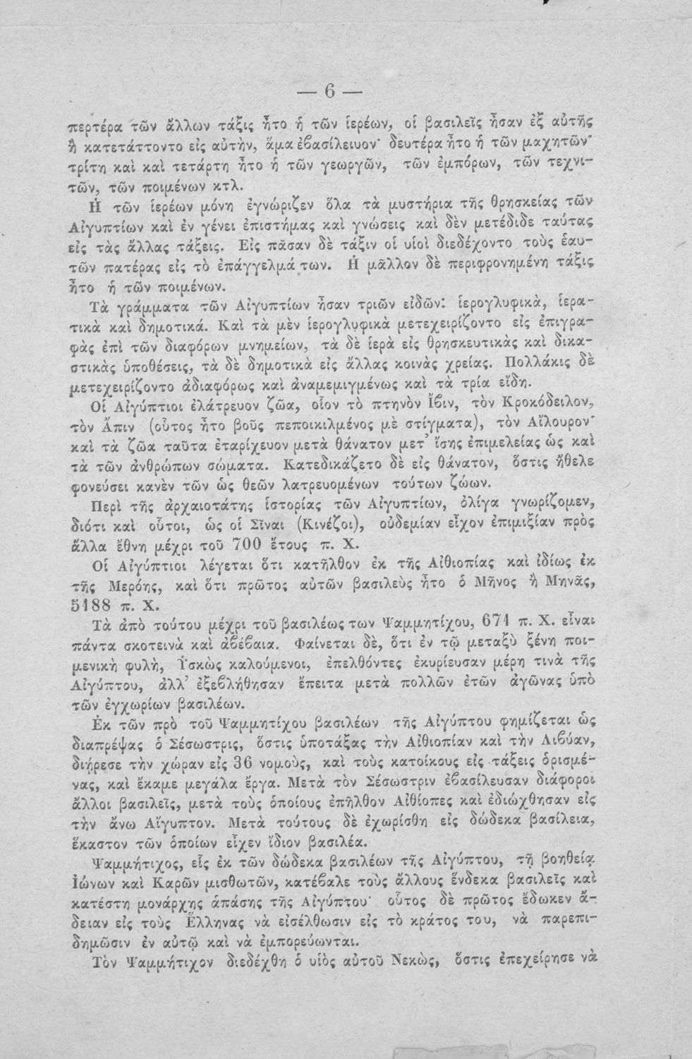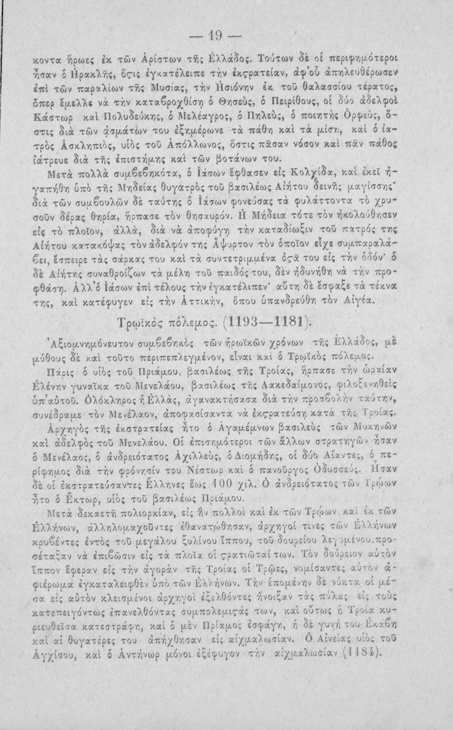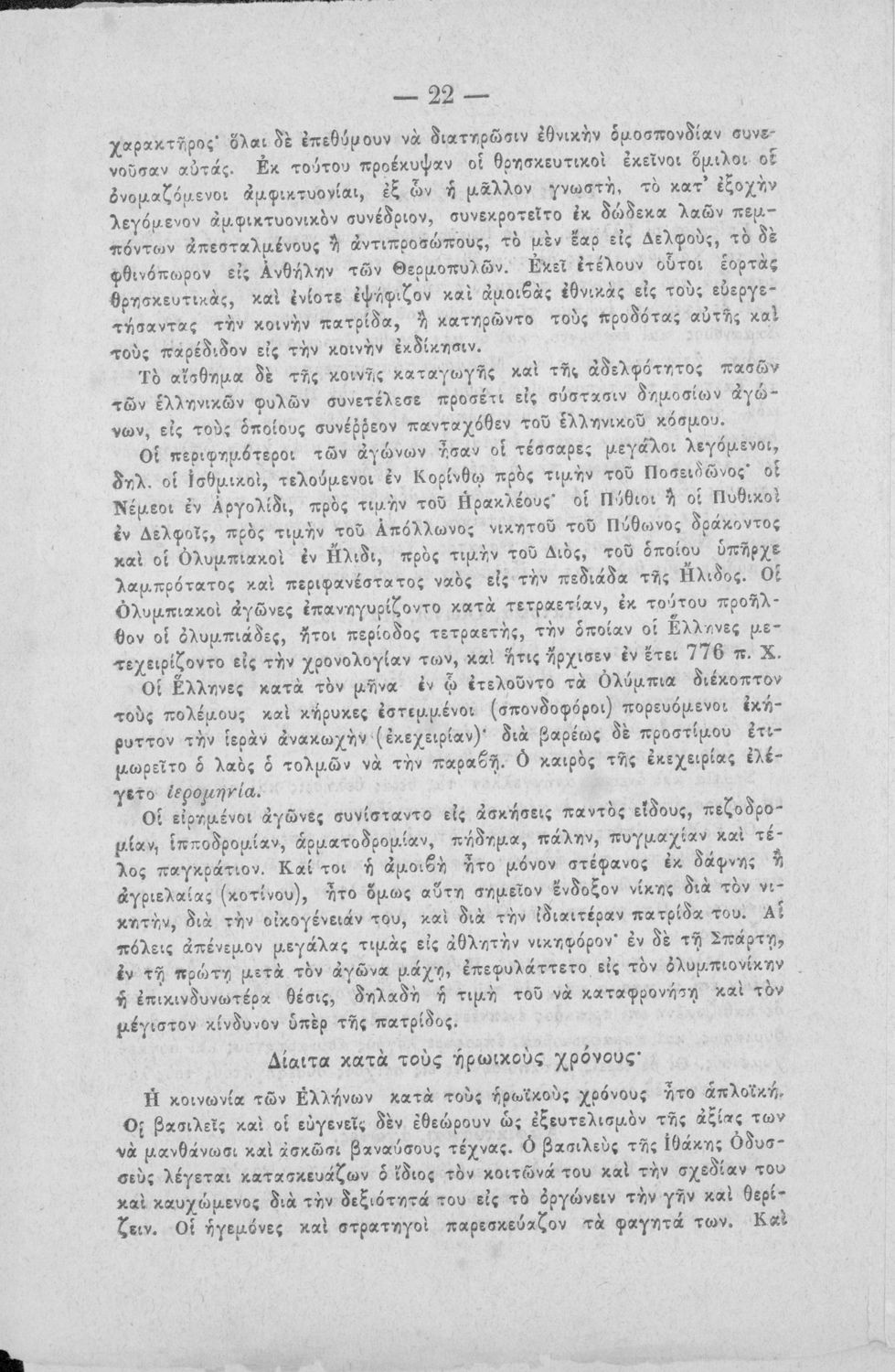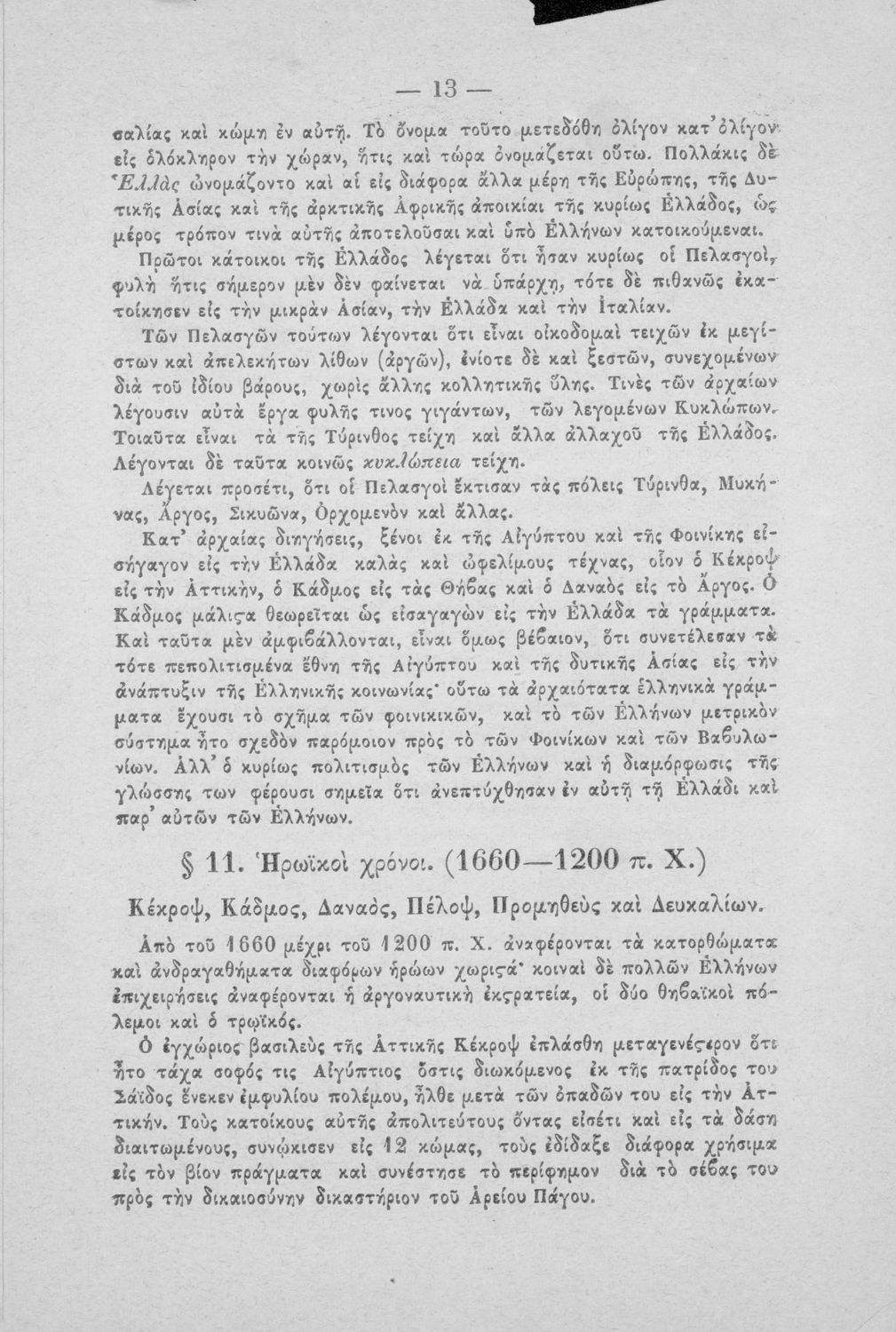 Βαθμίδα εκπαίδευσης: Δευτεροβάθμια Τάξη: Ελληνικό Σχολείο Μάθημα: Ιστορία Γλώσσα: Καθαρεύουσα Παρουσίαση περιεχομένου: Σχολικό εγχειρίδιο Ιστορίας για τα Ελληνικά Σχολεία που περιλαμβάνει συνοπτικά την ελληνική και την ευρωπαϊκή ιστορία. Αναφέρεται στους Περσικούς Πολέμους, τον Πελοποννησιακό, την άνοδο των Μακεδόνων βασιλιάδων και τις ελληνικές αποικίες. Συνεχίζει με την άνοδο της Ρώμης και την αυτοκρατορία. Αναφέρεται στα ευρωπαϊκά ιστορικά γεγονότα την αναγέννηση, τη θρησκευτική μεταρρύθμιση, τη Γαλλική Επανάσταση και τους Ναπολεόντειους Πολέμους. |