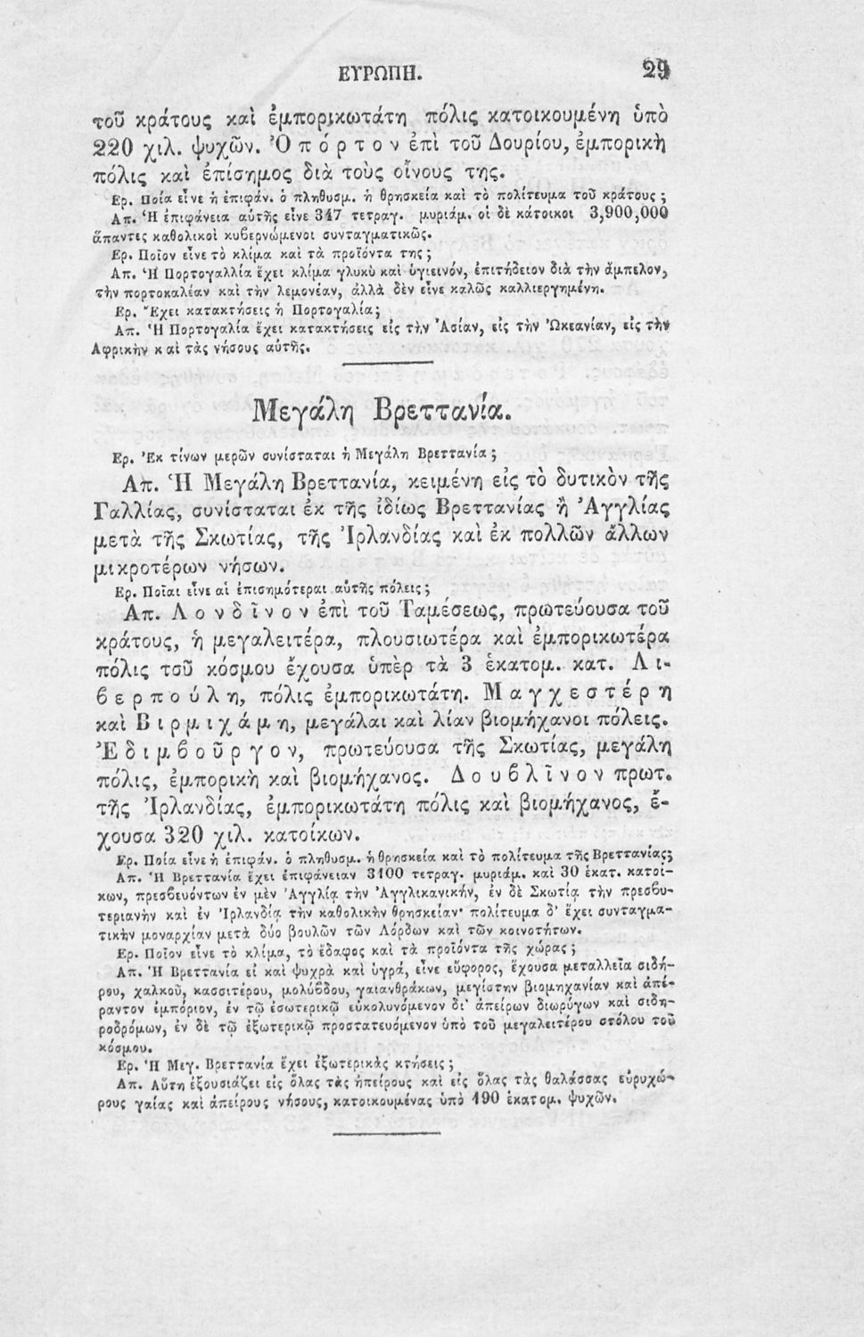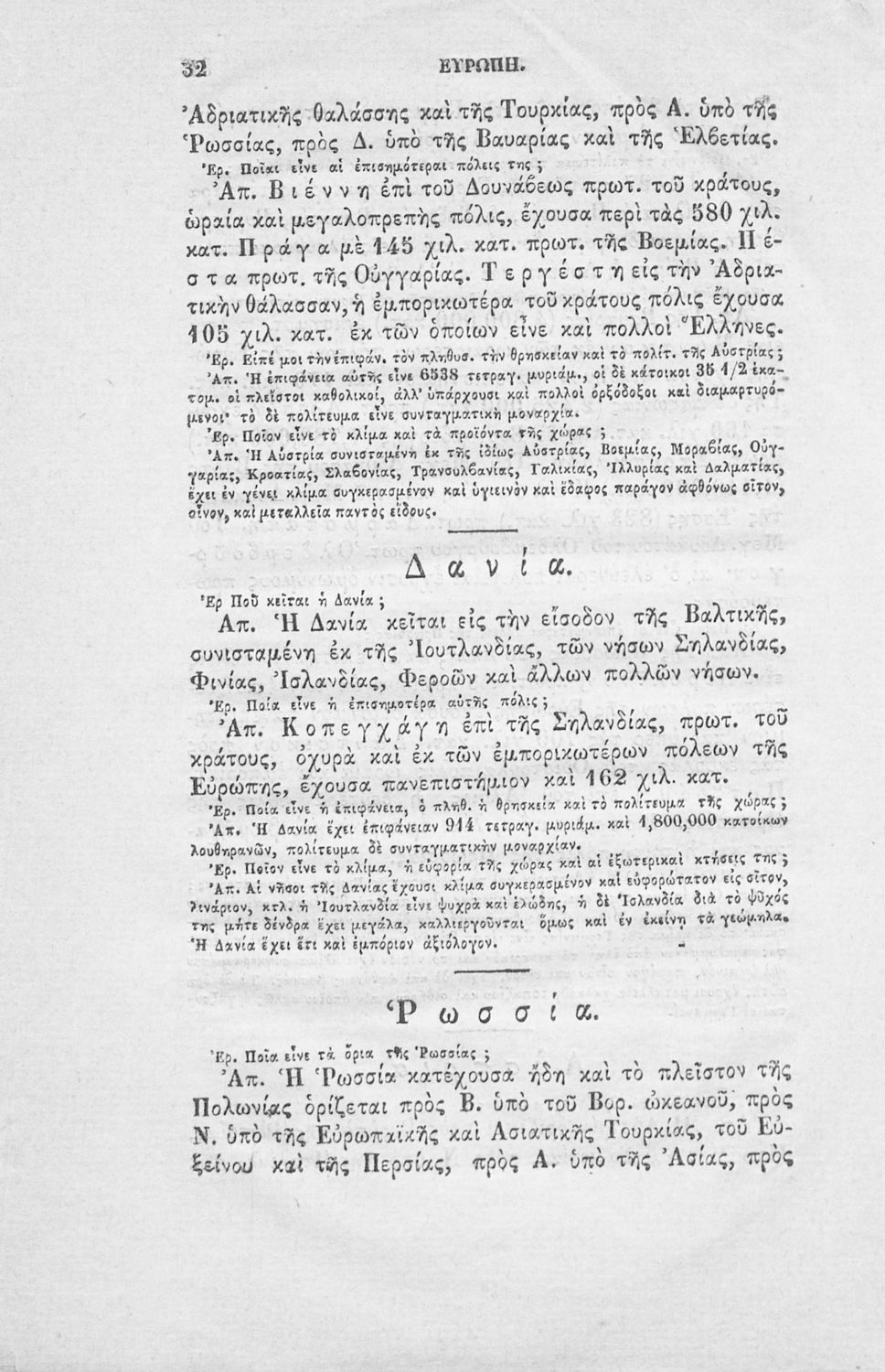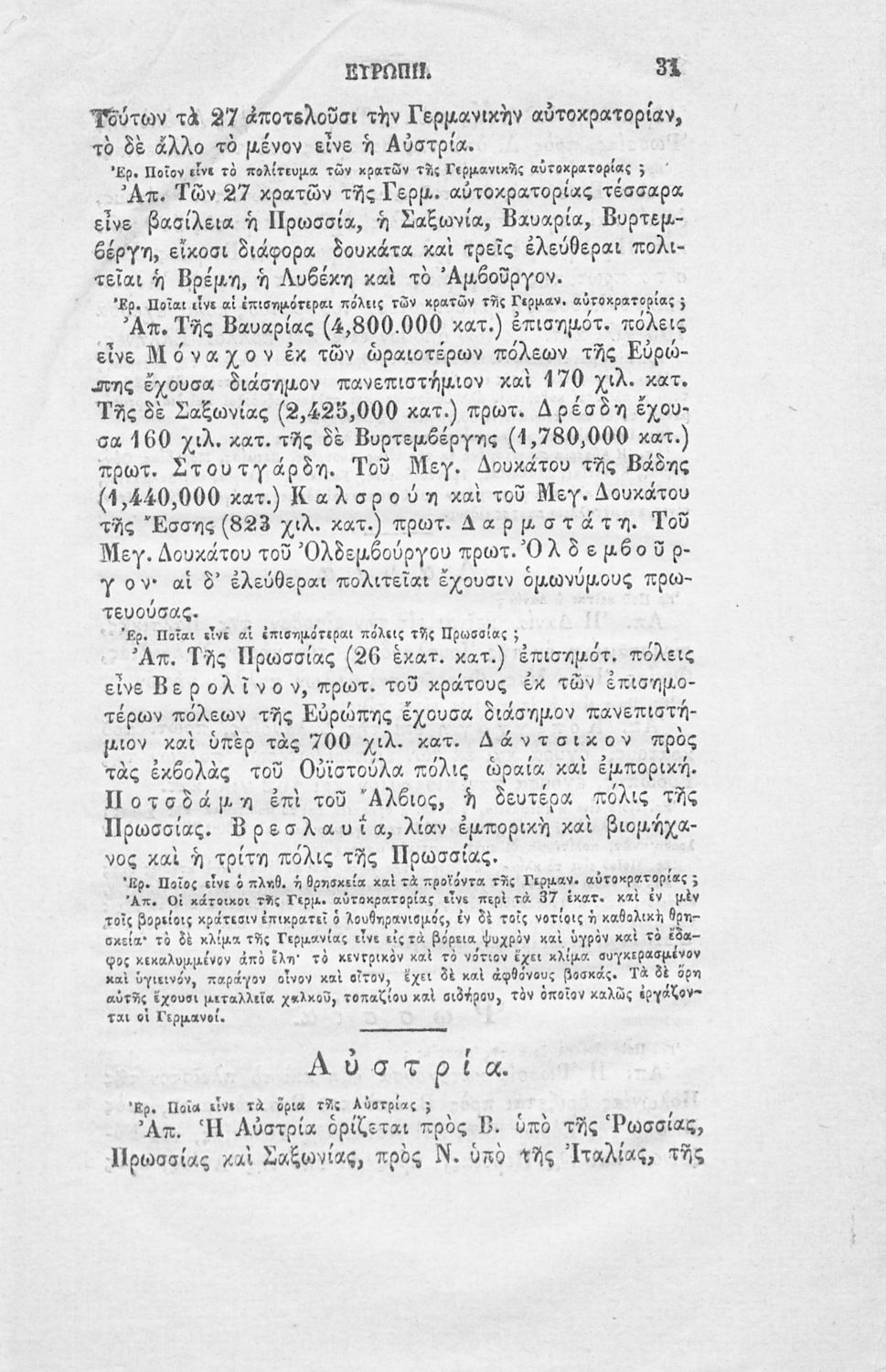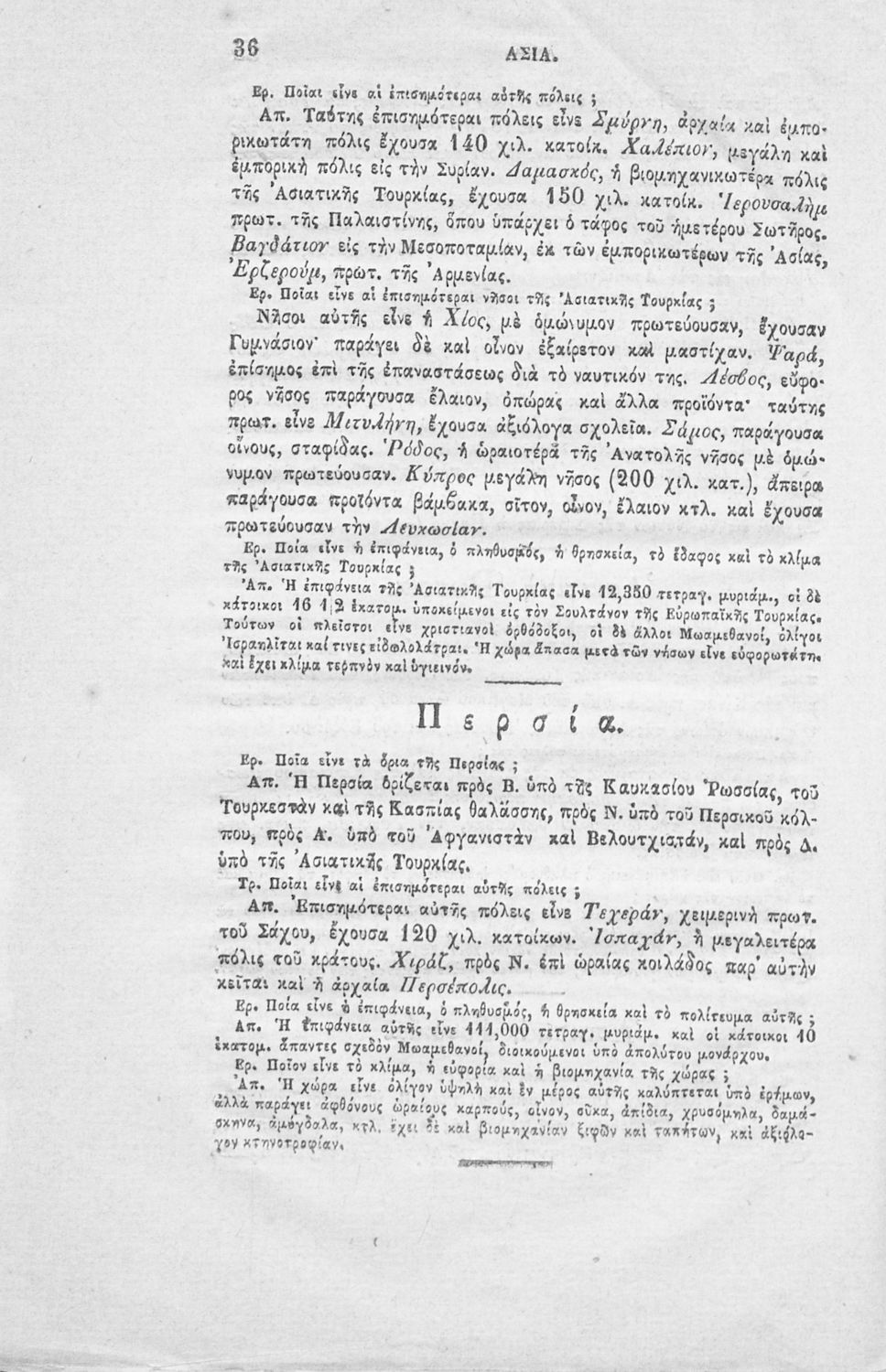 Σχολικό εγχειρίδιο Γεωγραφίας για τα Ελληνικά Σχολεία που περιλαμβάνει εισαγωγή στις βασικές έννοιες και ορισμούς της επιστήμης, και στοιχεία μαθηματικής, φυσικής και πολιτικής γεωγραφίας των πέντε ηπείρων.