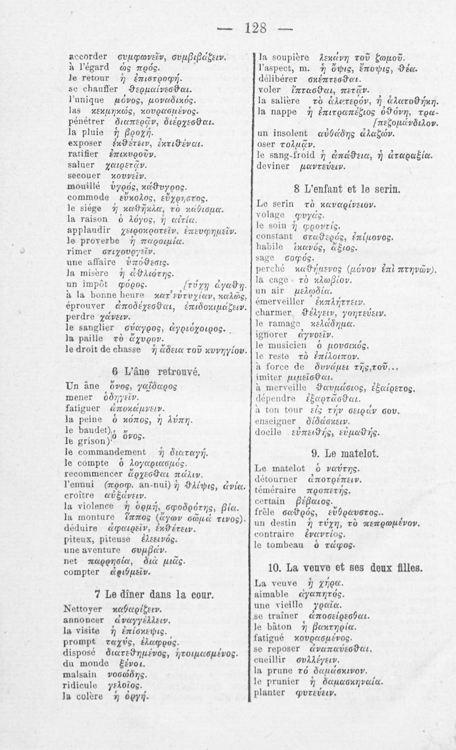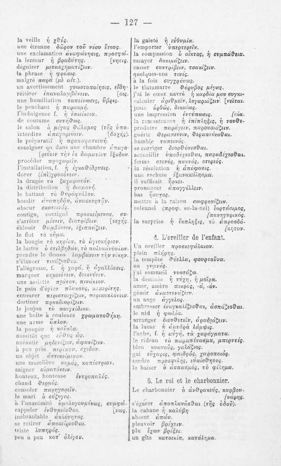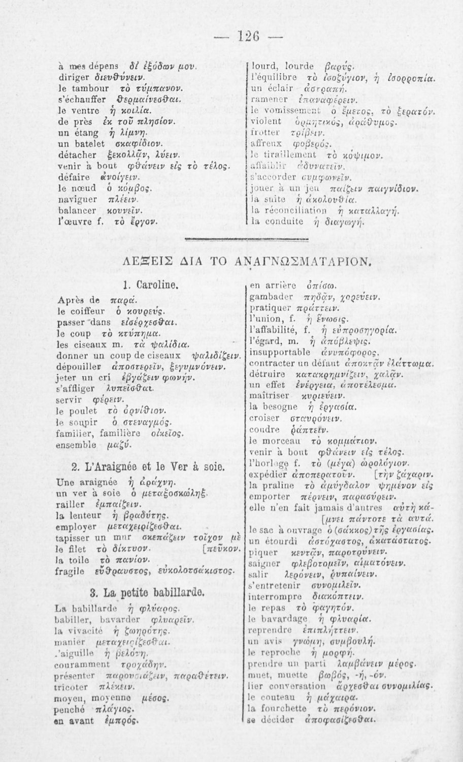 Κωδικός αναγνώρισης: 02-02904 Τίτλος: Στοιχειώδης μέθοδος της γαλλικής γλώσσης διά τα σχολεία, Μέρος Β΄ Κλίσις των ρημάτων Συγγραφέας: Charles Ploetz, Ιούλιος Αξενφέλδ (μτφρ.) Μέγεθος και υπόστρωμα: Σχολικό εγχειρίδιο, σκληρό εξώφυλλο, 152 σελίδες. |