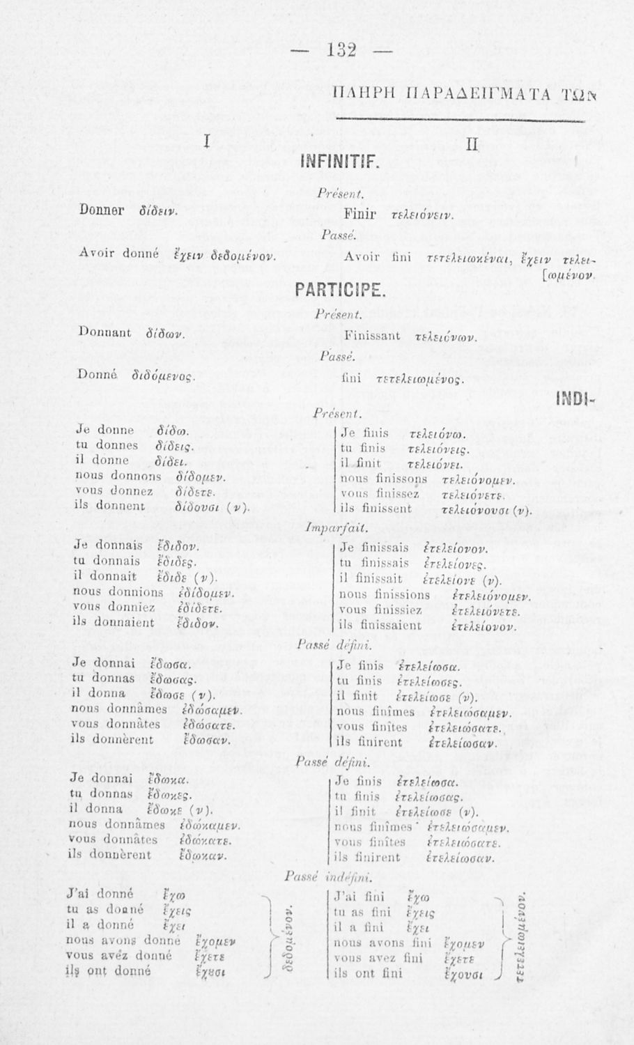 Σχολική εγχειρίδιο σχετικά με τη γαλλική γλώσσα και την κλίση των ρημάτων.