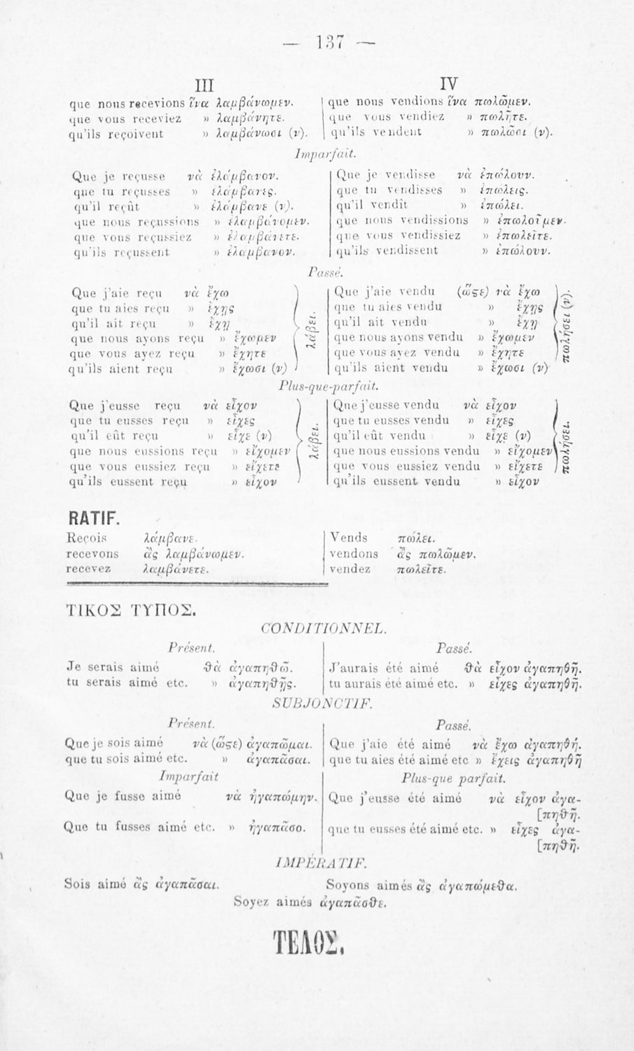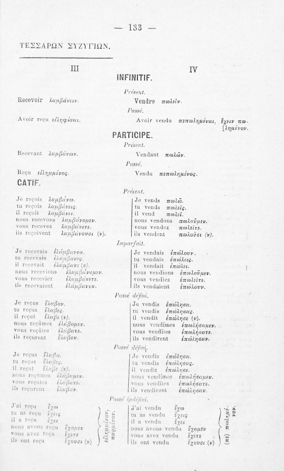 Τίτλος: Στοιχειώδης μέθοδος της γαλλικής γλώσσης διά τα σχολεία, Μέρος Β΄ Κλίσις των ρημάτων