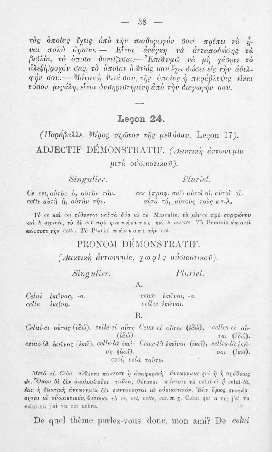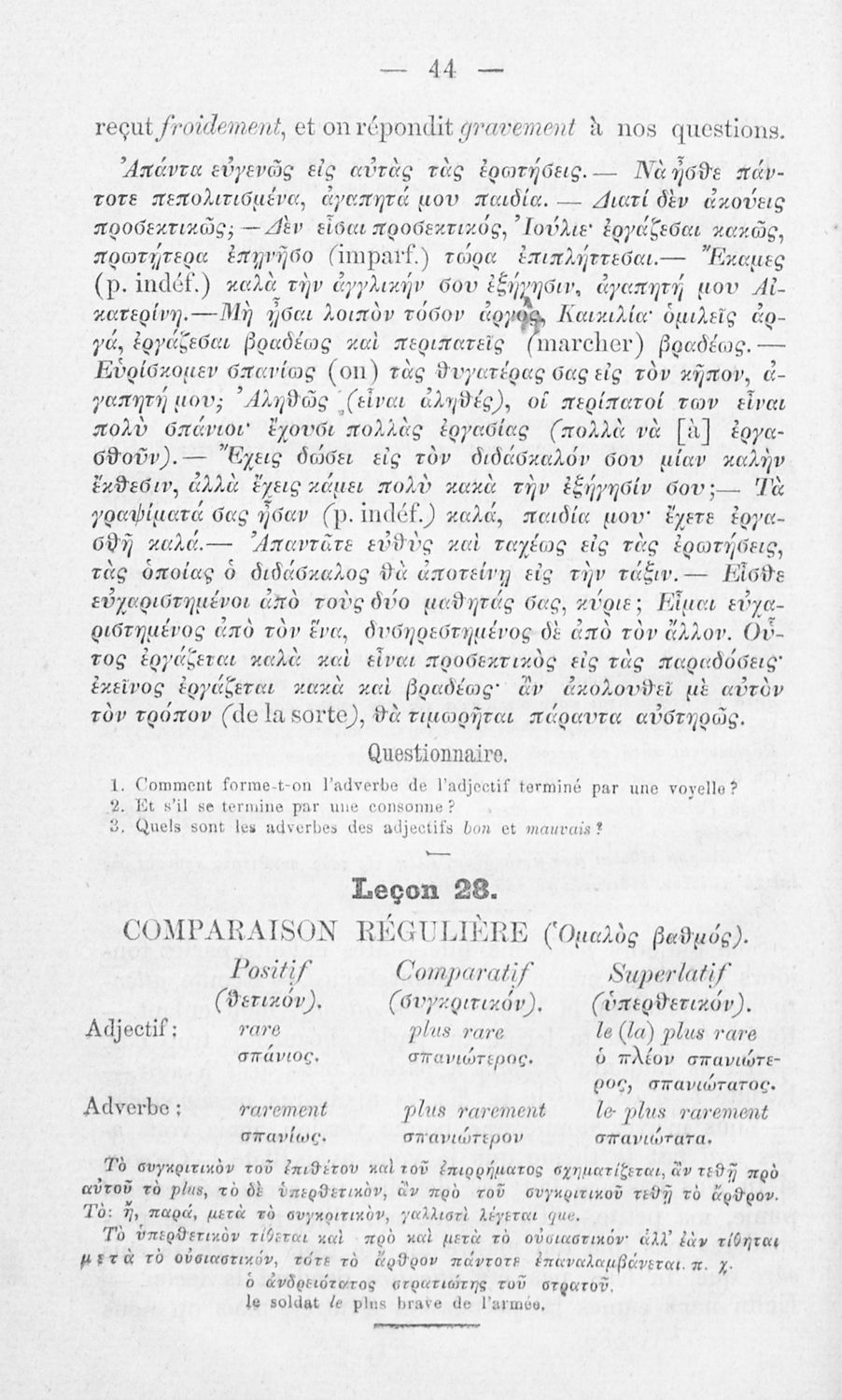 Σχολικό εγχειρίδιο Αρχαίων Ελληνικών για τα Ελληνικά Σχολεία, Παρθεναγωγεία και Γυμνάσια που περιέχει τους κανόνες γραμματικής και είναι χωρισμένο σε φθογγολογικό, τυπολογικό και ετυμολογικό μέρος.