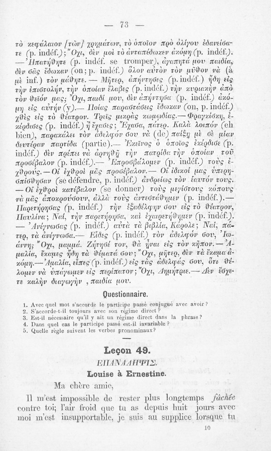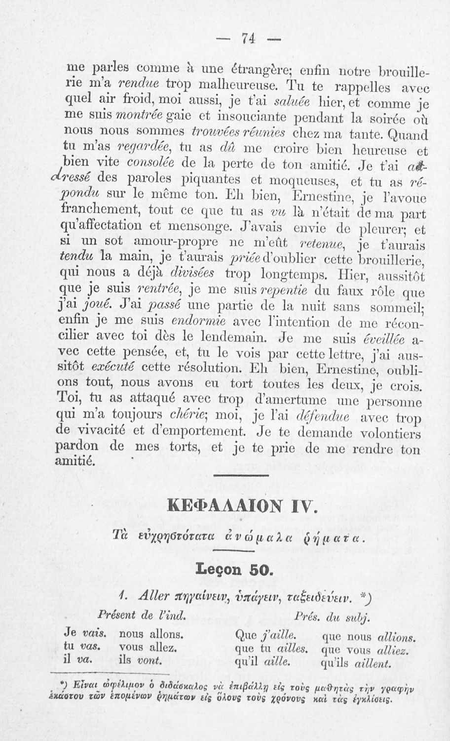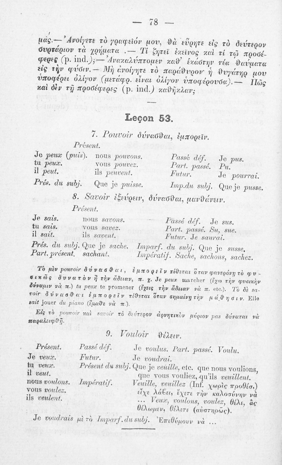 Κωδικός αναγνώρισης: 02-02904 Τίτλος: Στοιχειώδης μέθοδος της γαλλικής γλώσσης διά τα σχολεία, Μέρος Β΄ Κλίσις των ρημάτων Συγγραφέας: Charles Ploetz, Ιούλιος Αξενφέλδ (μτφρ.) Μέγεθος και υπόστρωμα: Σχολικό εγχειρίδιο, σκληρό εξώφυλλο, 152 σελίδες. |