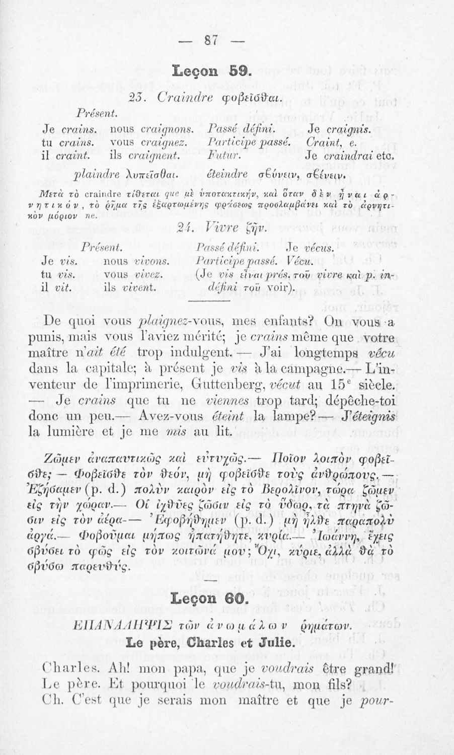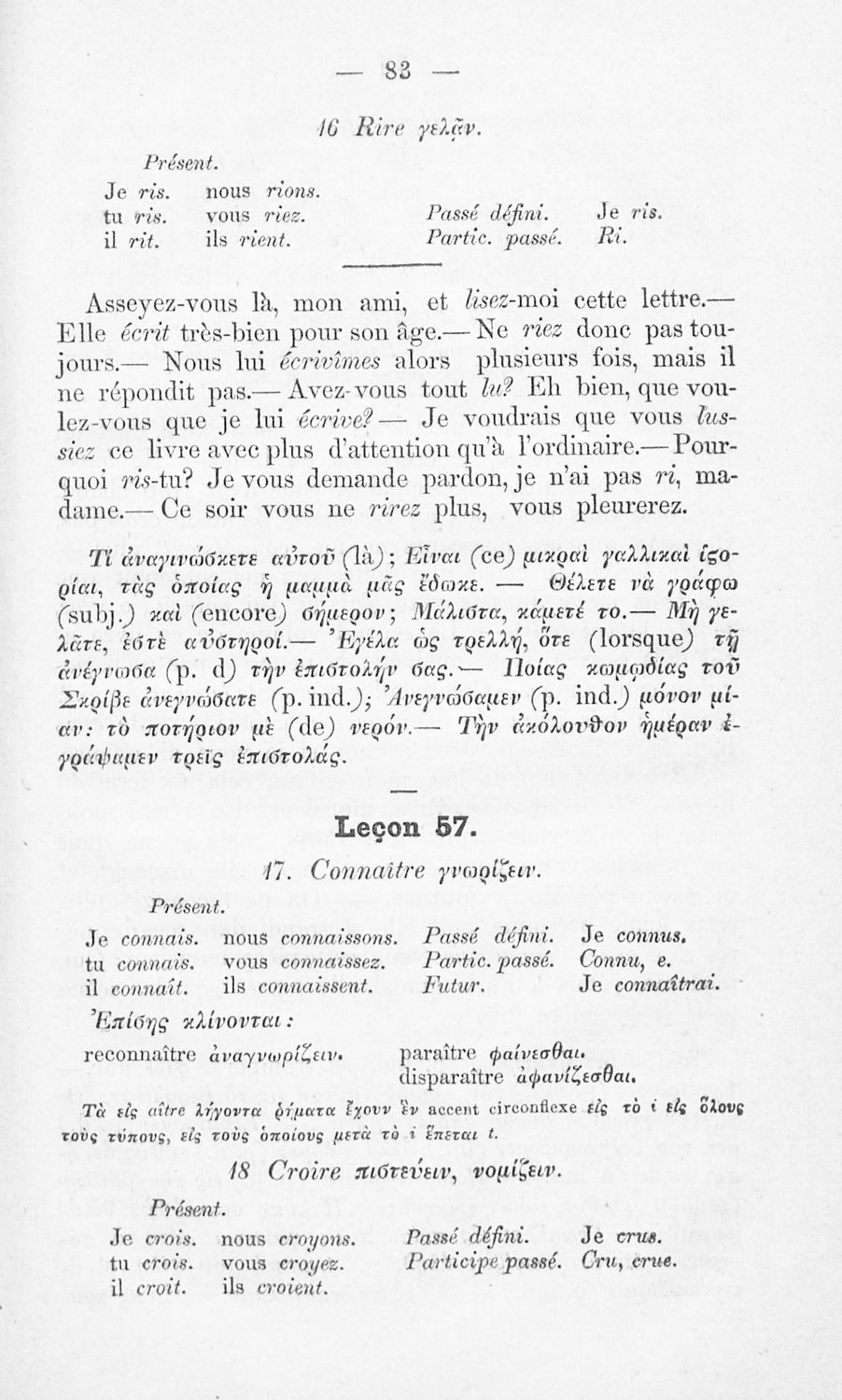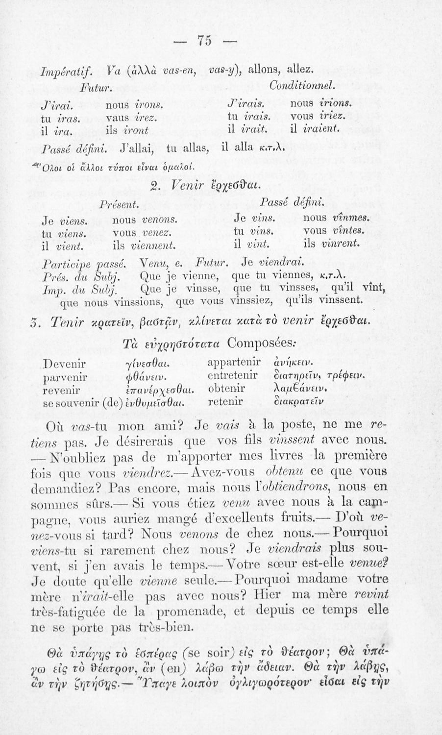 Σχολική εγχειρίδιο σχετικά με τη γαλλική γλώσσα και την κλίση των ρημάτων.