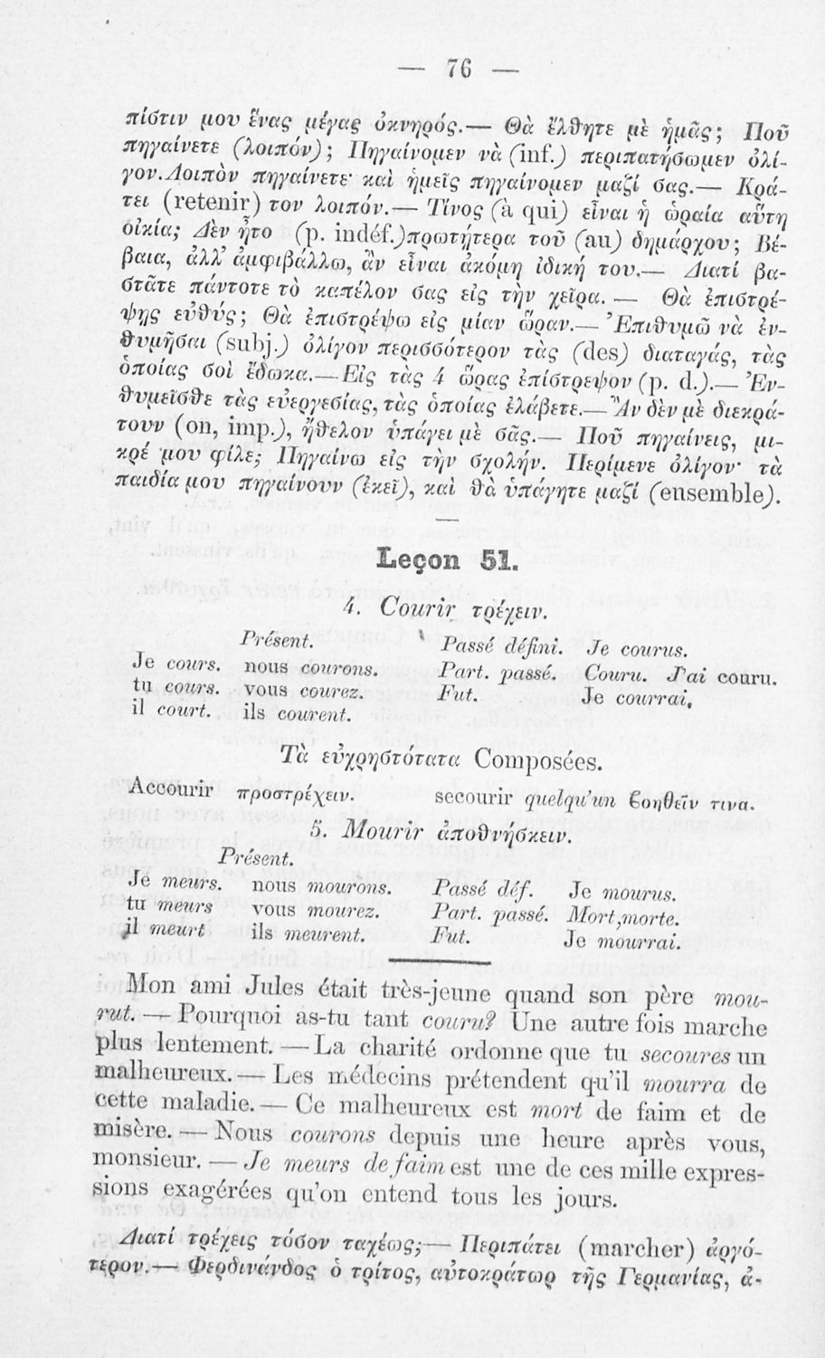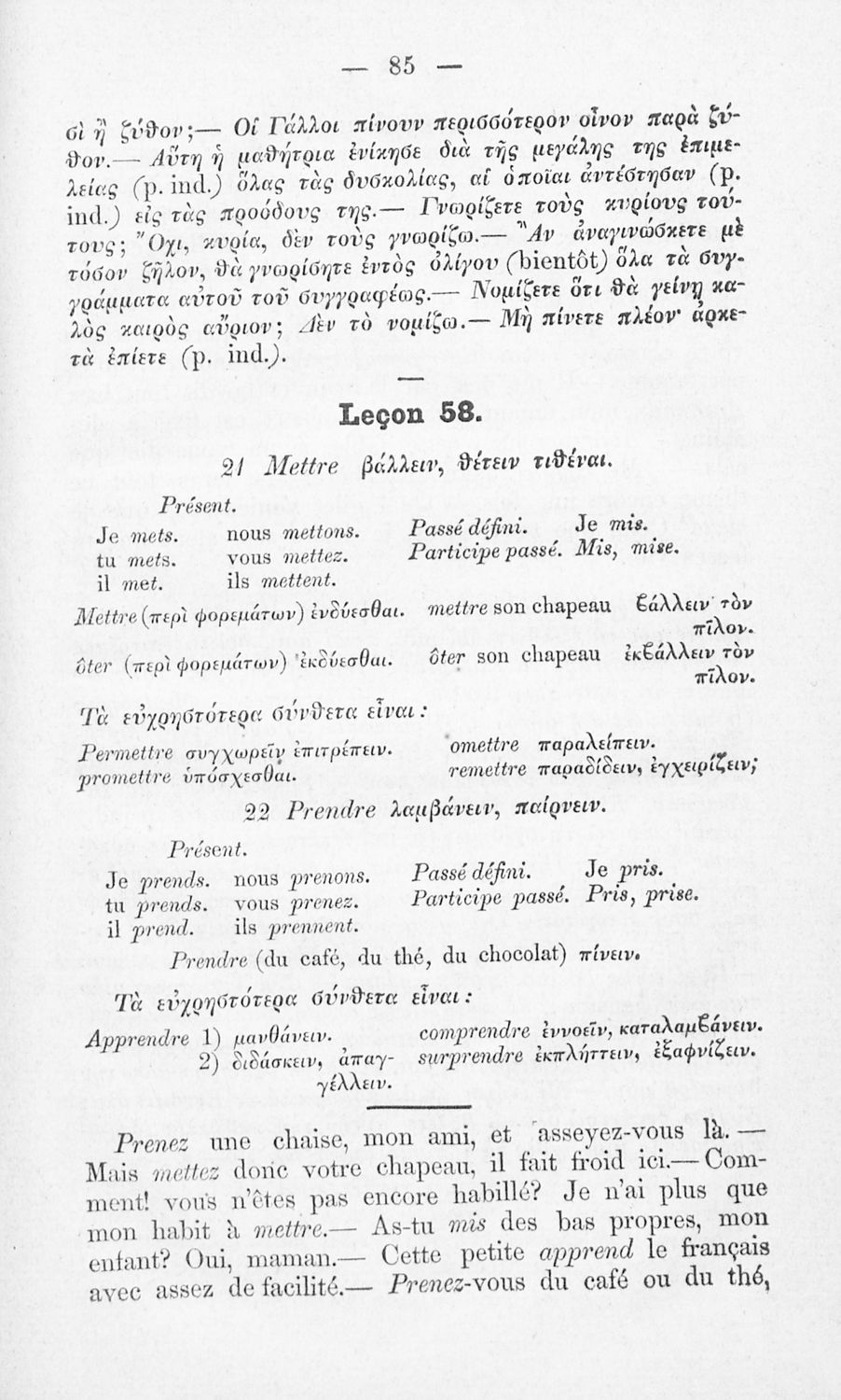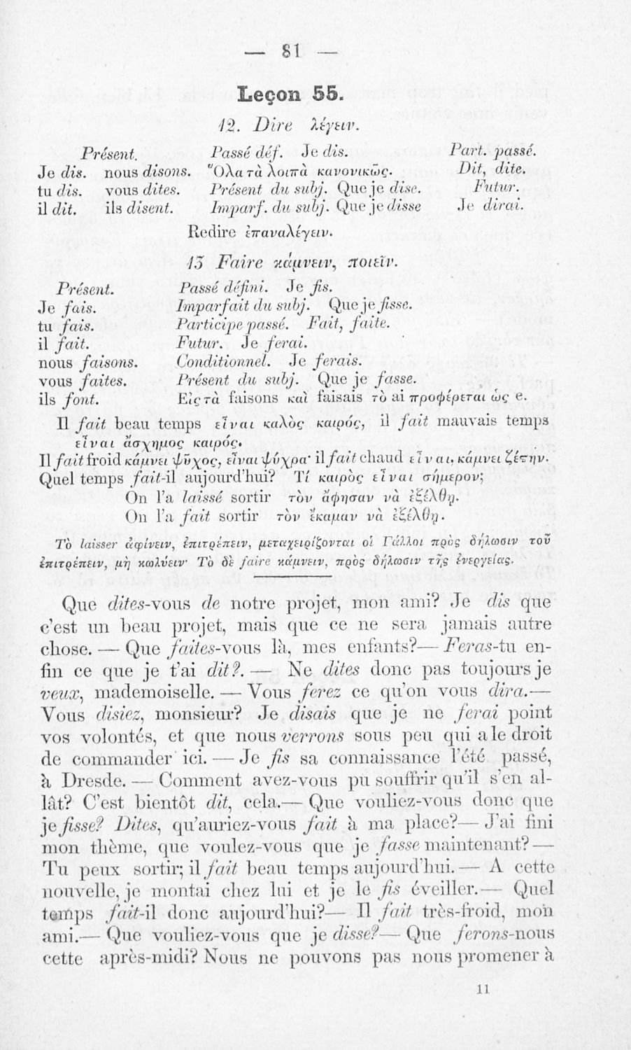 Σχολική εγχειρίδιο σχετικά με τη γαλλική γλώσσα και την κλίση των ρημάτων.