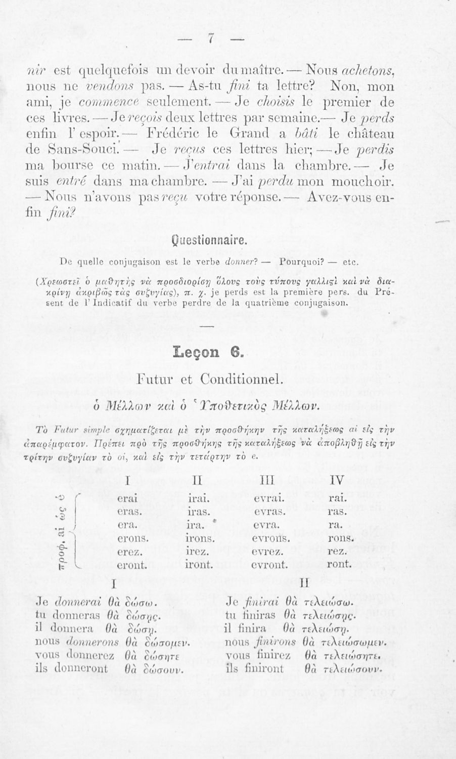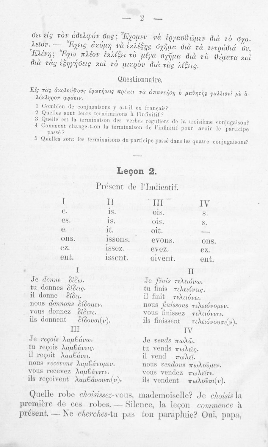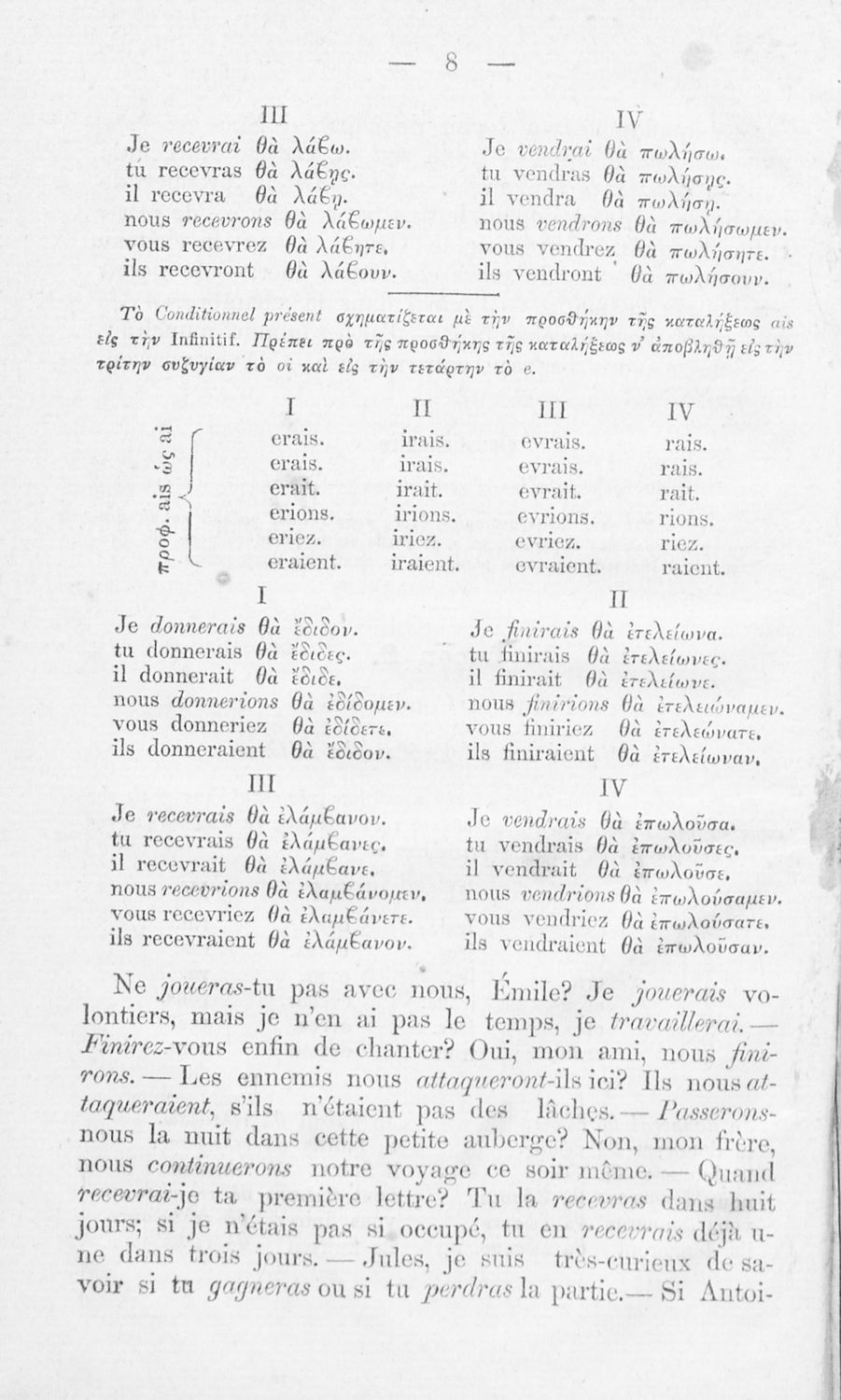 Σχολική εγχειρίδιο σχετικά με τη γαλλική γλώσσα και την κλίση των ρημάτων.