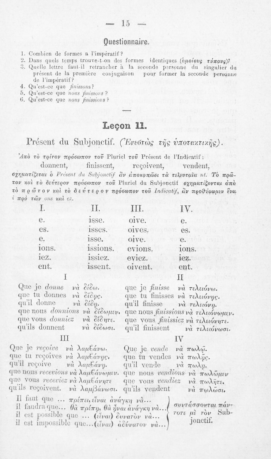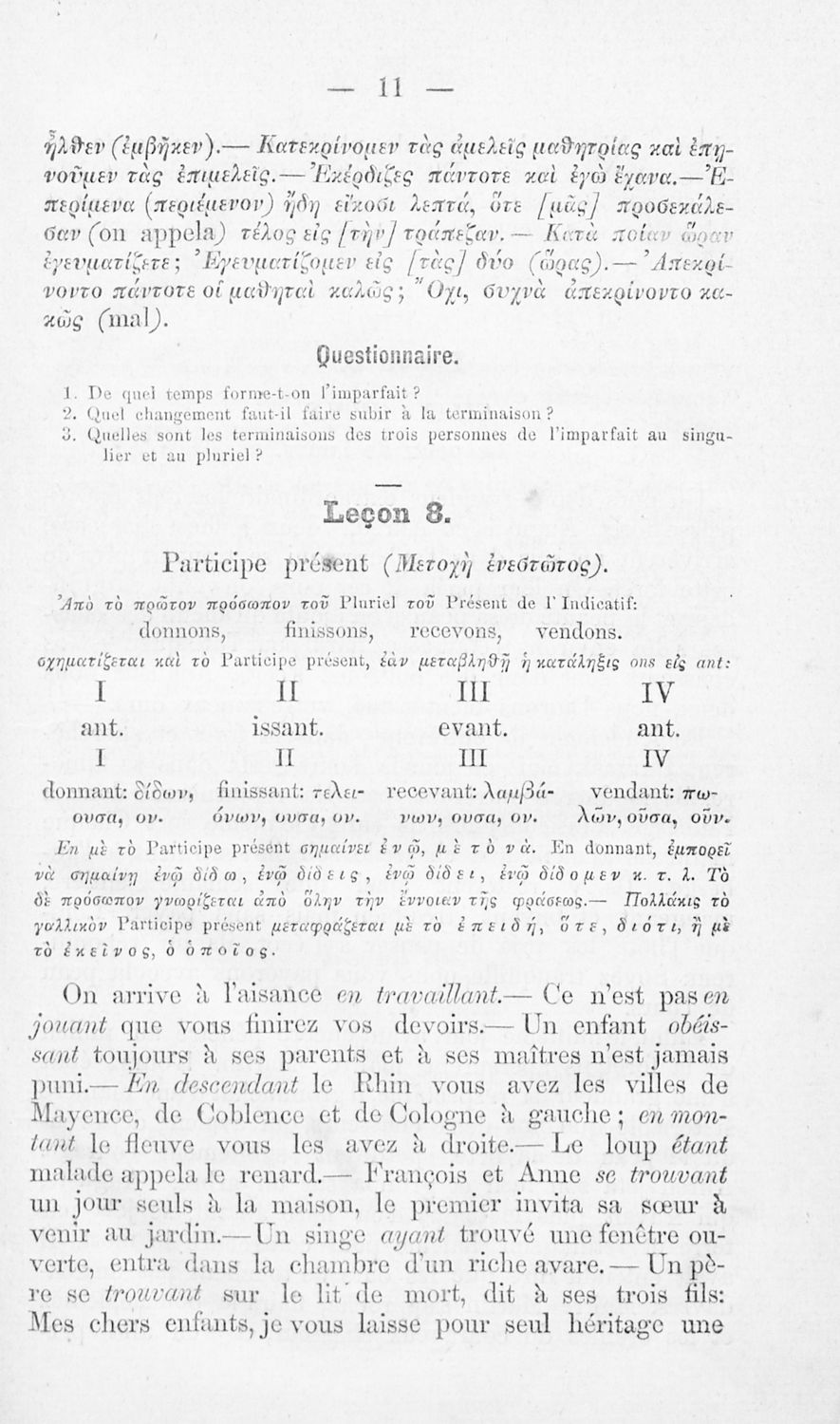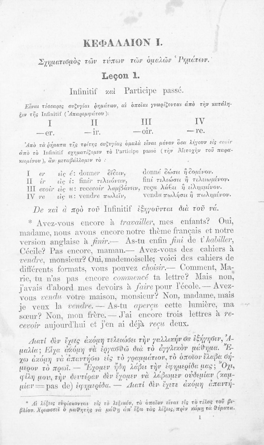 Σχολική εγχειρίδιο σχετικά με τη γαλλική γλώσσα και την κλίση των ρημάτων.