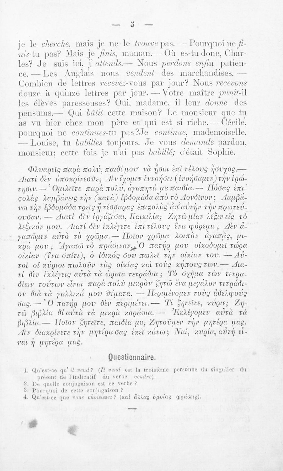 Κωδικός αναγνώρισης: 02-02904 Τίτλος: Στοιχειώδης μέθοδος της γαλλικής γλώσσης διά τα σχολεία, Μέρος Β΄ Κλίσις των ρημάτων Συγγραφέας: Charles Ploetz, Ιούλιος Αξενφέλδ (μτφρ.) Μέγεθος και υπόστρωμα: Σχολικό εγχειρίδιο, σκληρό εξώφυλλο, 152 σελίδες. |