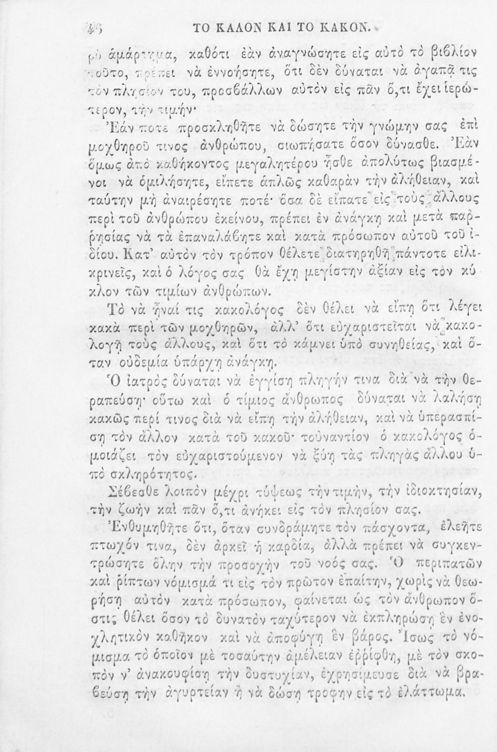 Τίτλος: Το καλόν και το κακόν βιβλίον δι΄ όλους σύγγραμμα νεώτατον προς χρήσιν των Δημοτικών Σχολείων και παντός φιλομαθούς