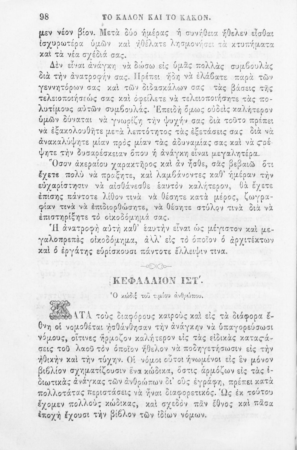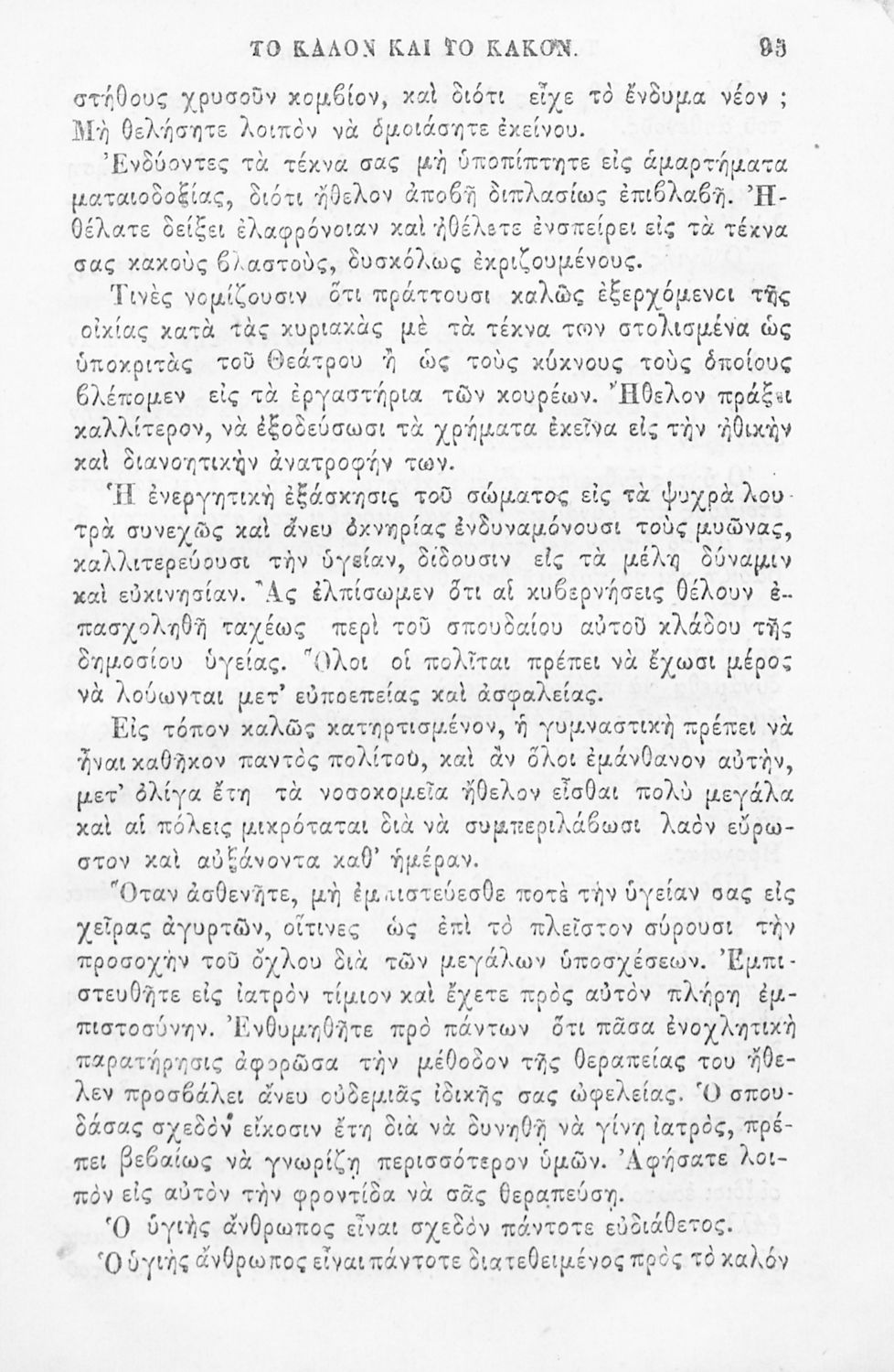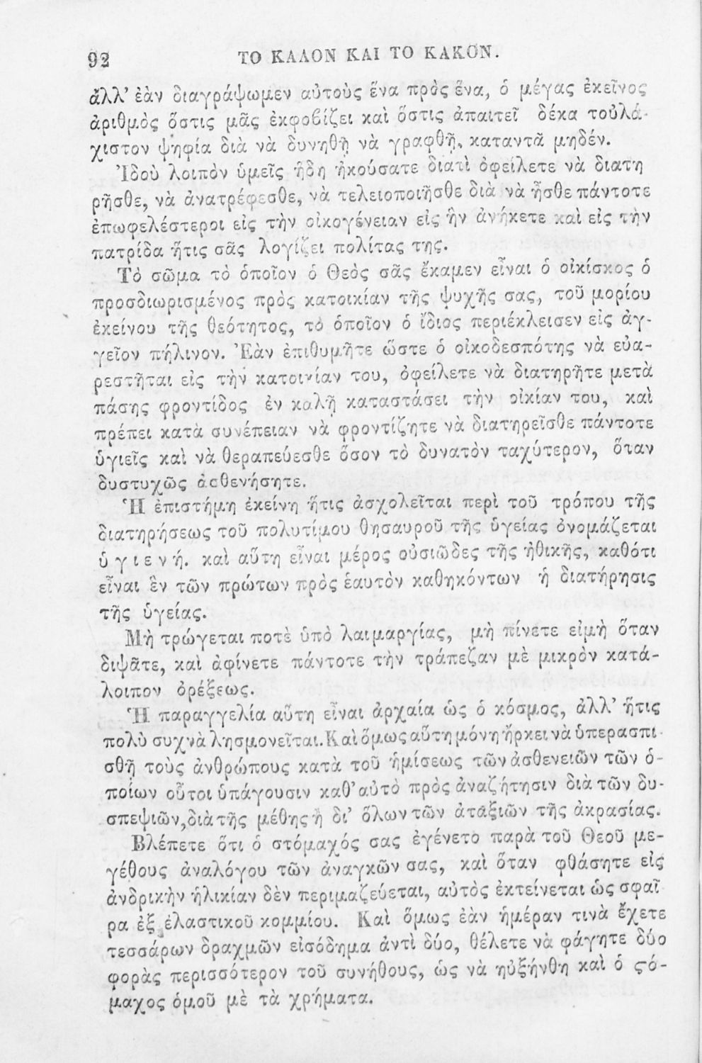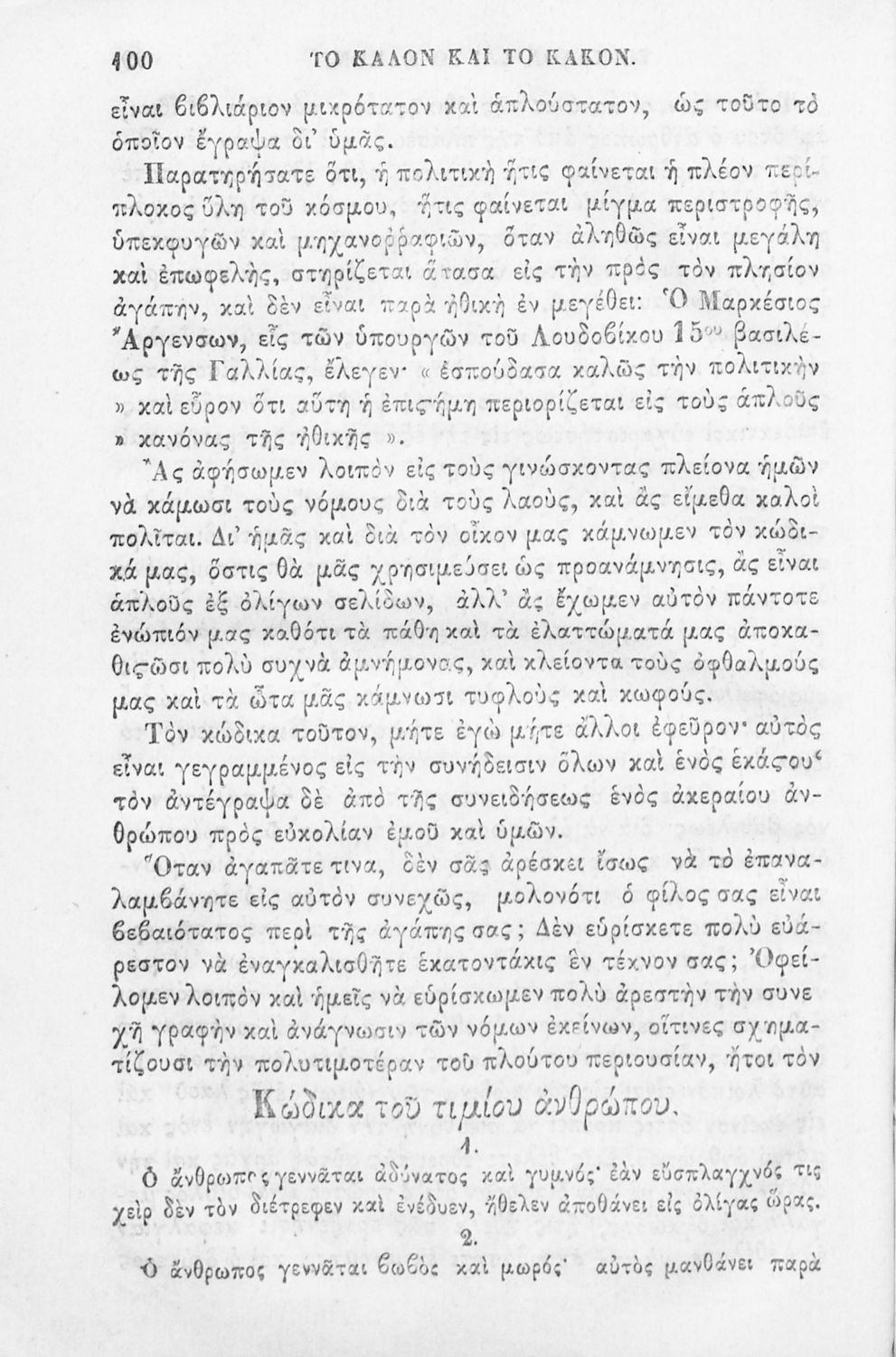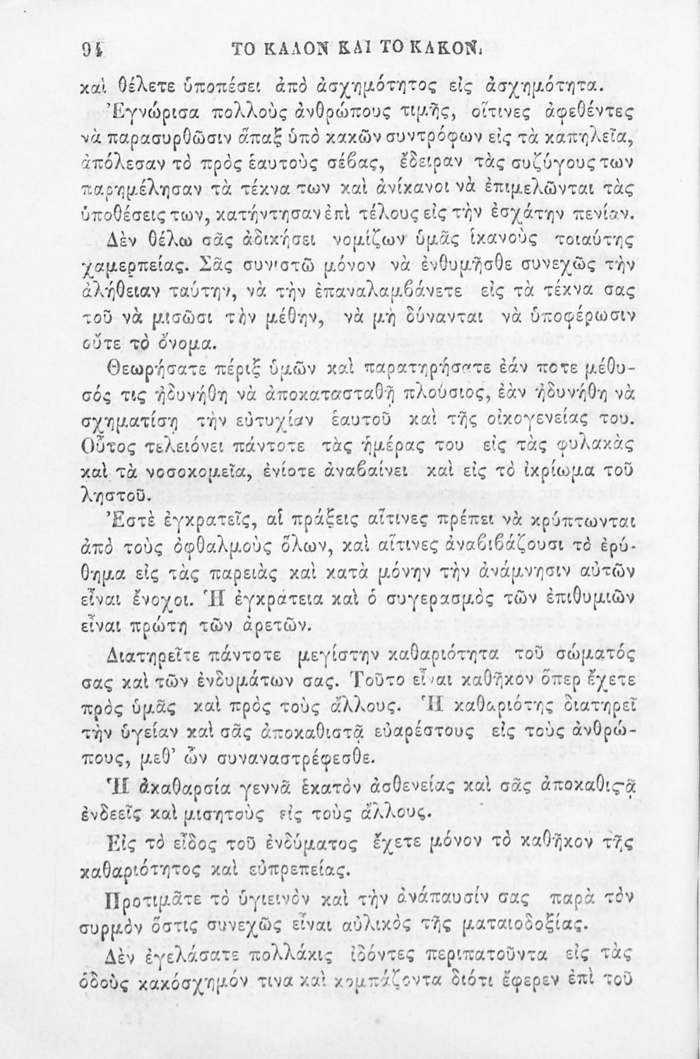 Τίτλος: Το καλόν και το κακόν βιβλίον δι΄ όλους σύγγραμμα νεώτατον προς χρήσιν των Δημοτικών Σχολείων και παντός φιλομαθούς