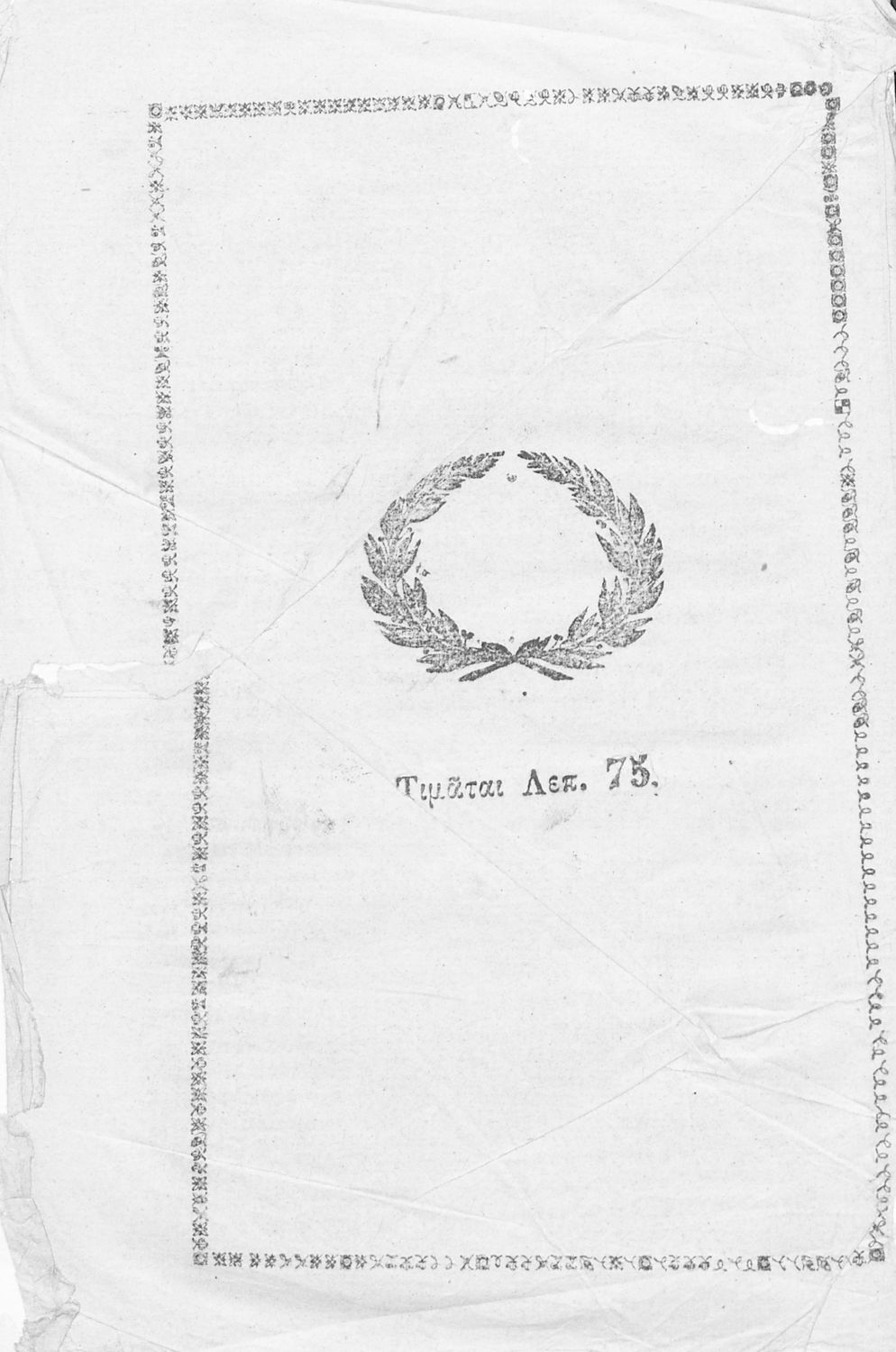 Εκδότης: Α. Σ. Αγαπητός Έτος έκδοσης: 1869 Τόπος έκδοσης: Πάτρα Έκδοση: 4η Υπουργική απόφαση / Σύμβαση: 2944/ |