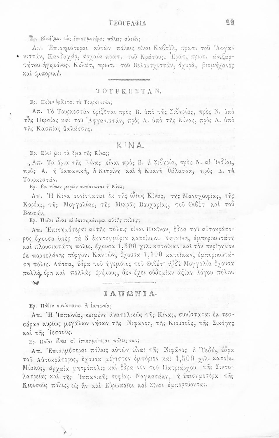 Σχολικό εγχειρίδιο Γεωγραφίας για τα Ελληνικά Σχολεία, τα Γυμνάσια, τα Διδασκαλεία, τα Παρθεναγωγεία και τις Εμπορικές-Στρατιωτικές-Ναυτικές Σχολές που περιέχει εισαγωγή στην κοσμογραφία, τη μαθηματική, ...