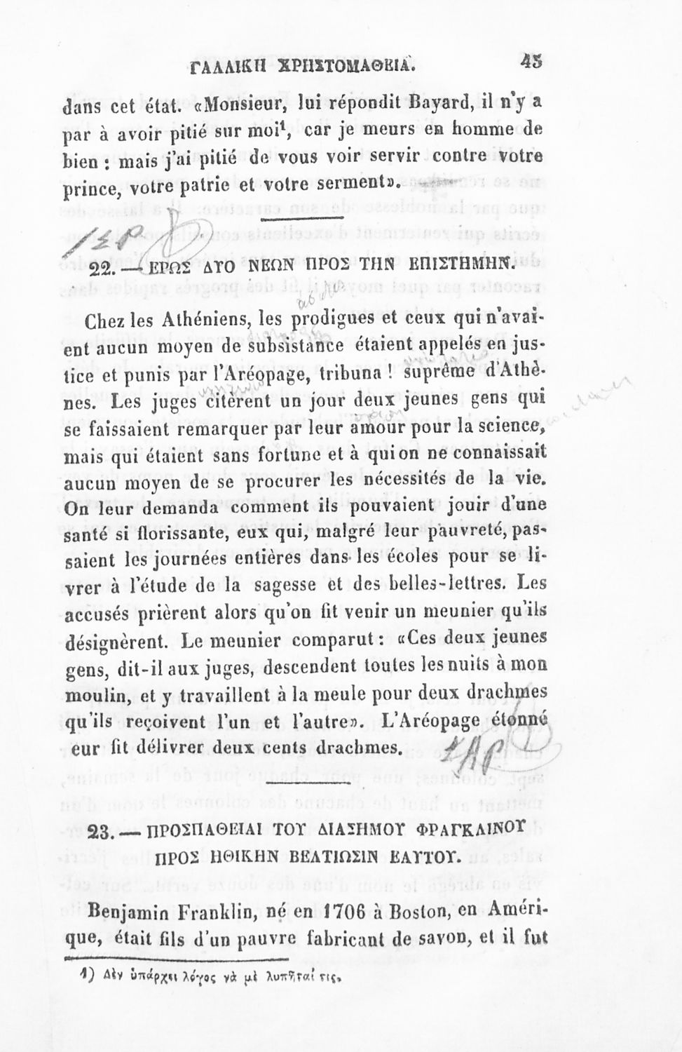 Γαλλική χρηστομάθεια μετά υποσημειώσεων και λεξιλογίου όλων των εν τω κειμένω λέξεων προς χρήσιν των Ελληνικών Σχολείων