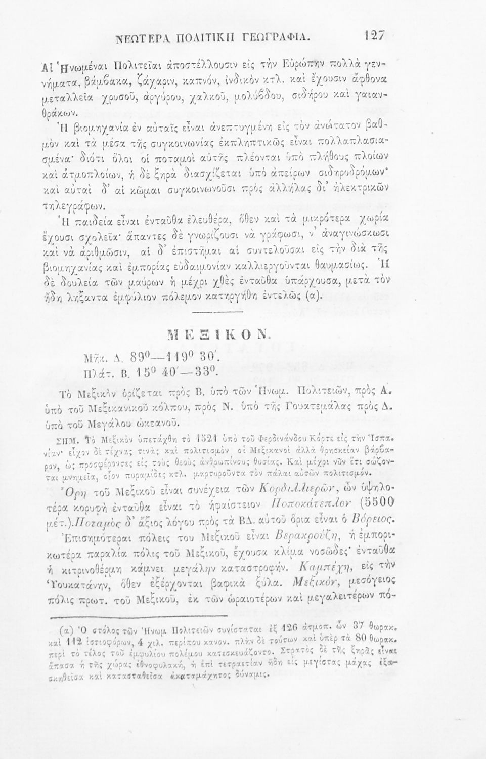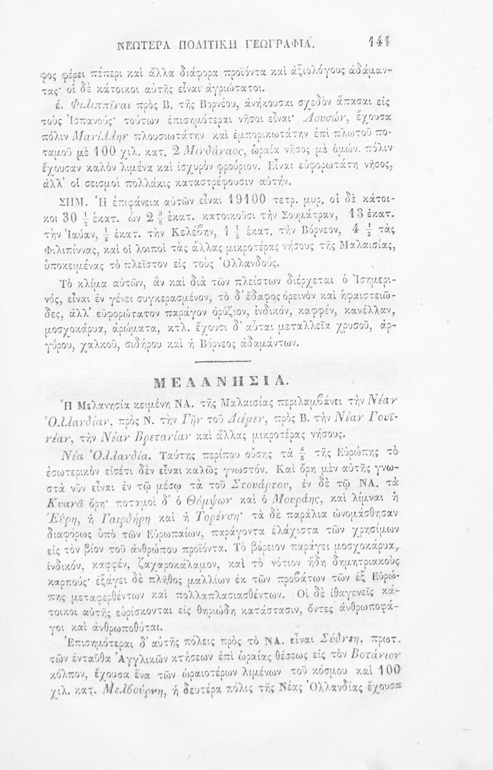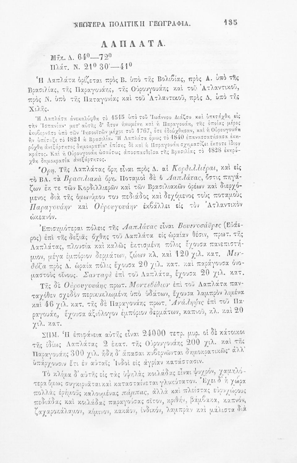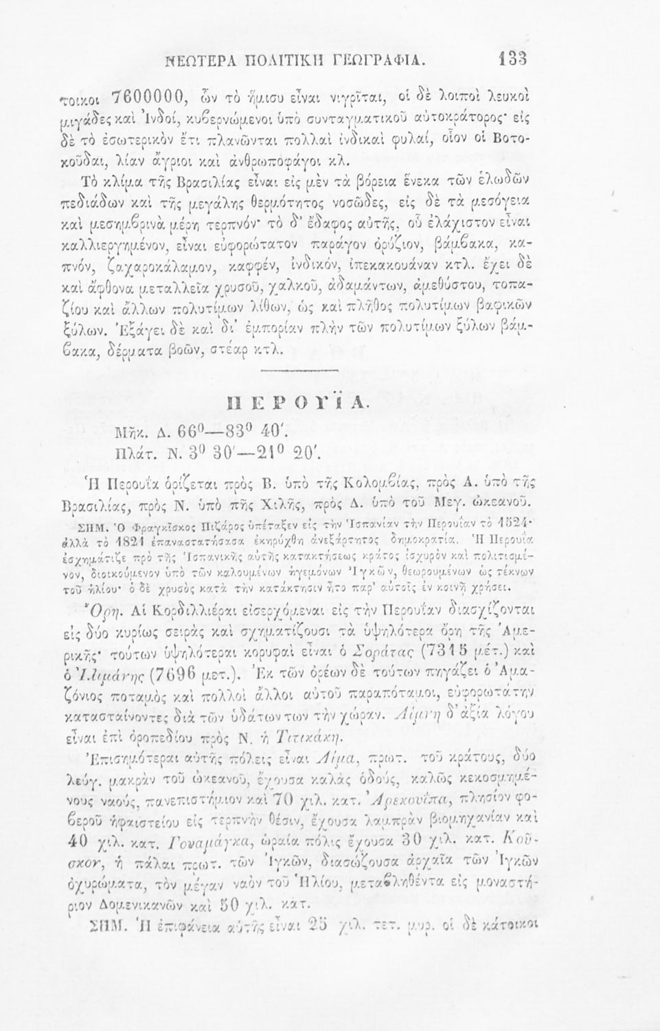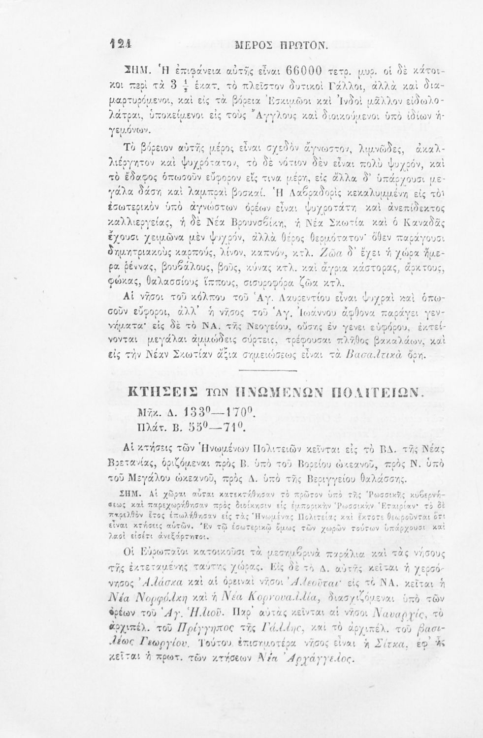 Σχολικό εγχειρίδιο Γεωγραφίας για τα Ελληνικά Σχολεία που περιλαμβάνει εισαγωγή στις βασικές έννοιες και ορισμούς της επιστήμης, και στοιχεία μαθηματικής, φυσικής και πολιτικής γεωγραφίας των πέντε ηπείρων.